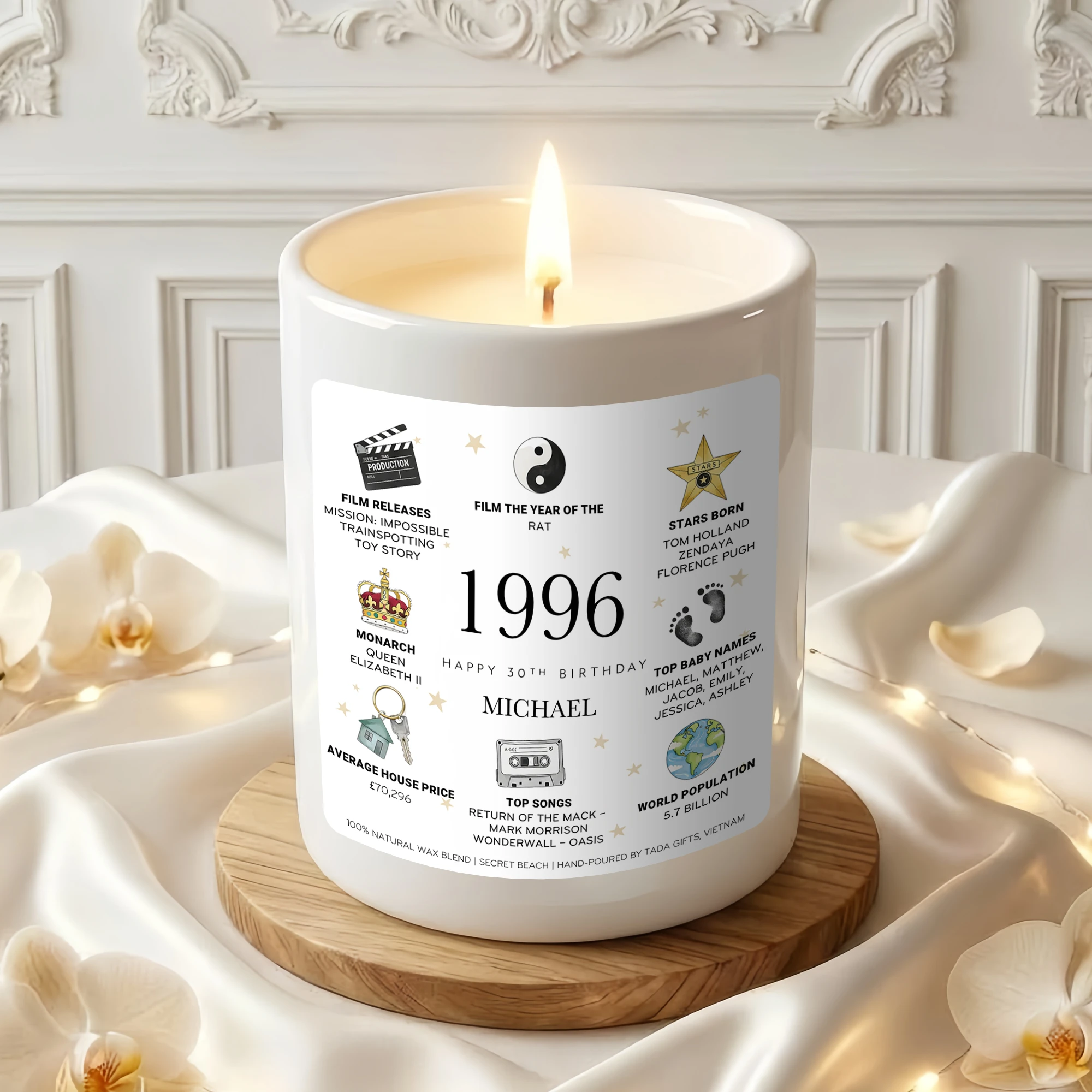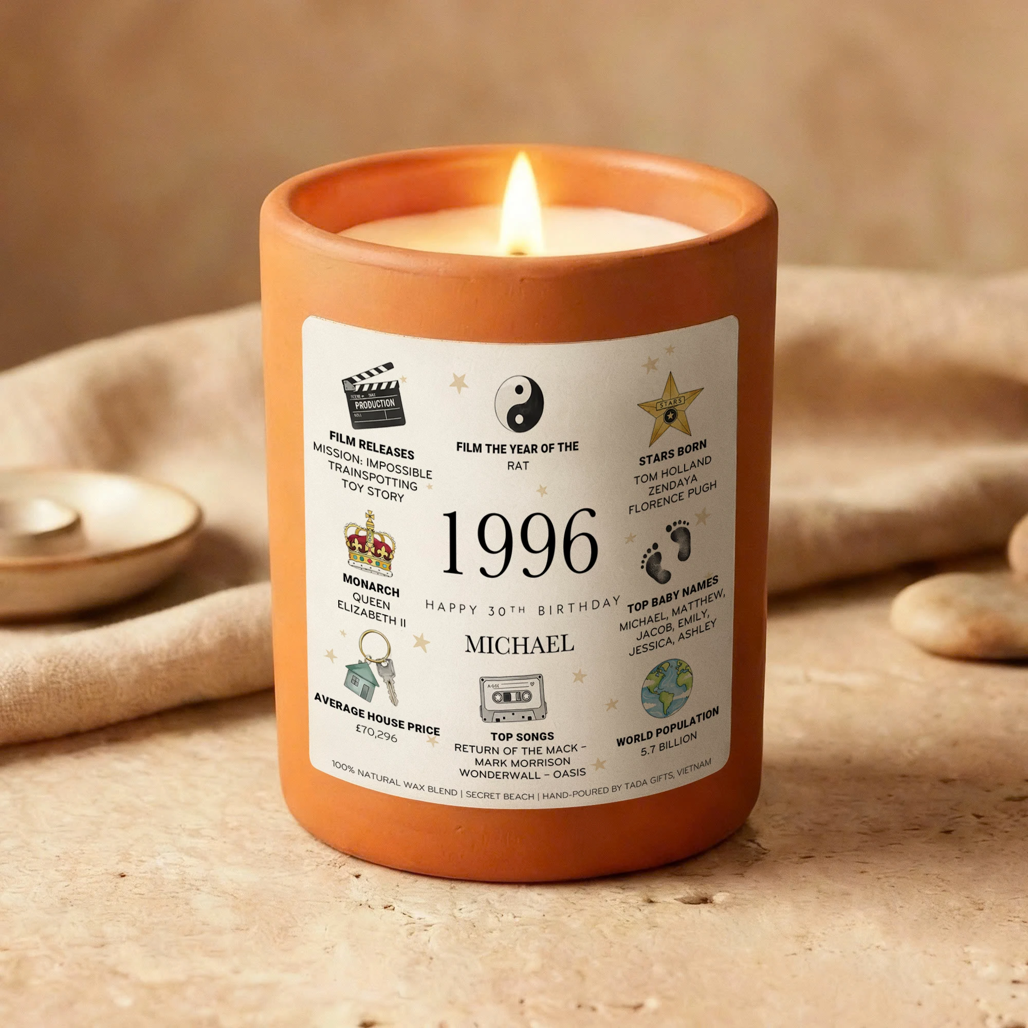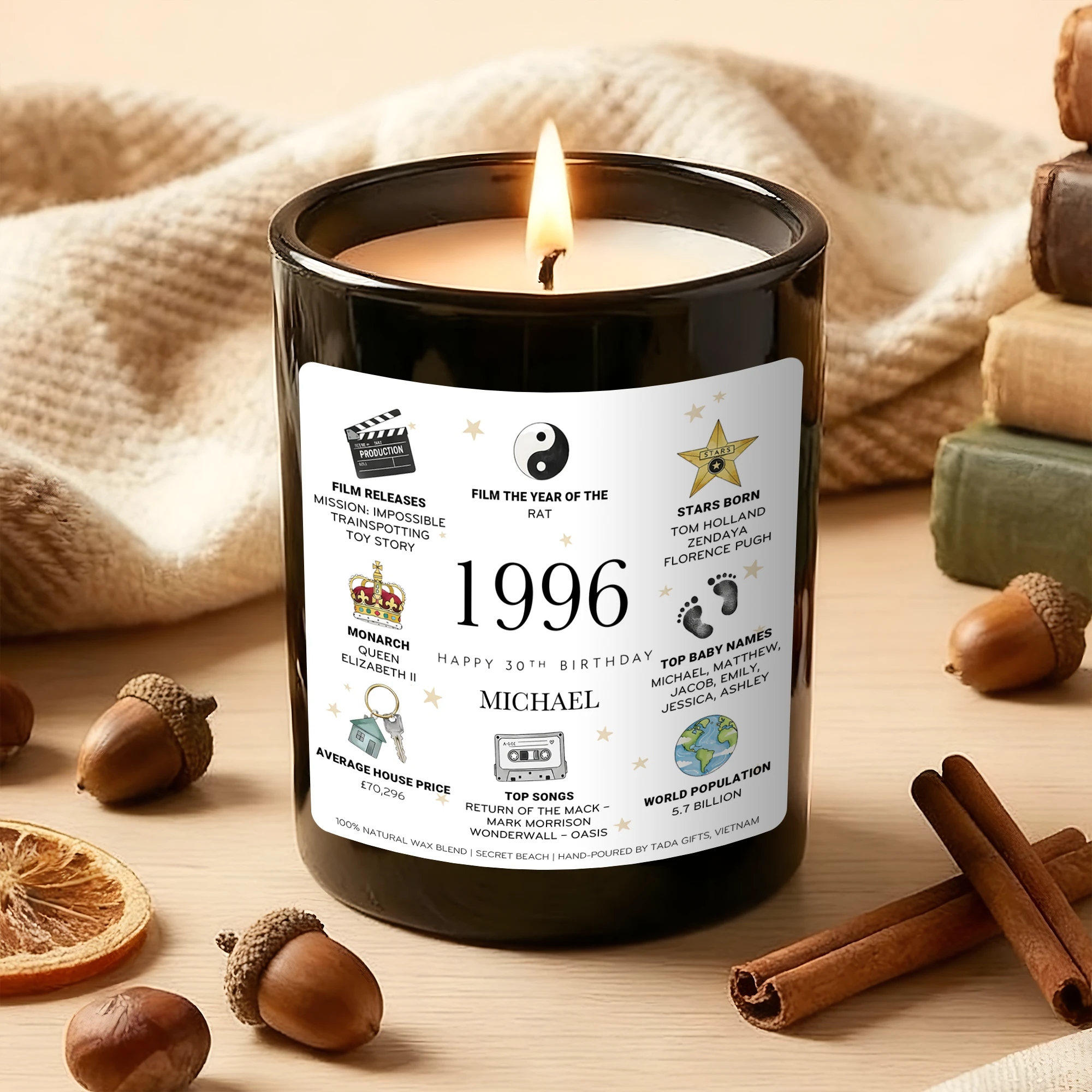 Personalized 1996 Birthday Candle for Him, Custom Name 30th Birthday Gift, Unique Gift for Brother, Husband, Friend, 1996 Year You Were Born