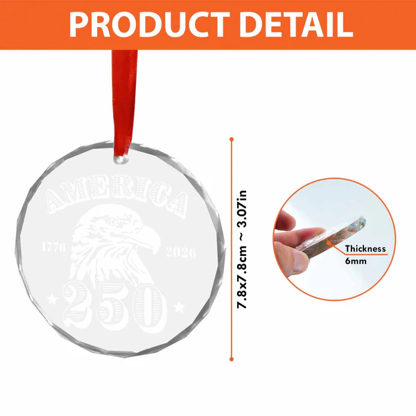 250th Anniversary Eagle Crystal Ornament | Engraved Glass Patriotic Keepsake | 1776-2026 Semiquincentennial Collector