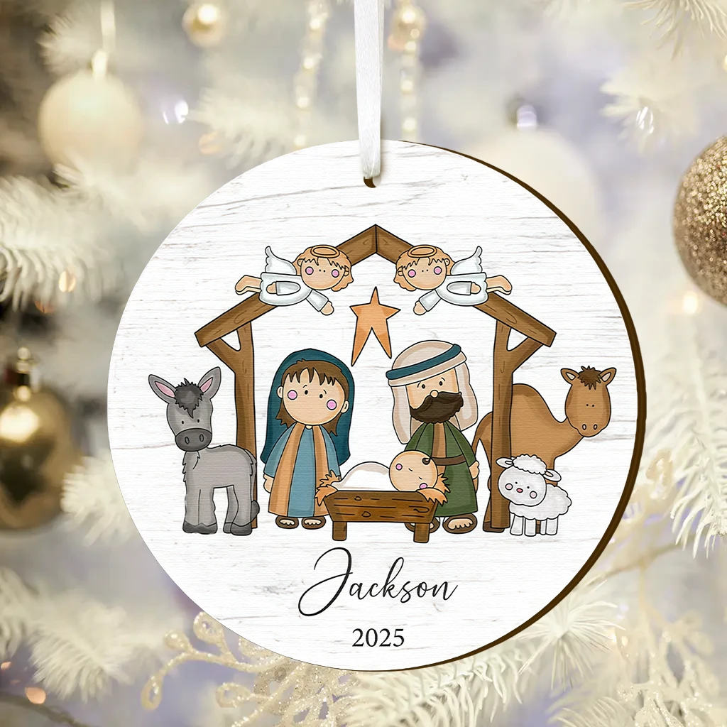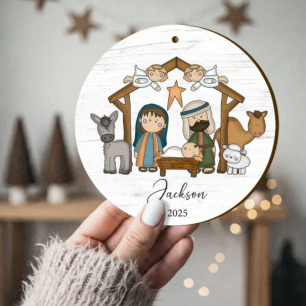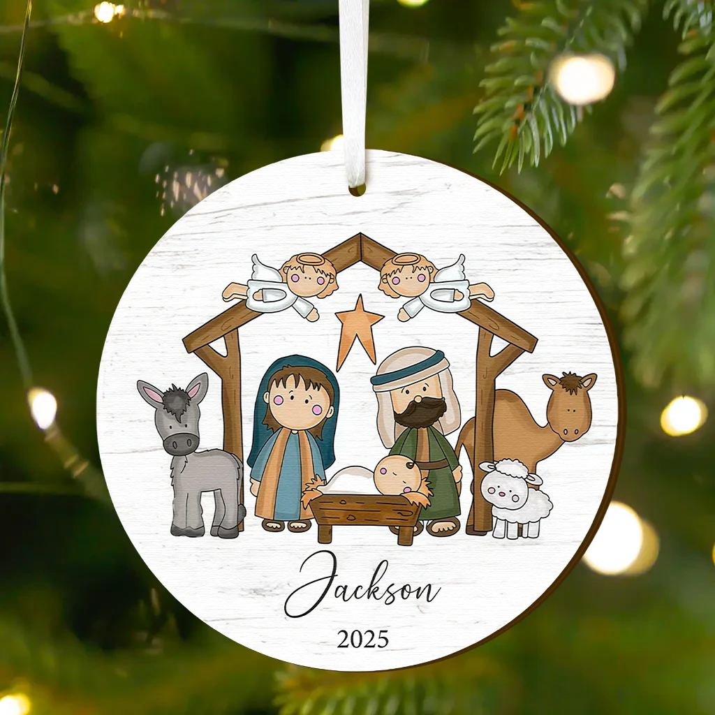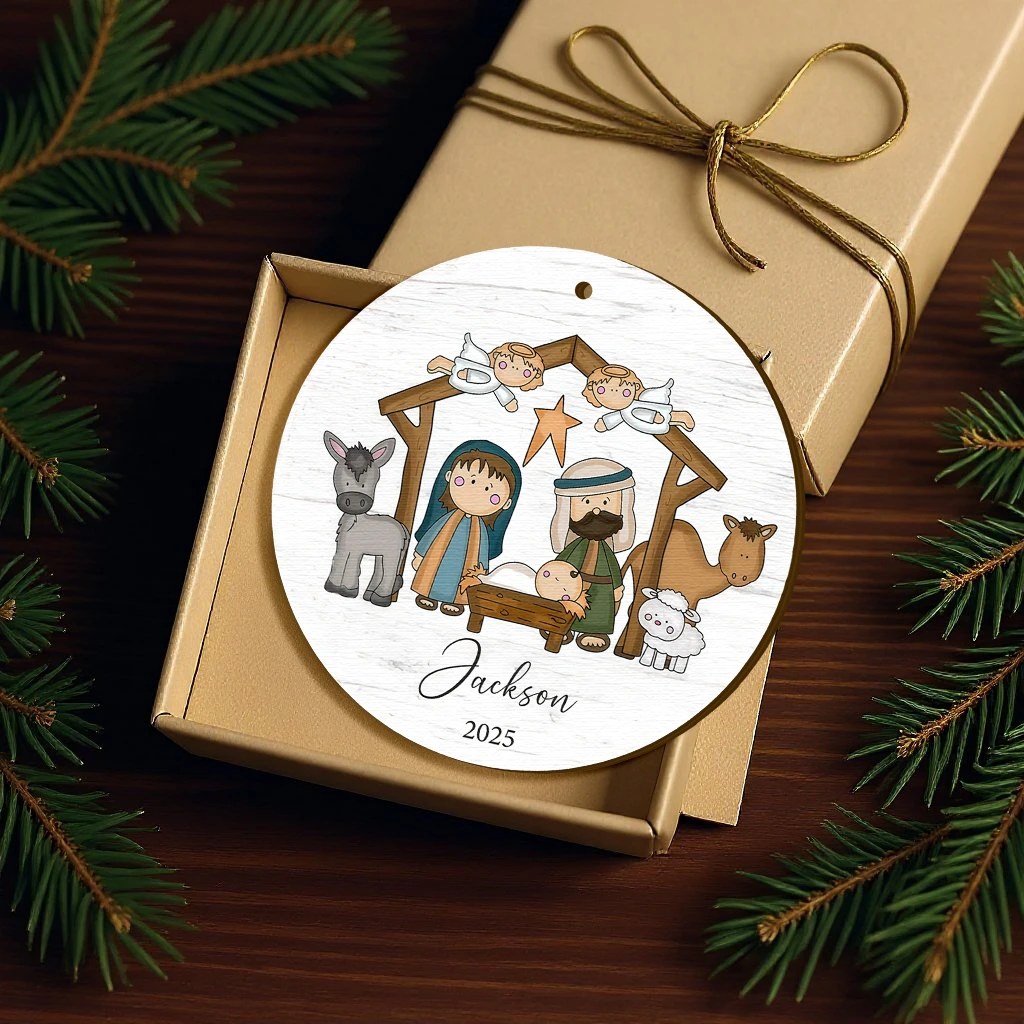 Adorable Nativity Christmas Ornament, Personalized Baby Jesus Scene, Rustic Farmhouse Style Gift.