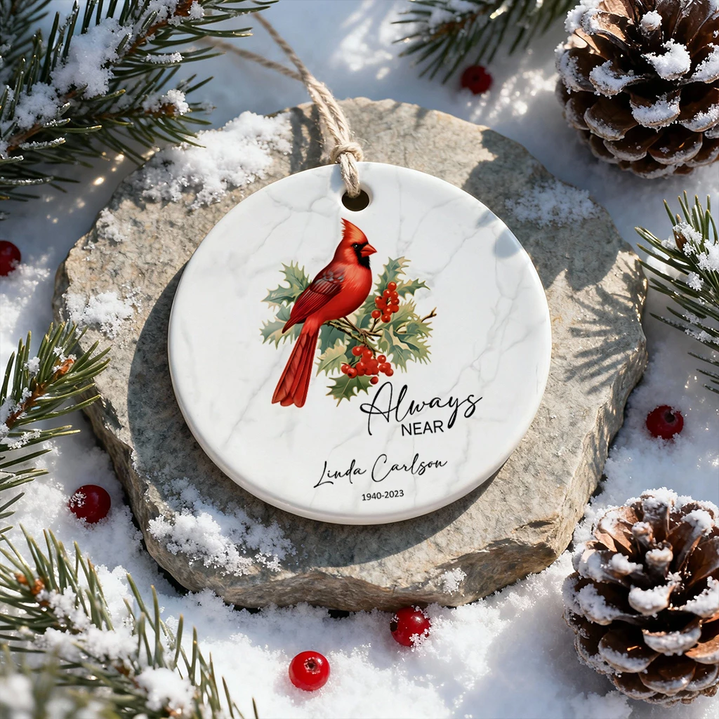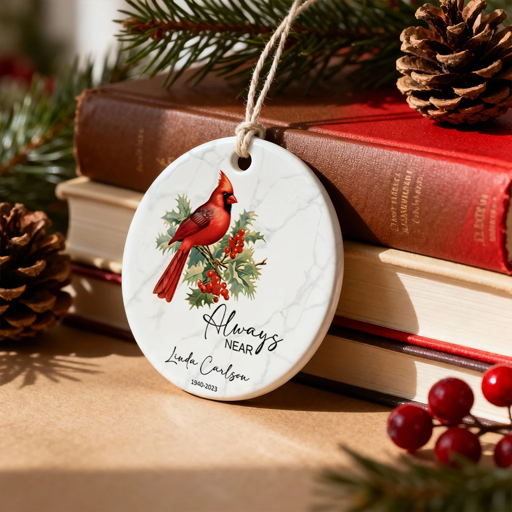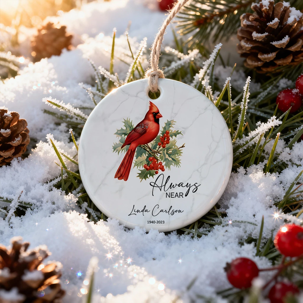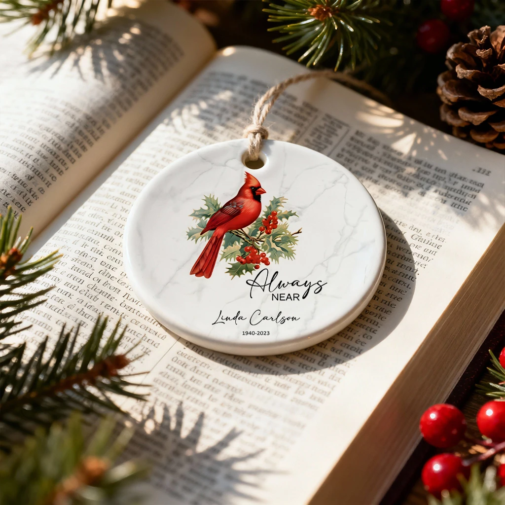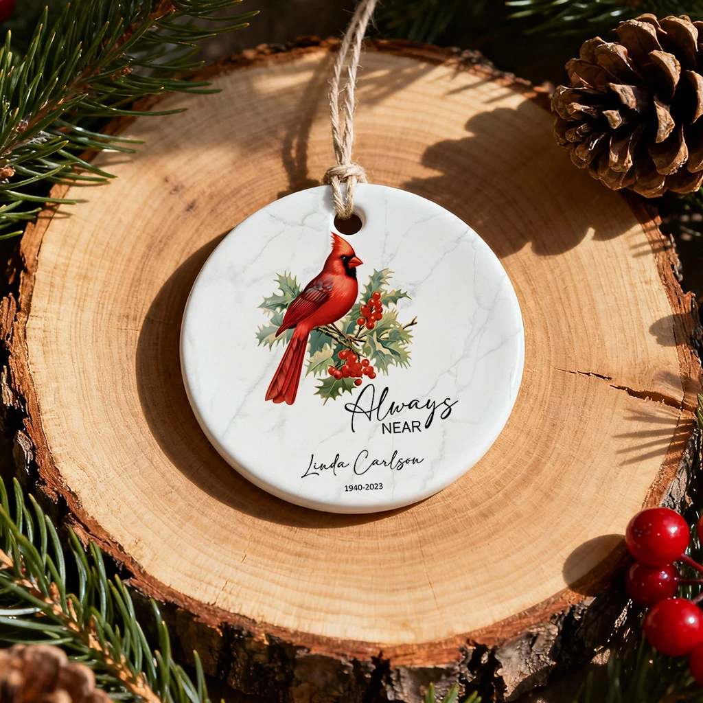 Always Near Cardinal Memorial Ornament | Custom Ceramic Keepsake by Tada Gifts