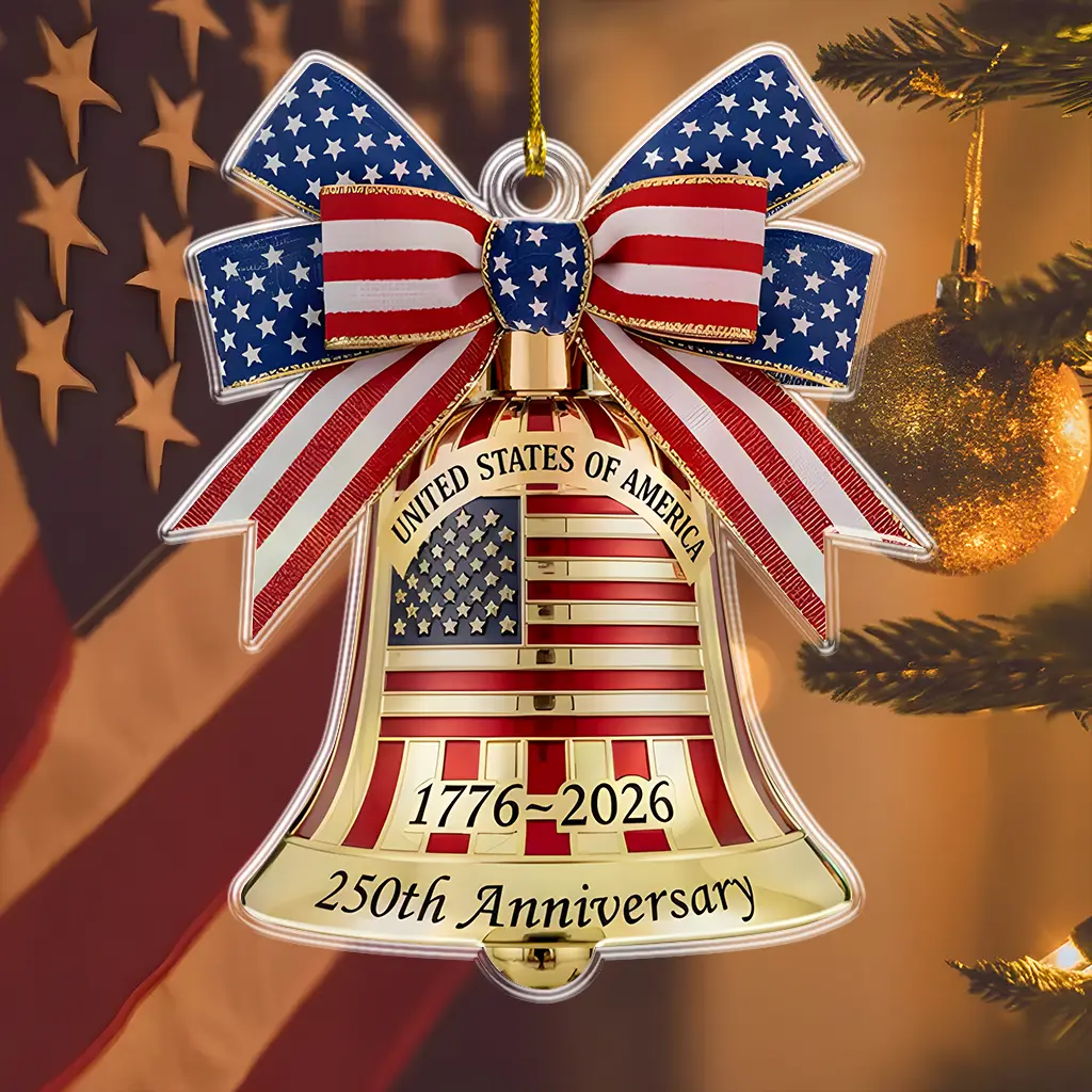 American Flag Liberty Bell Ornament | Patriotic 250th Anniversary 1776–2026 Keepsake Honoring Freedom and American Heritage