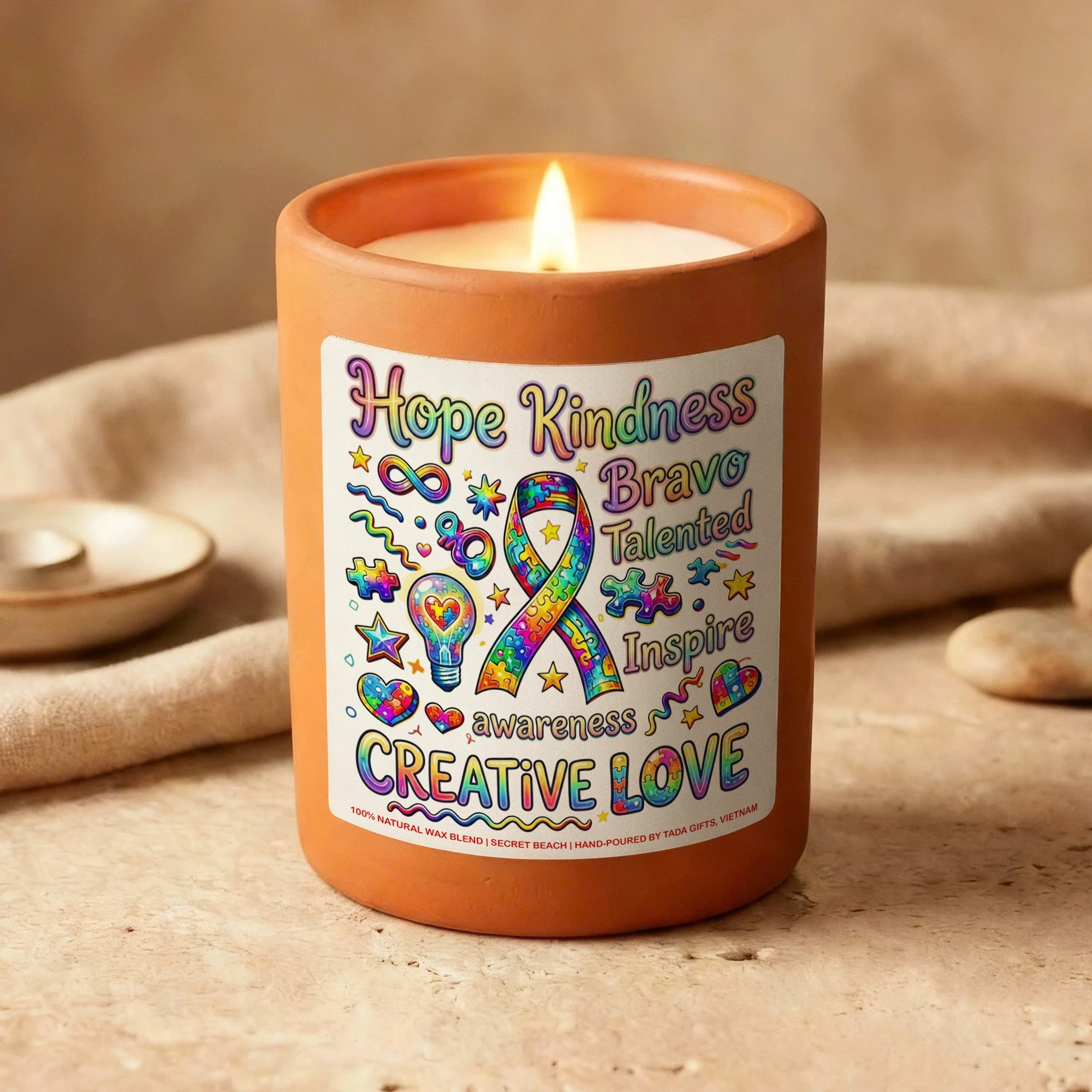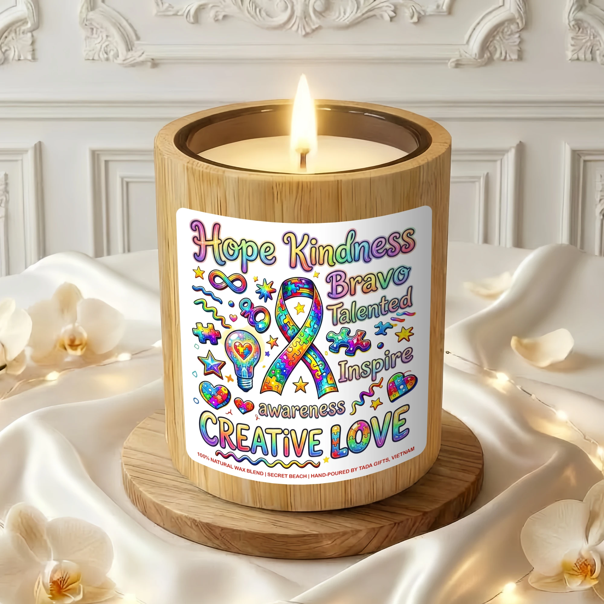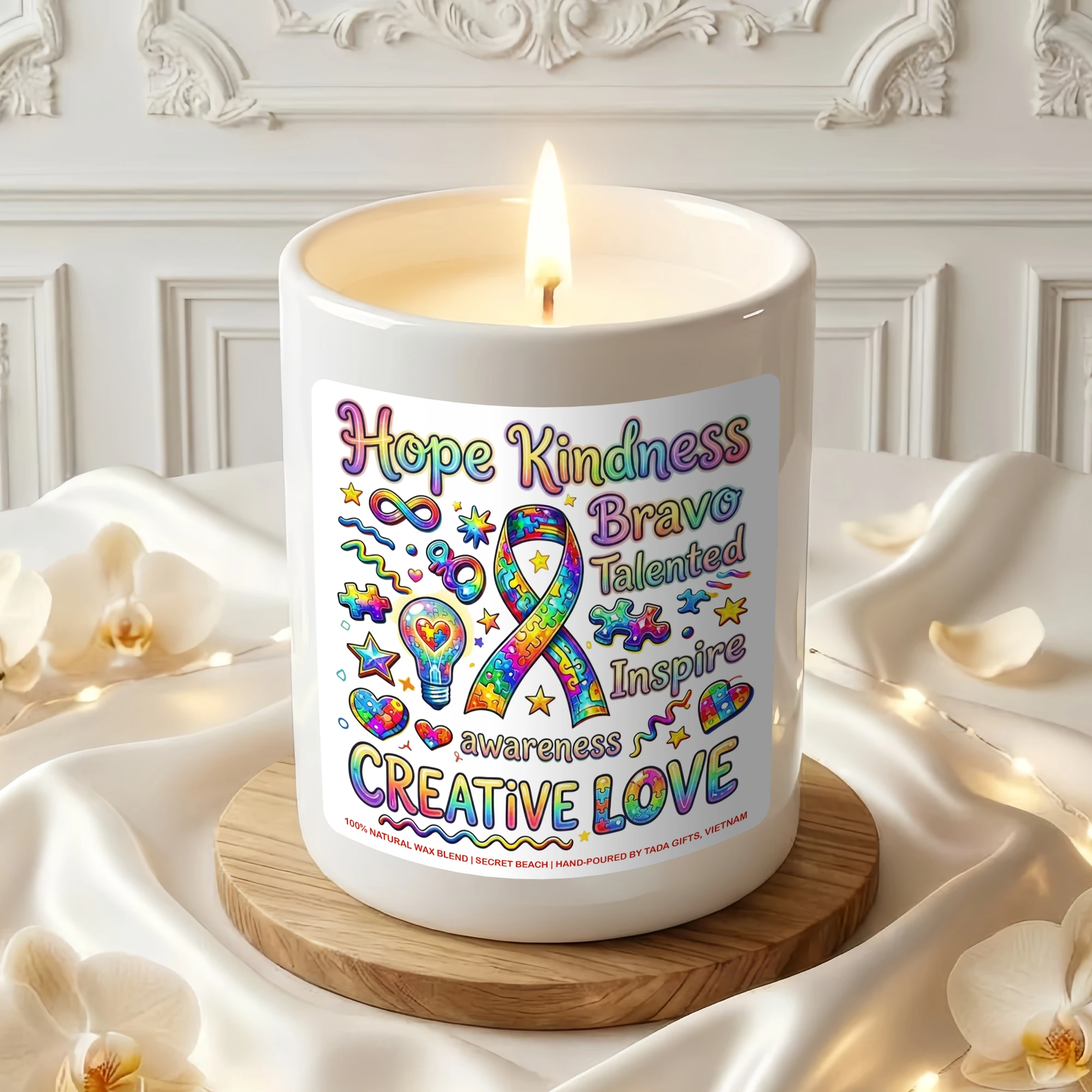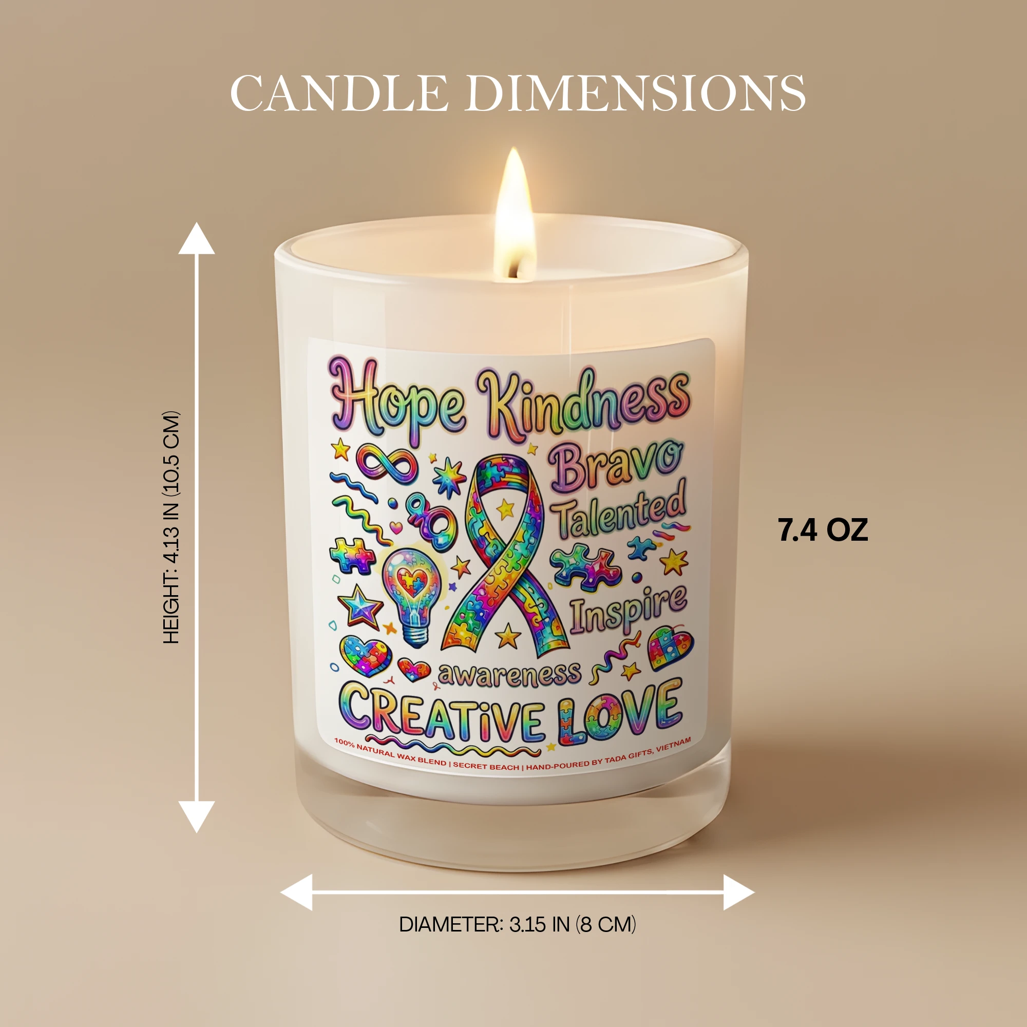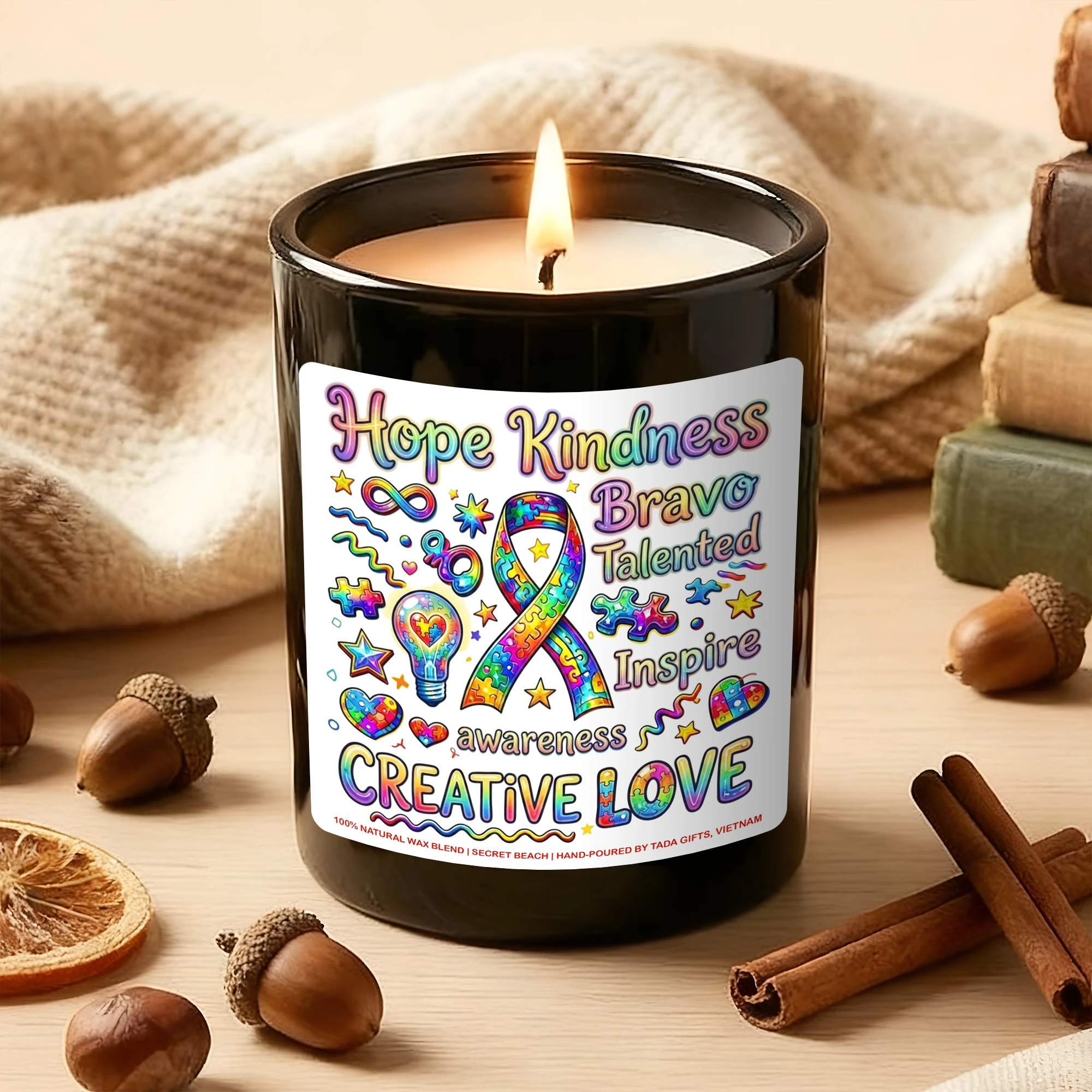 Autism Awareness Candle – Creative Love Gift for Special Needs Teachers, Neurodiversity Support Soy Candle, Puzzle Ribbon Decor, Hope Kindness Inspire Gift, Neurodivergent Pride, Hand-Poured Wax Melt
