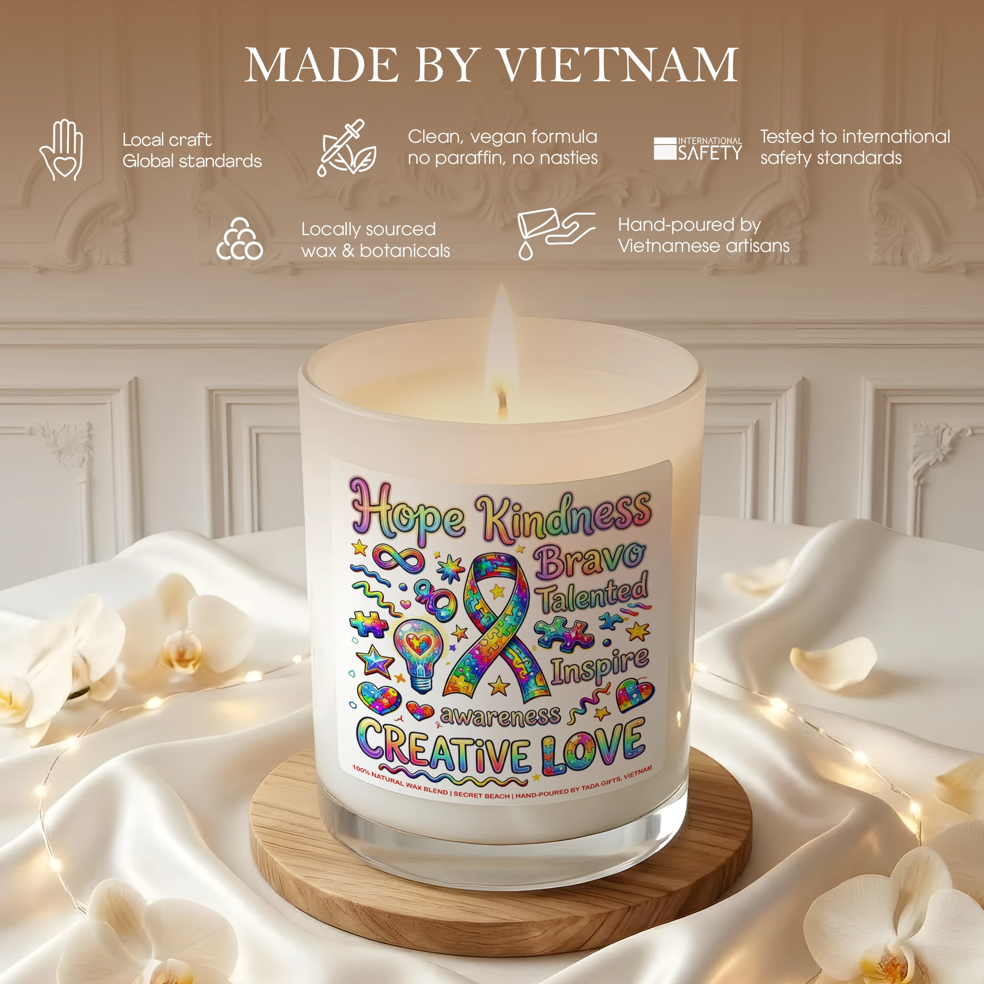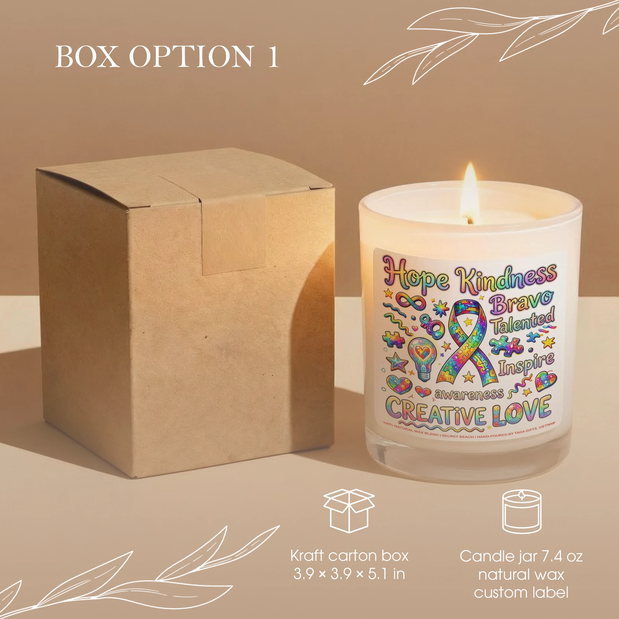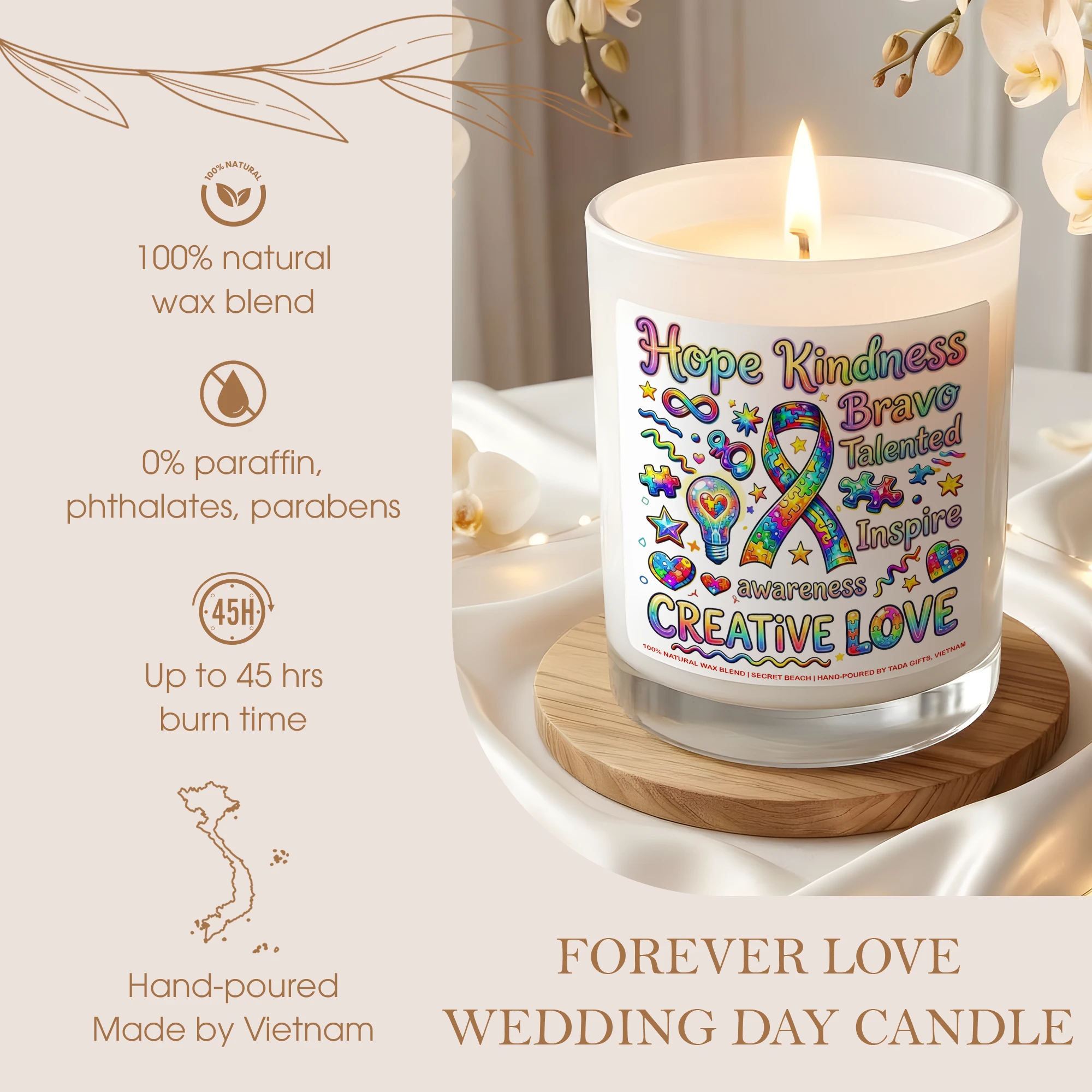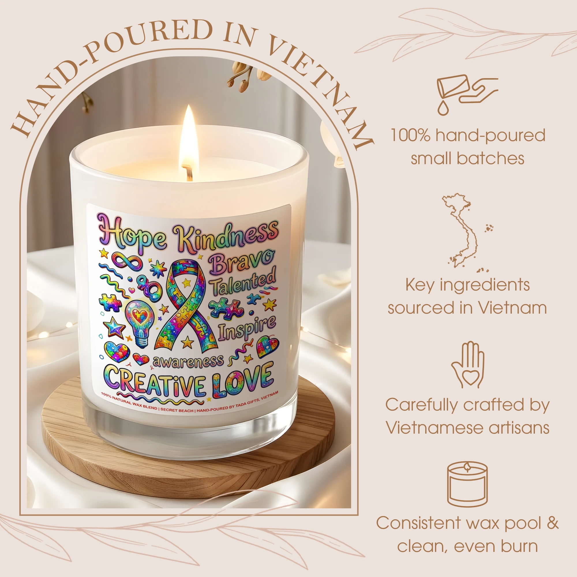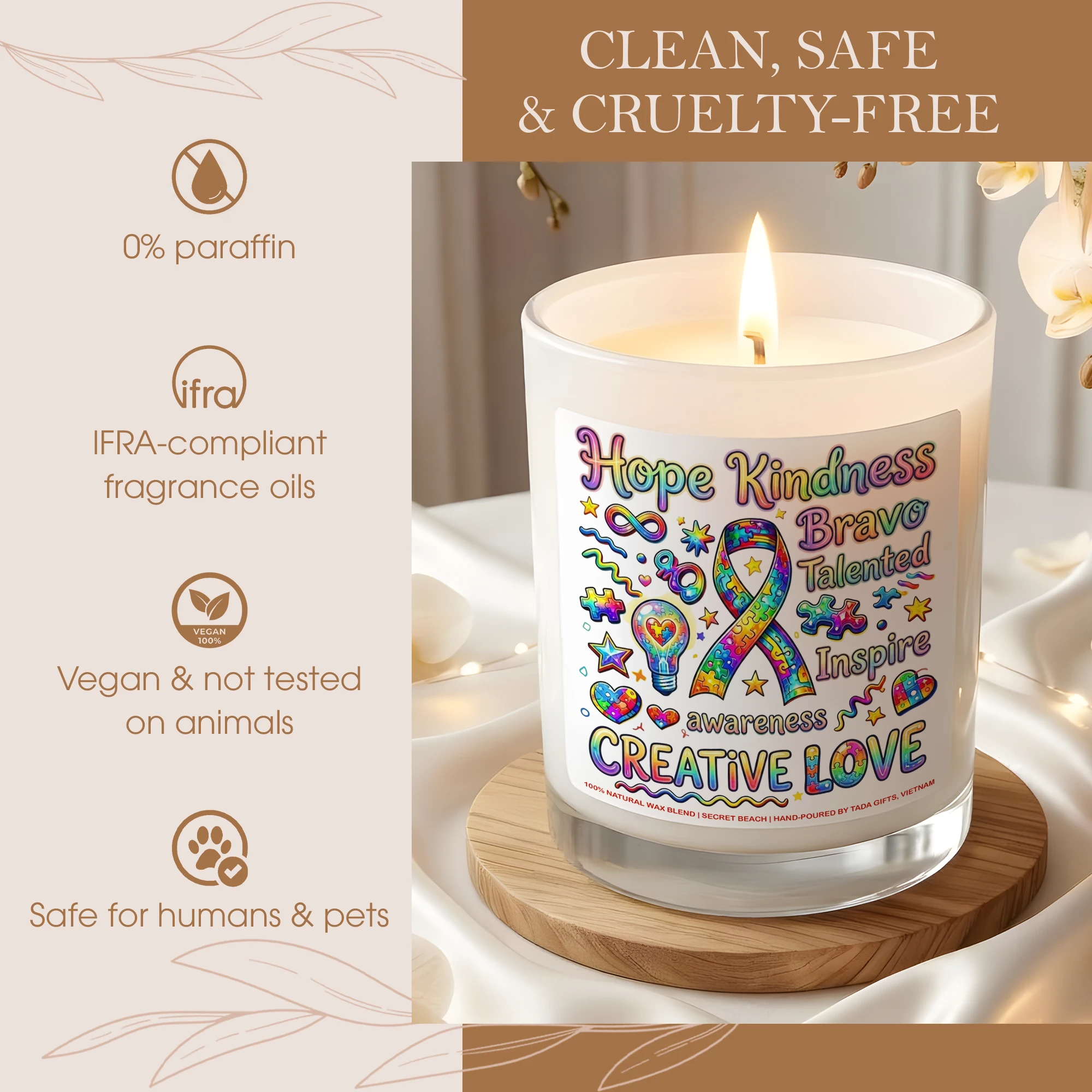 Autism Awareness Candle – Creative Love Gift for Special Needs Teachers, Neurodiversity Support Soy Candle, Puzzle Ribbon Decor, Hope Kindness Inspire Gift, Neurodivergent Pride, Hand-Poured Wax Melt