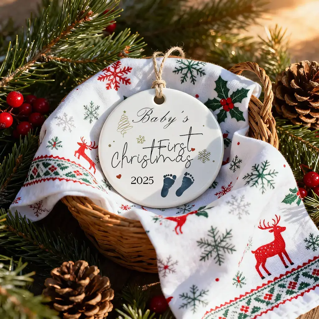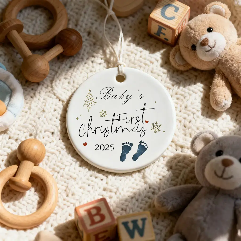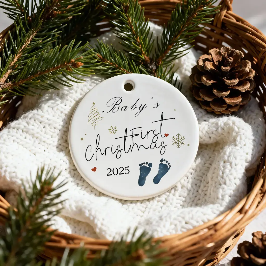 Baby Footprints Newborn Christmas Ornaments | Holiday Keepsake | Ceramic Tree Decoration