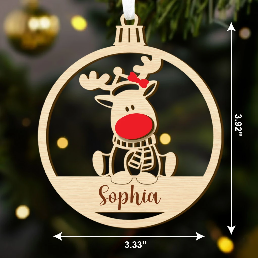 Custom Baby Girl First Christmas Rudolph Ornament | Personalized Wooden Keepsake | Perfect Christmas Ornament