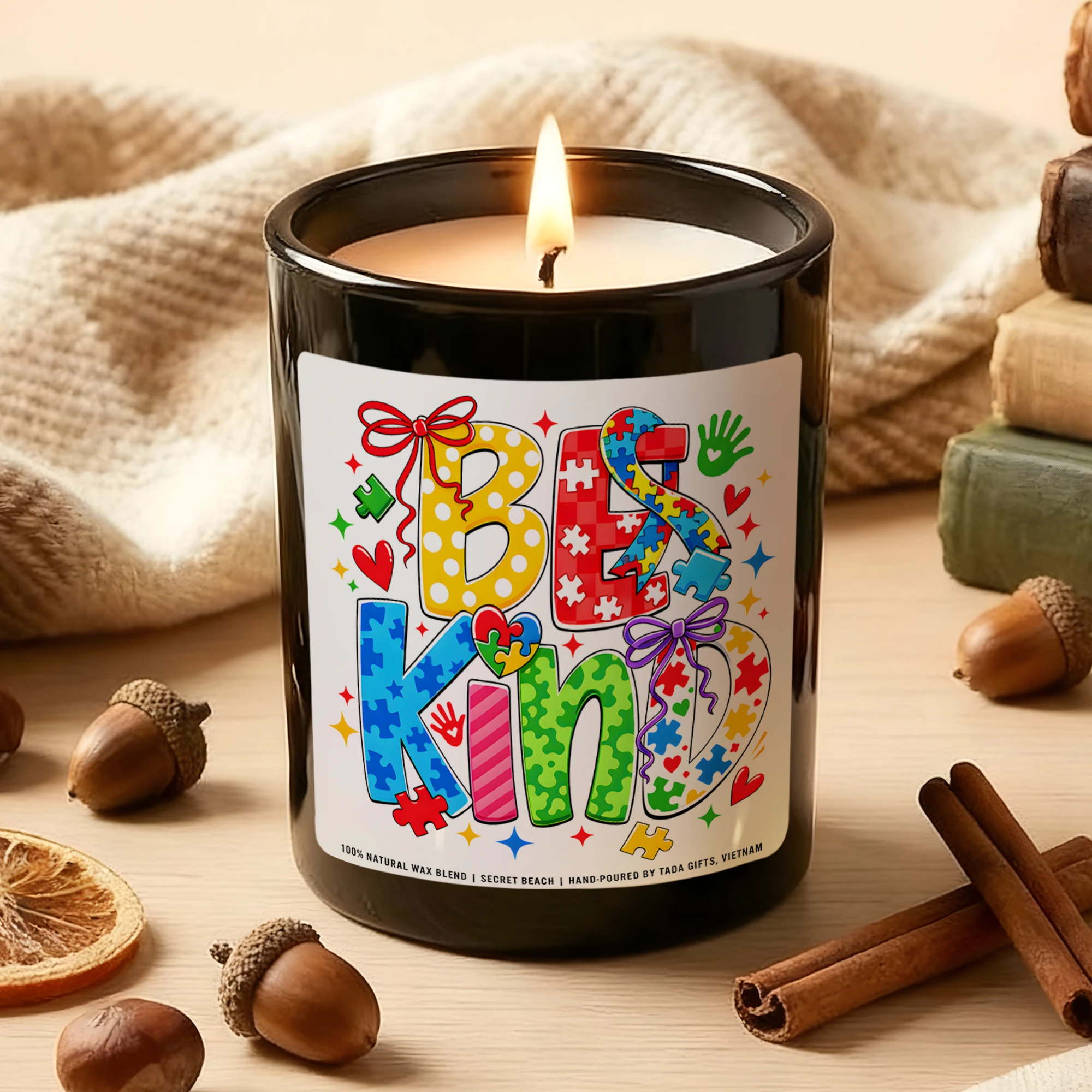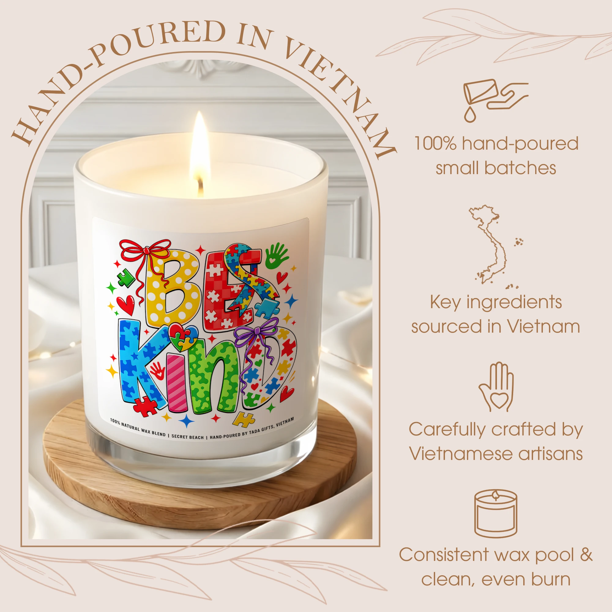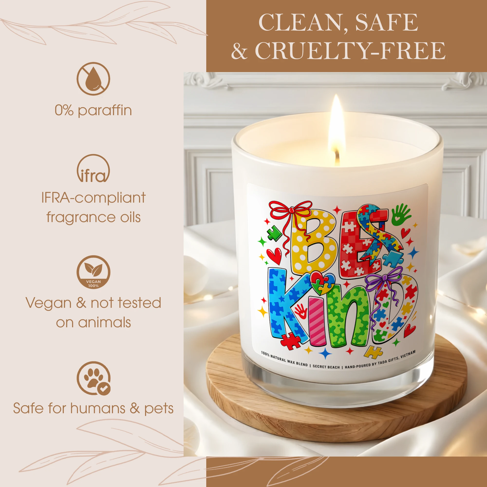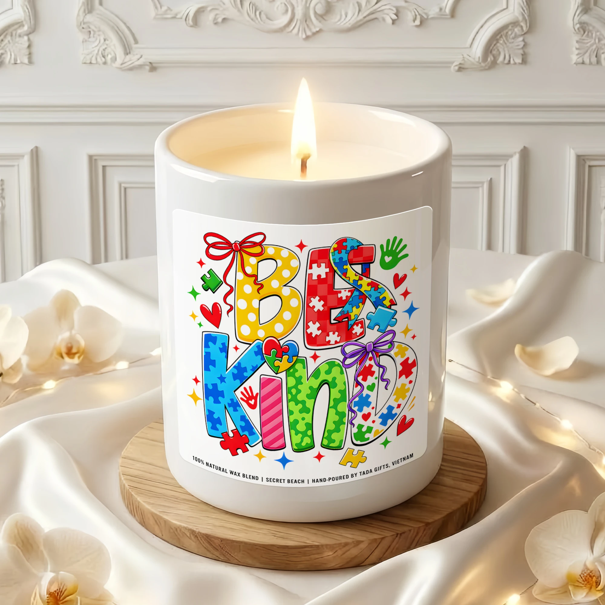 Be Kind Autism Awareness Candle – Colorful Puzzle Piece Scented Candle – Gift for Special Ed Teacher – Neurodiversity Celebration Decor
