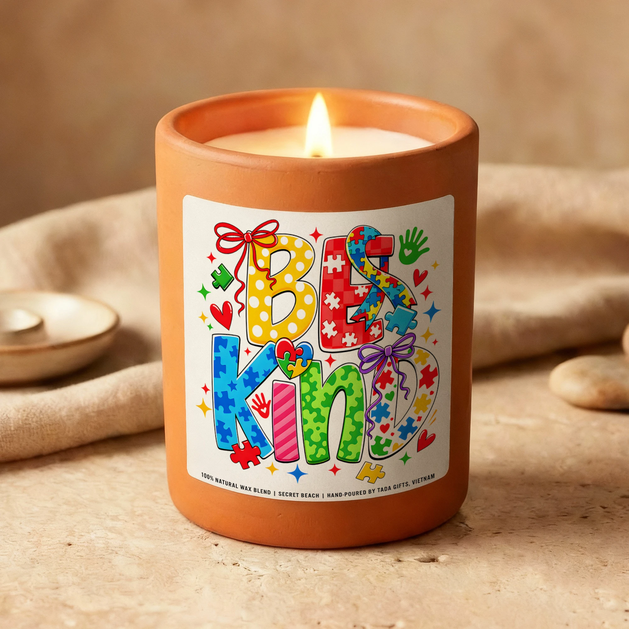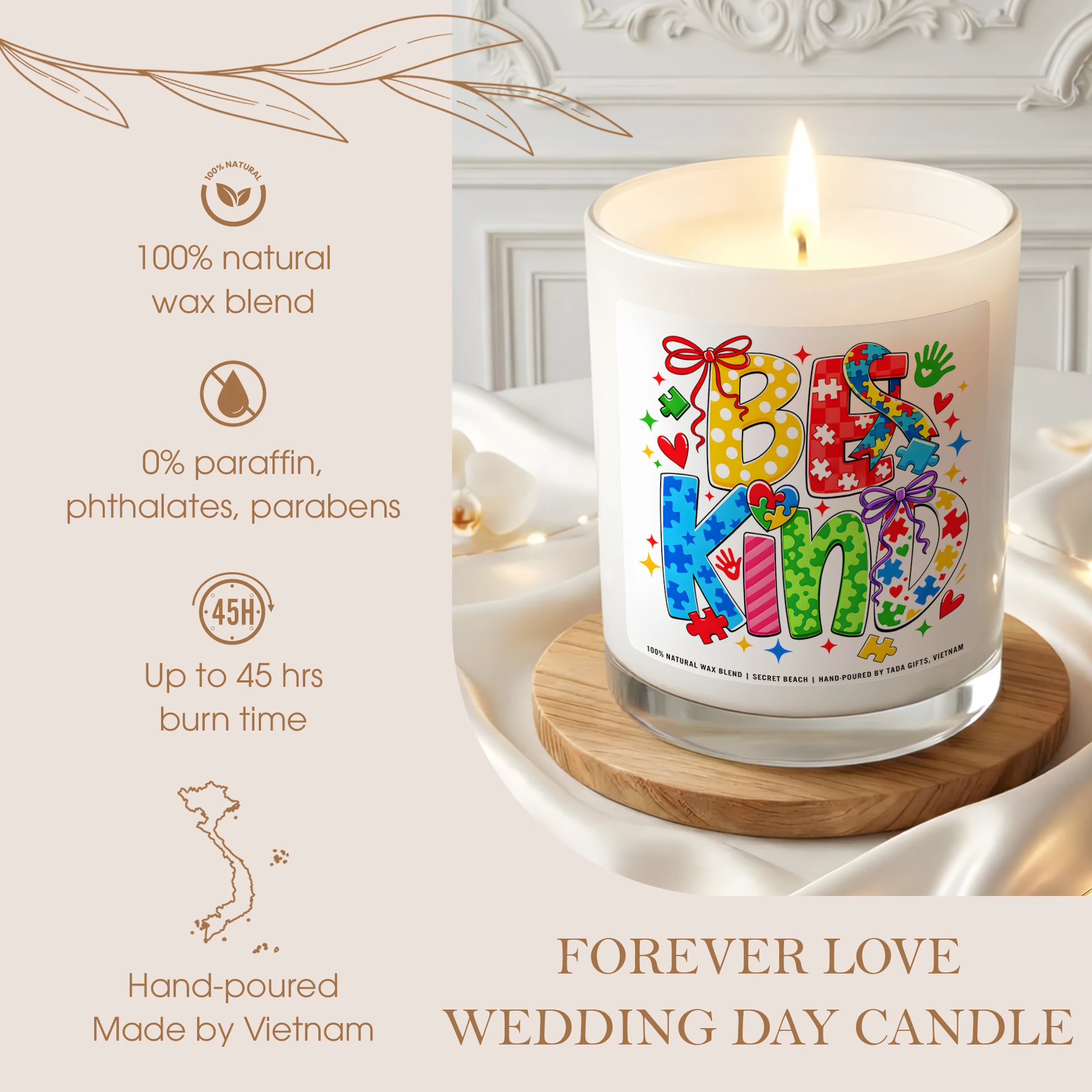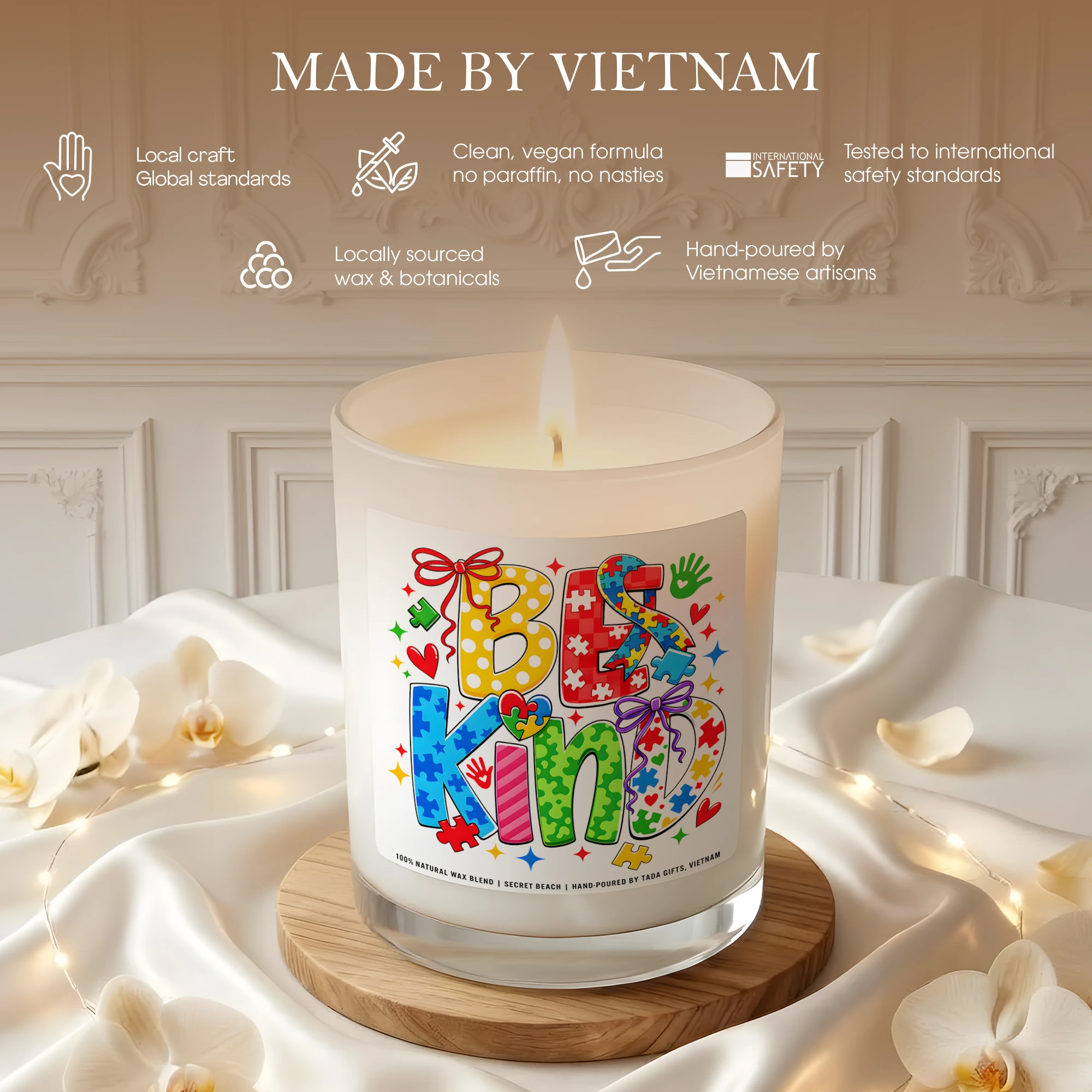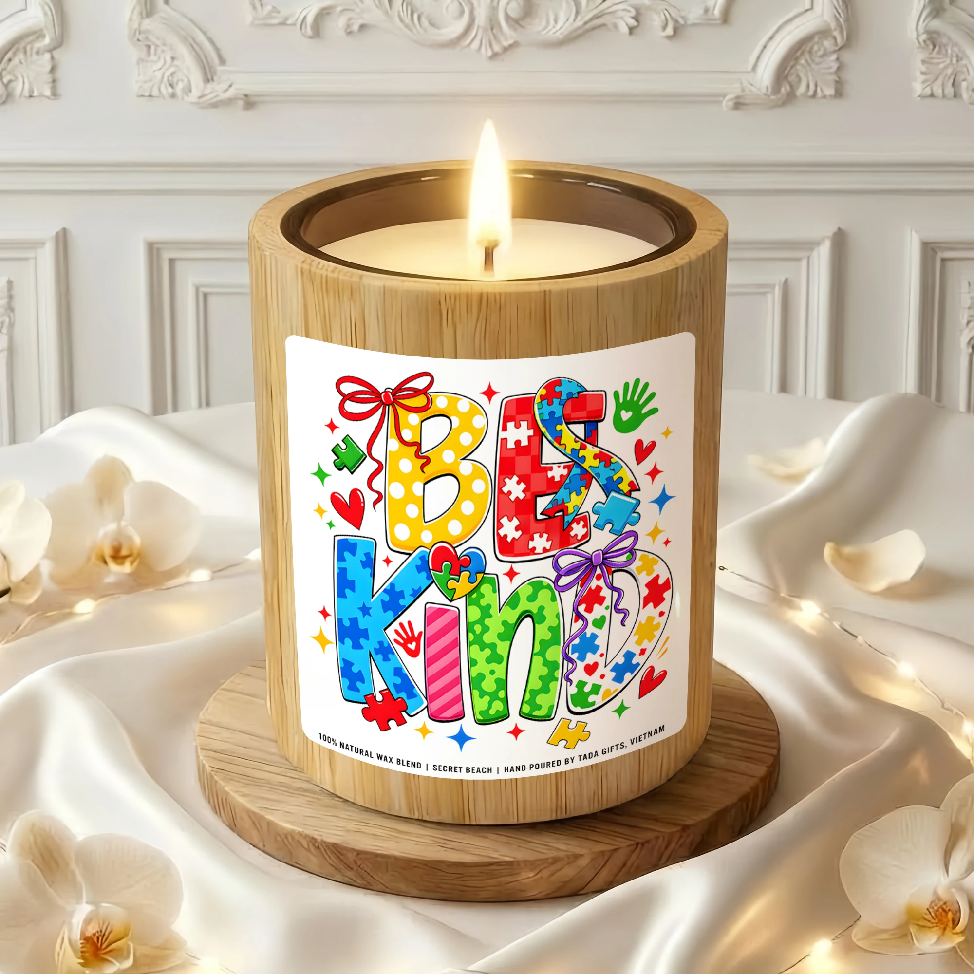Be Kind Autism Awareness Candle – Colorful Puzzle Piece Scented Candle – Gift for Special Ed Teacher – Neurodiversity Celebration Decor