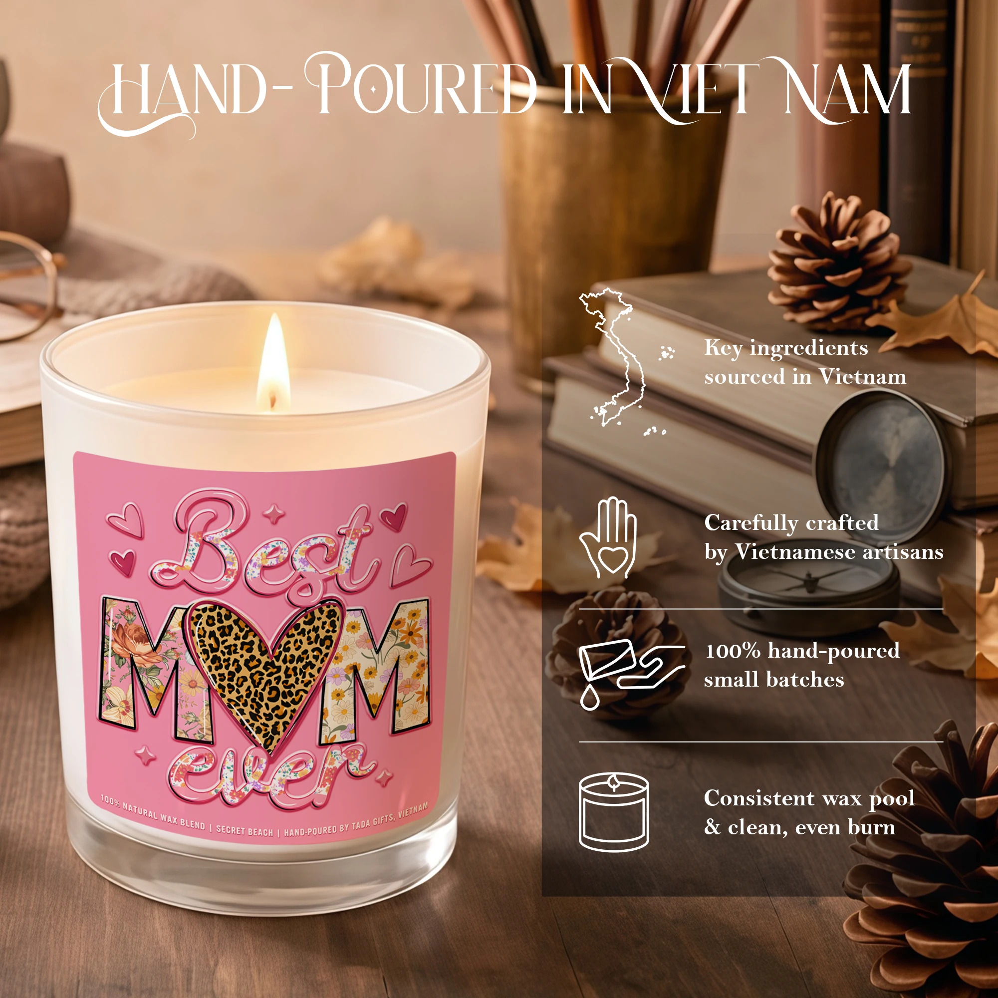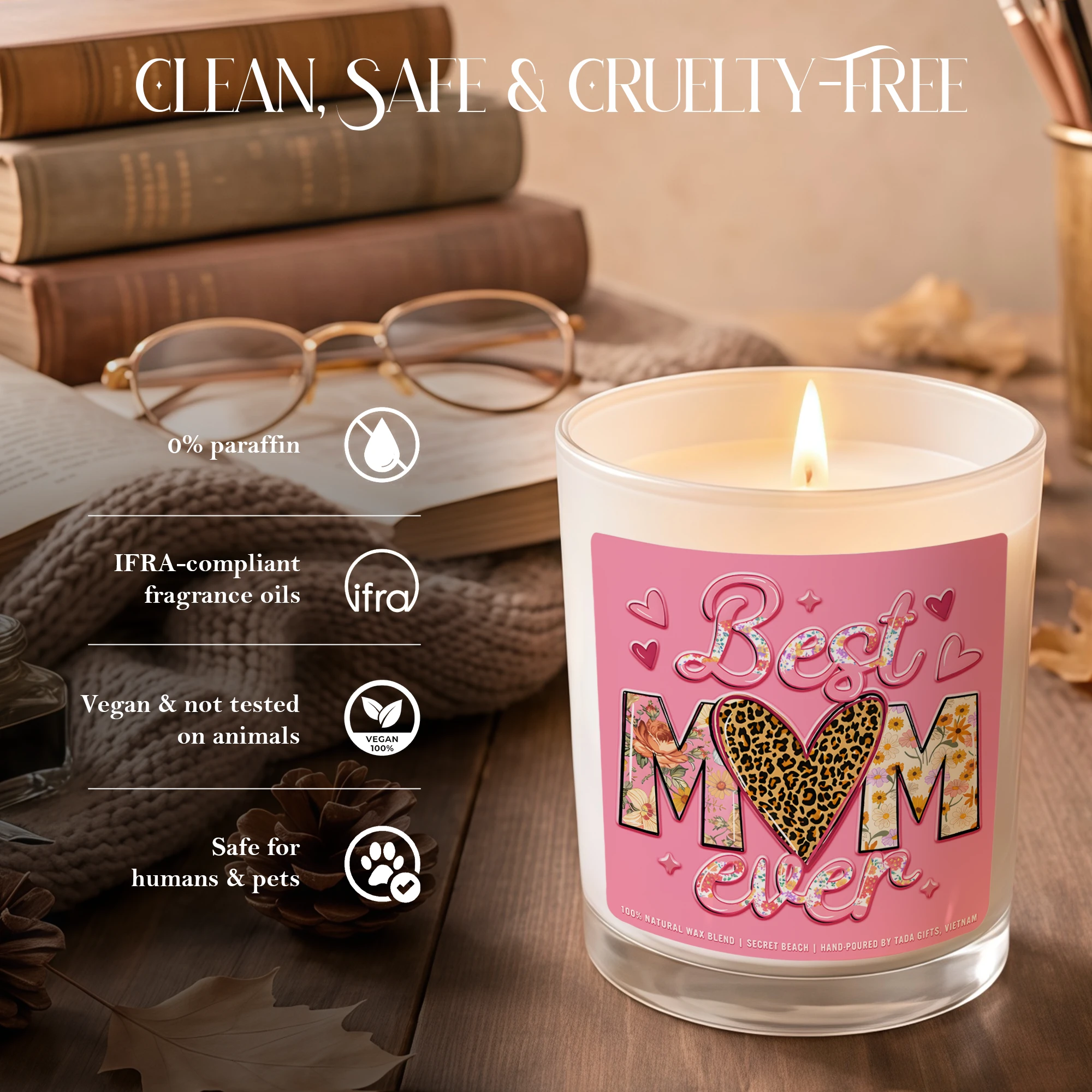 Best Mom Ever Candle Gift,Mother’s Day Gift for Mom,Cute Mom Candle,Gift for Mom from Daughter Son,Pink Aesthetic Candle,Handmade Soy Candle