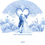 Blue and White Engagement Ornament, Toile Keepsake, Personalized Couple Gift, First Christmas Engaged 2025, Custom Ceramic Present