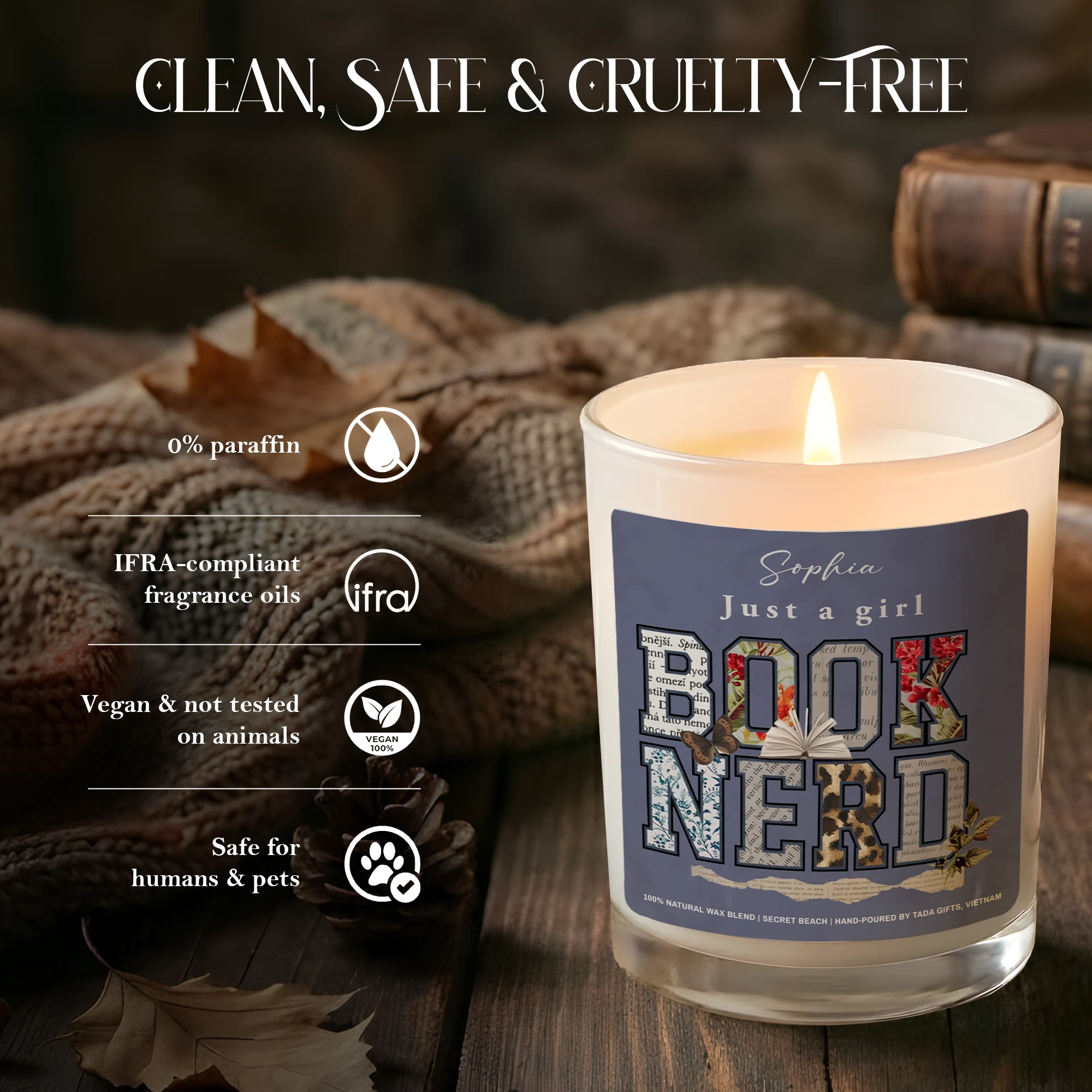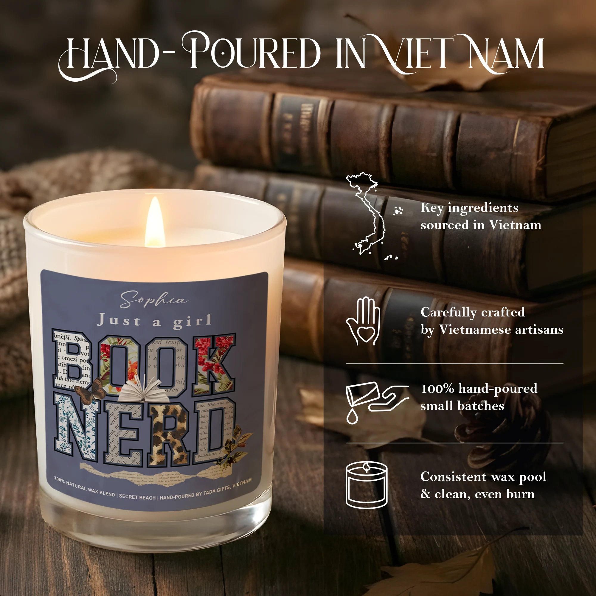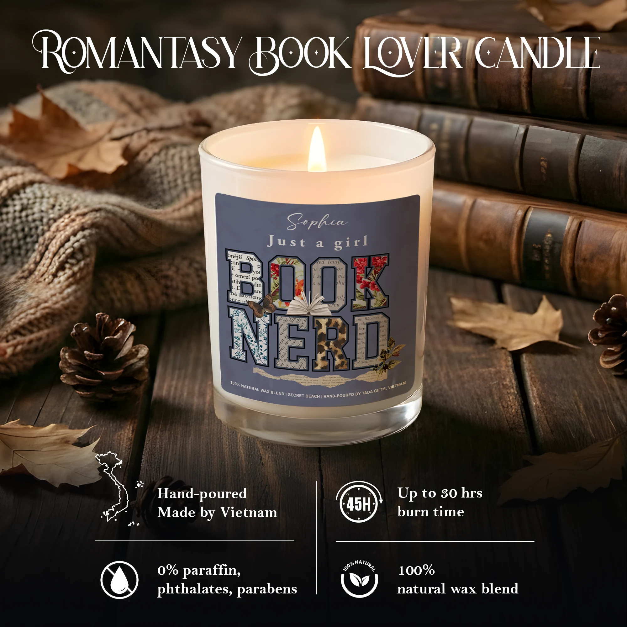 Book Nerd, Bookish Candle, Bookish Gifts, Gifts for Book Readers, Reader Gifts, literary candle, gift for book lovers
