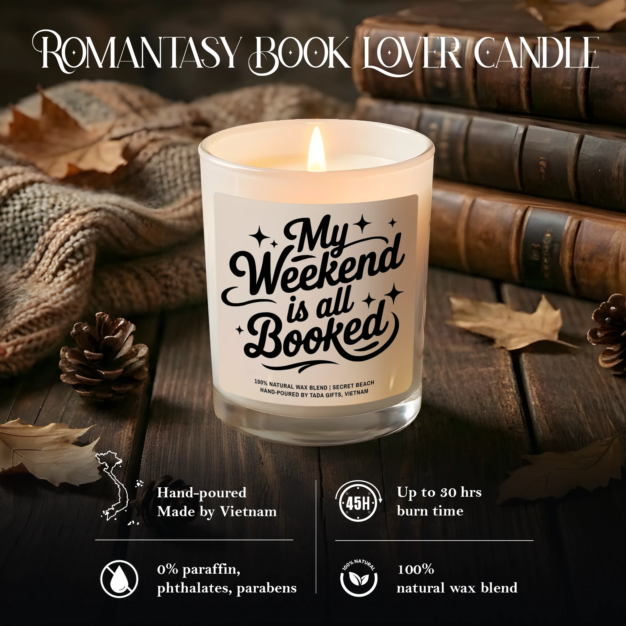 Bookish Candle, Book Lover Gift for Her, Reader Gift, scent lovers, Bookworm Gift, Smut Gift, My weekend is all booked