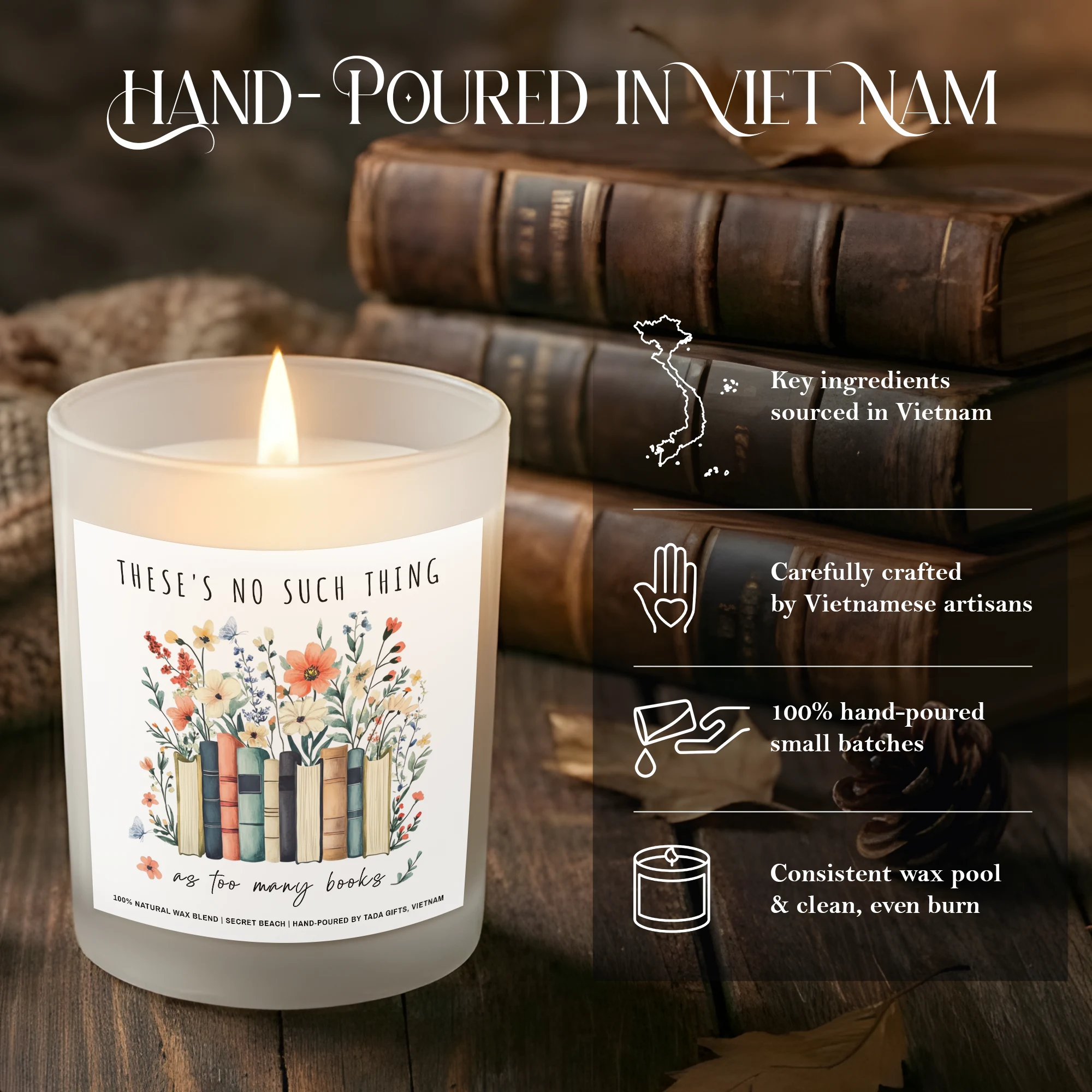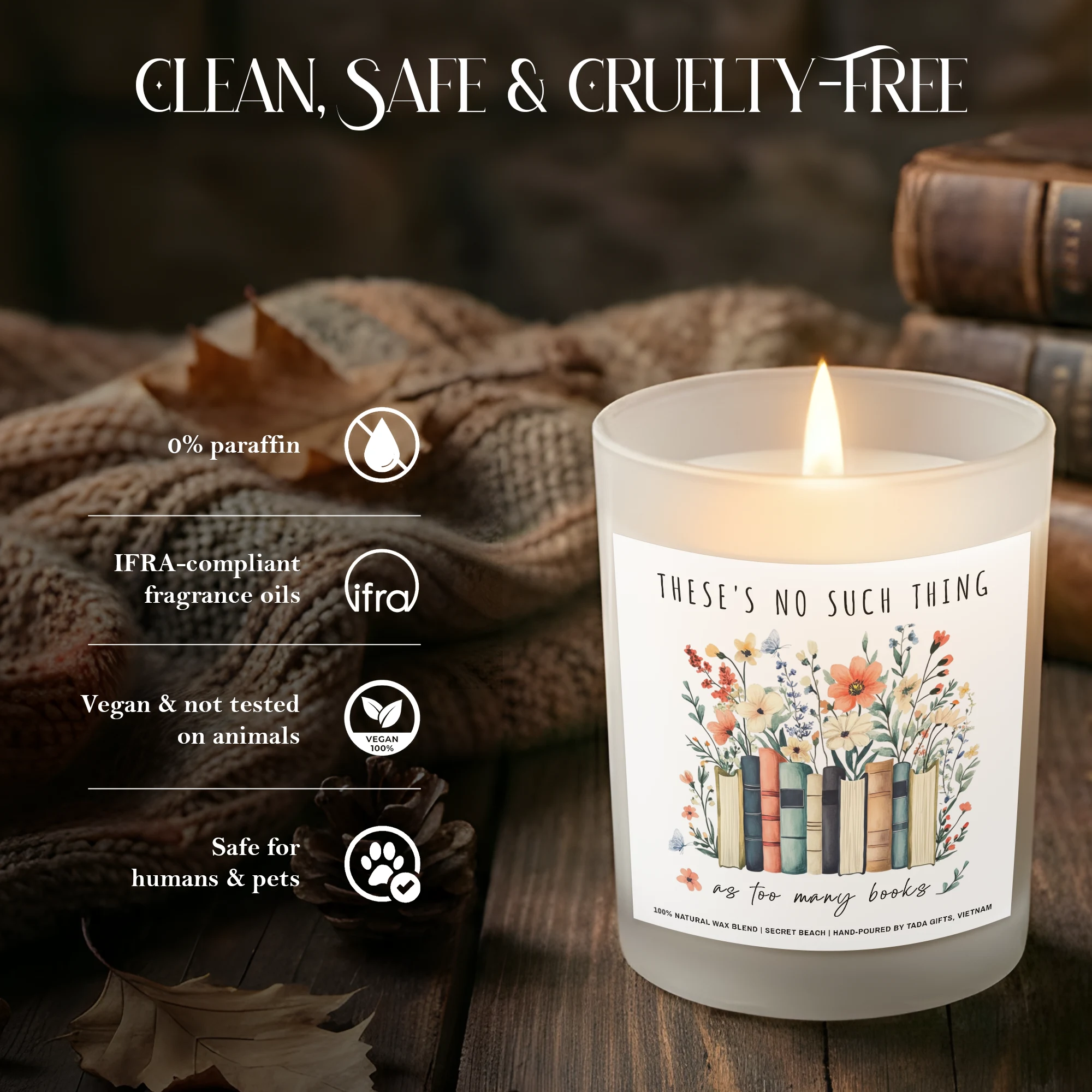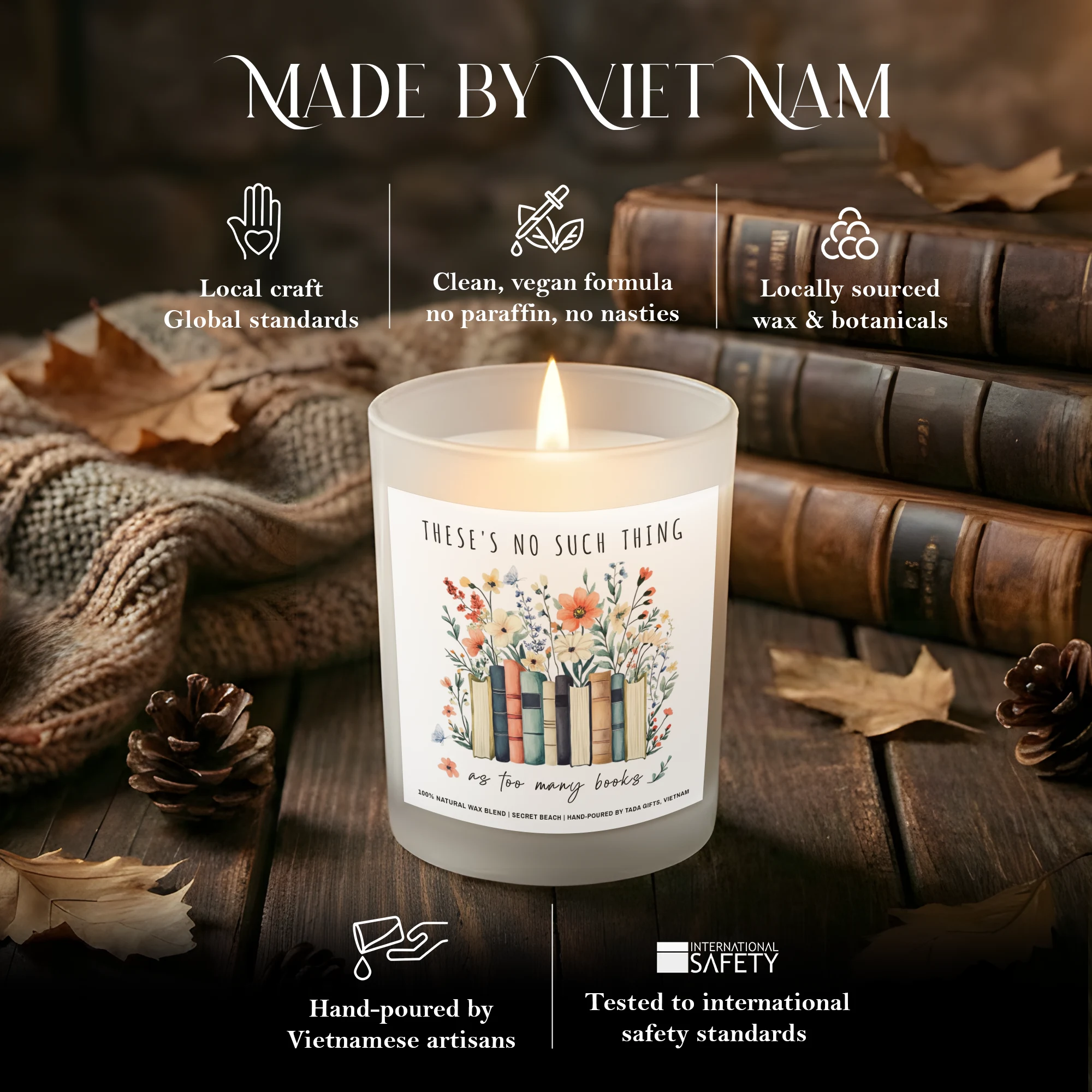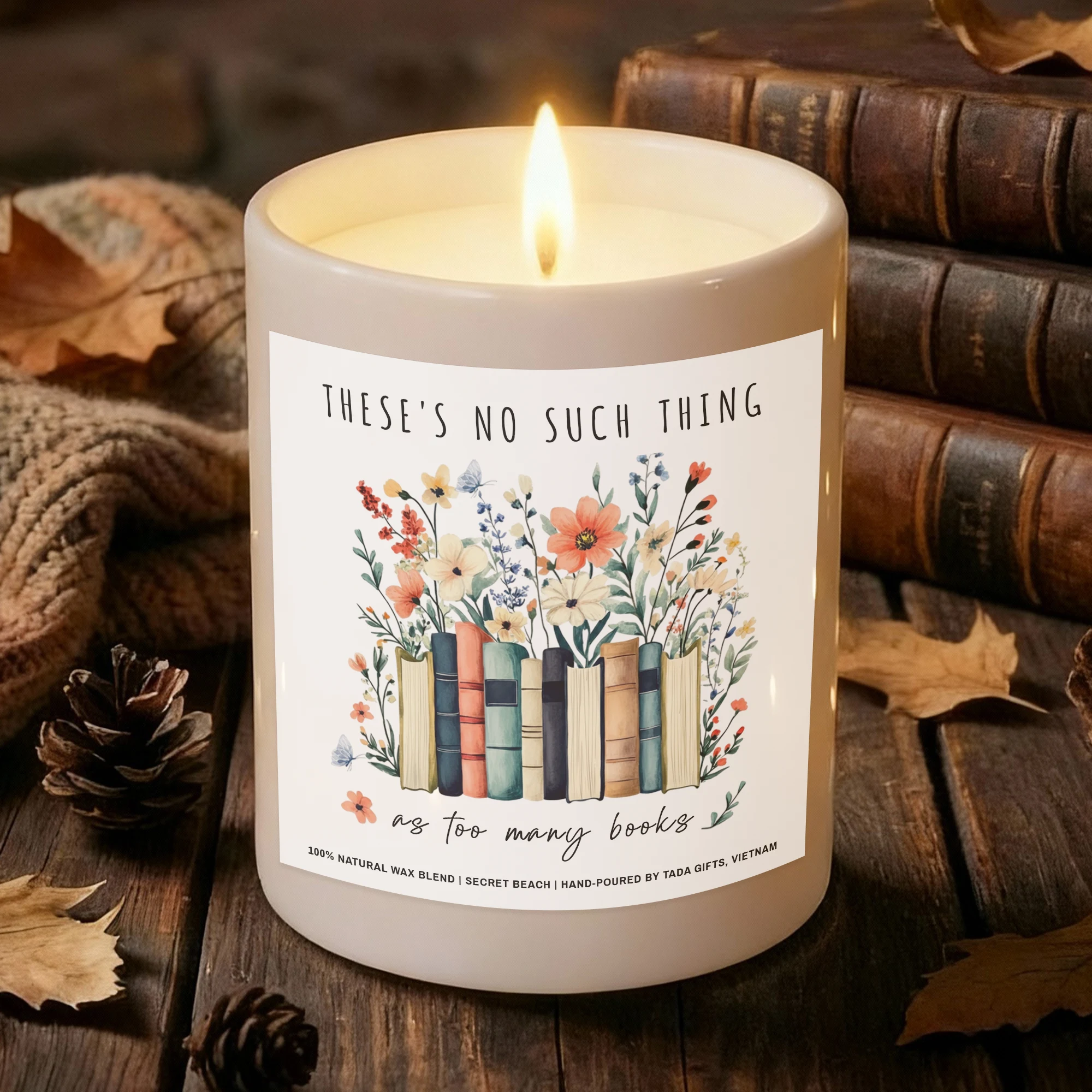 Bookish Candle, Bookish Gifts, Gifts for Book Readers, Reader Gifts, literary candle, These’s no such thing as too many books