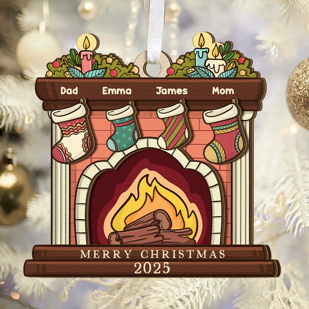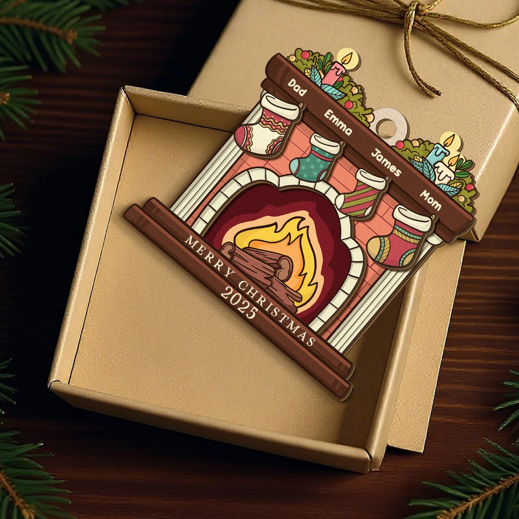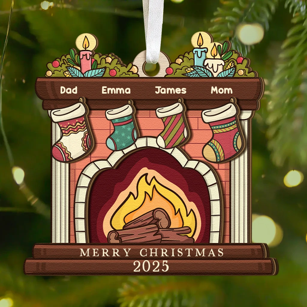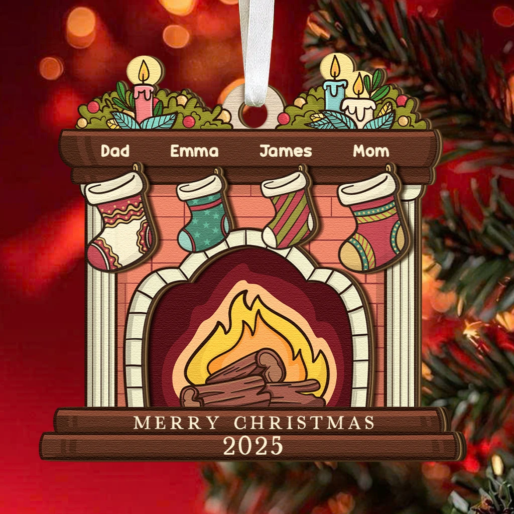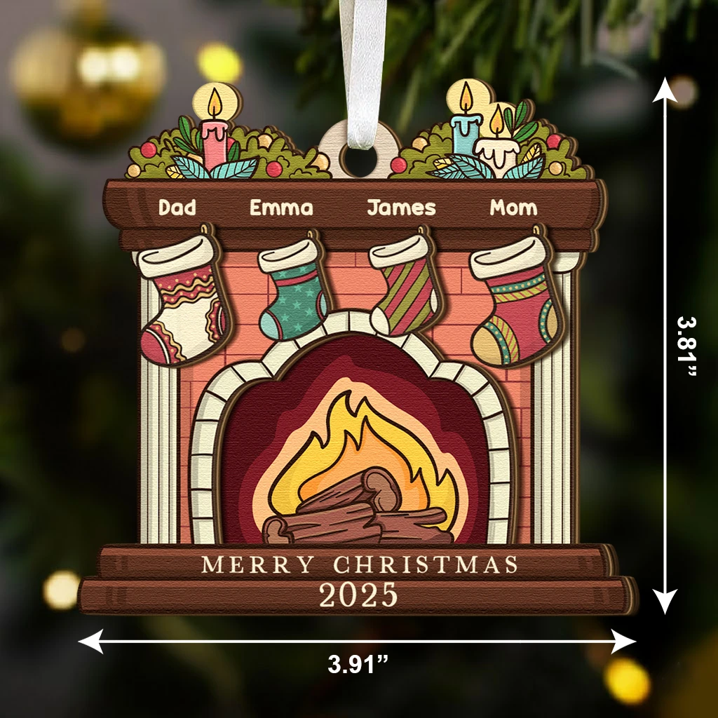 Cartoon Fireplace First Christmas Ornament | Personalized Family Name Holiday Keepsake 2025