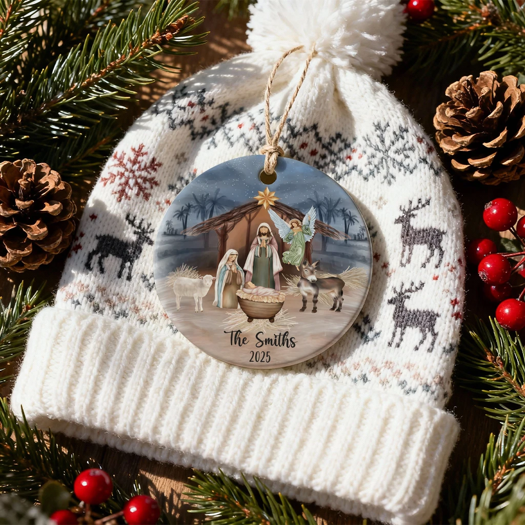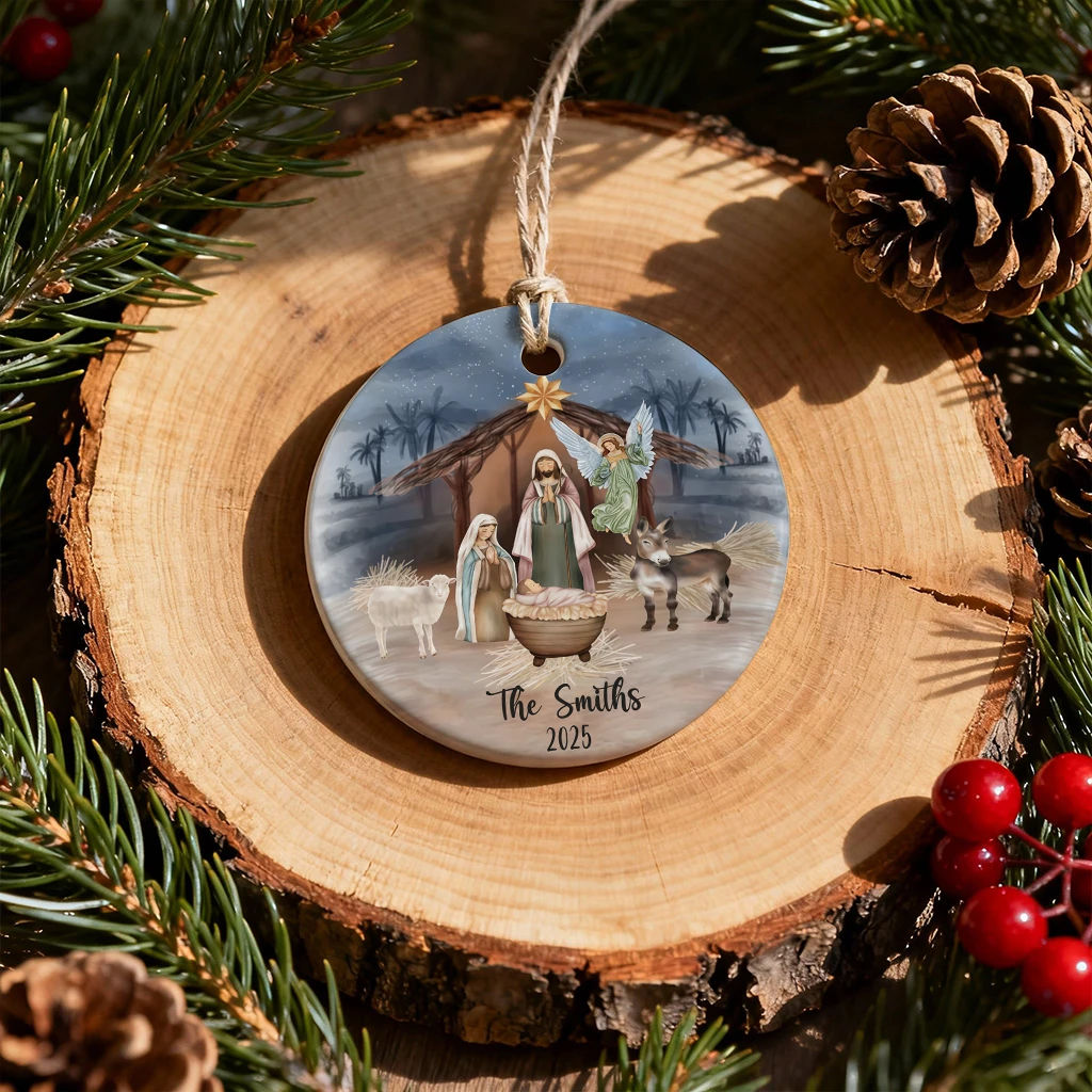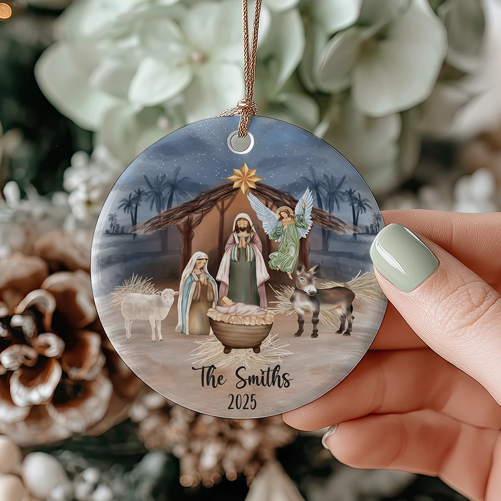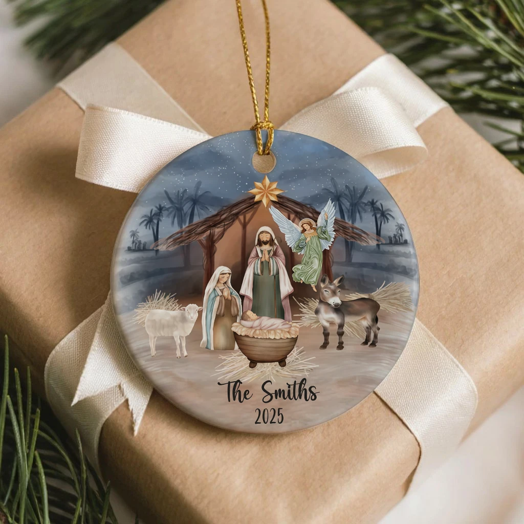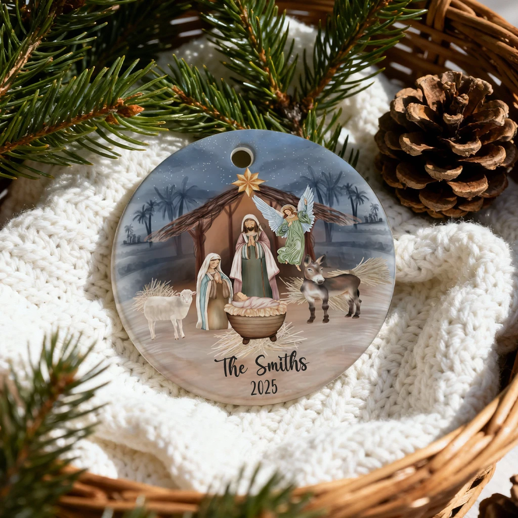 Christian Family Christmas Ornament 2025, Customized Nativity Manger Art, Unique Religious Gift