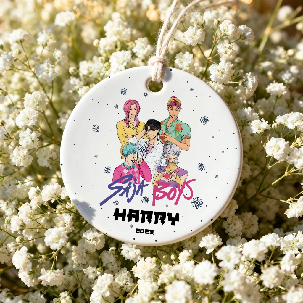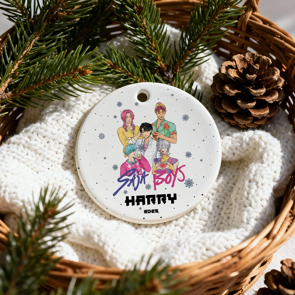 Custom Anime Boys Ceramic Ornament | Personalized Name Christmas Keepsake 2025 | Unique Gift for Anime Fans