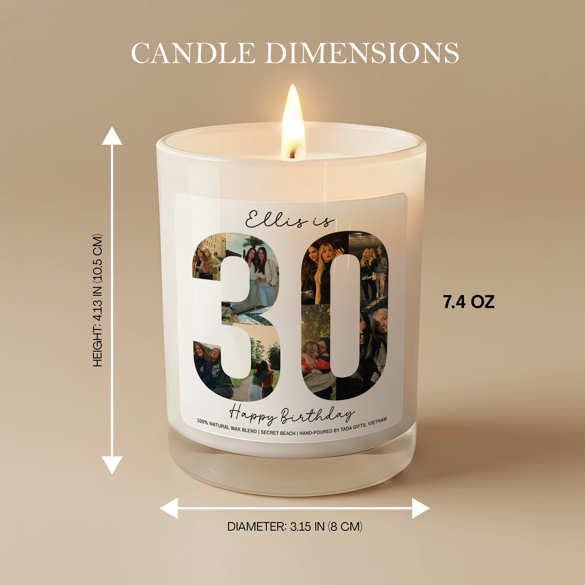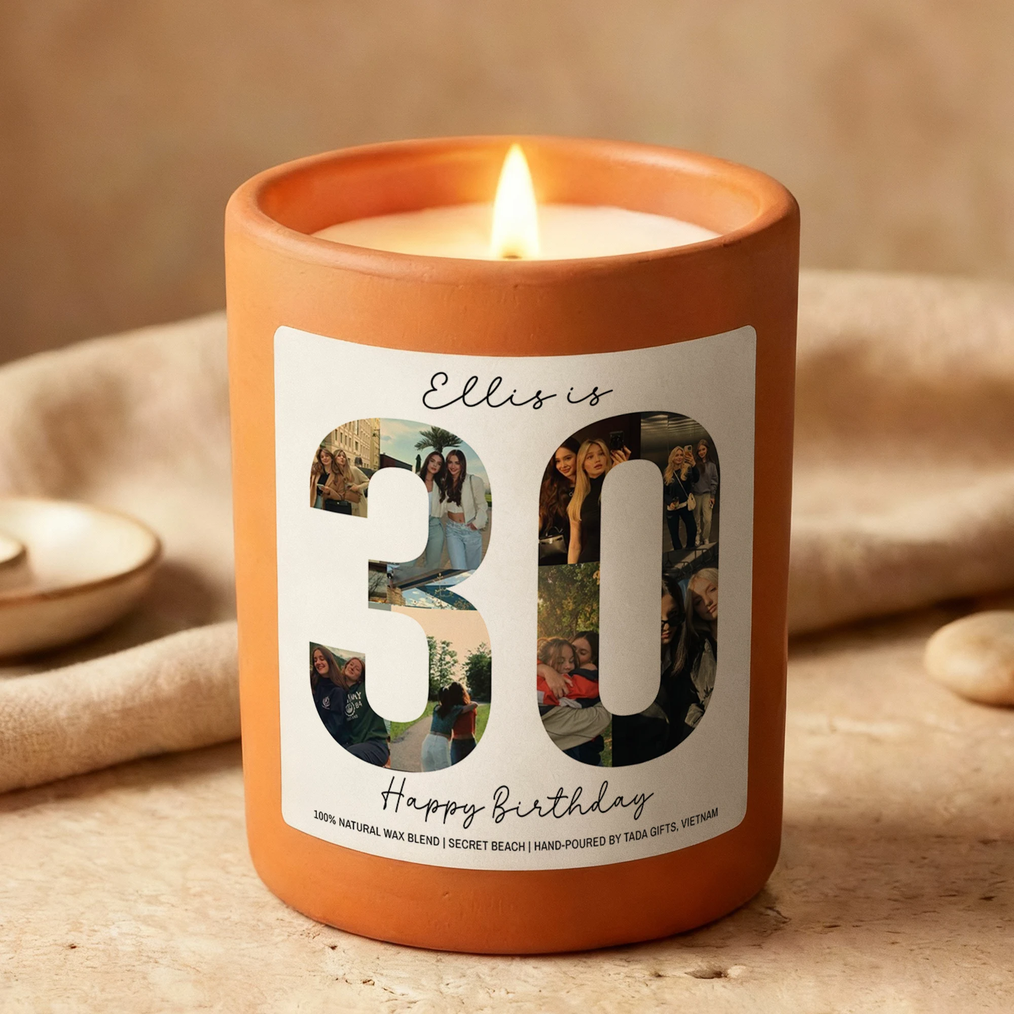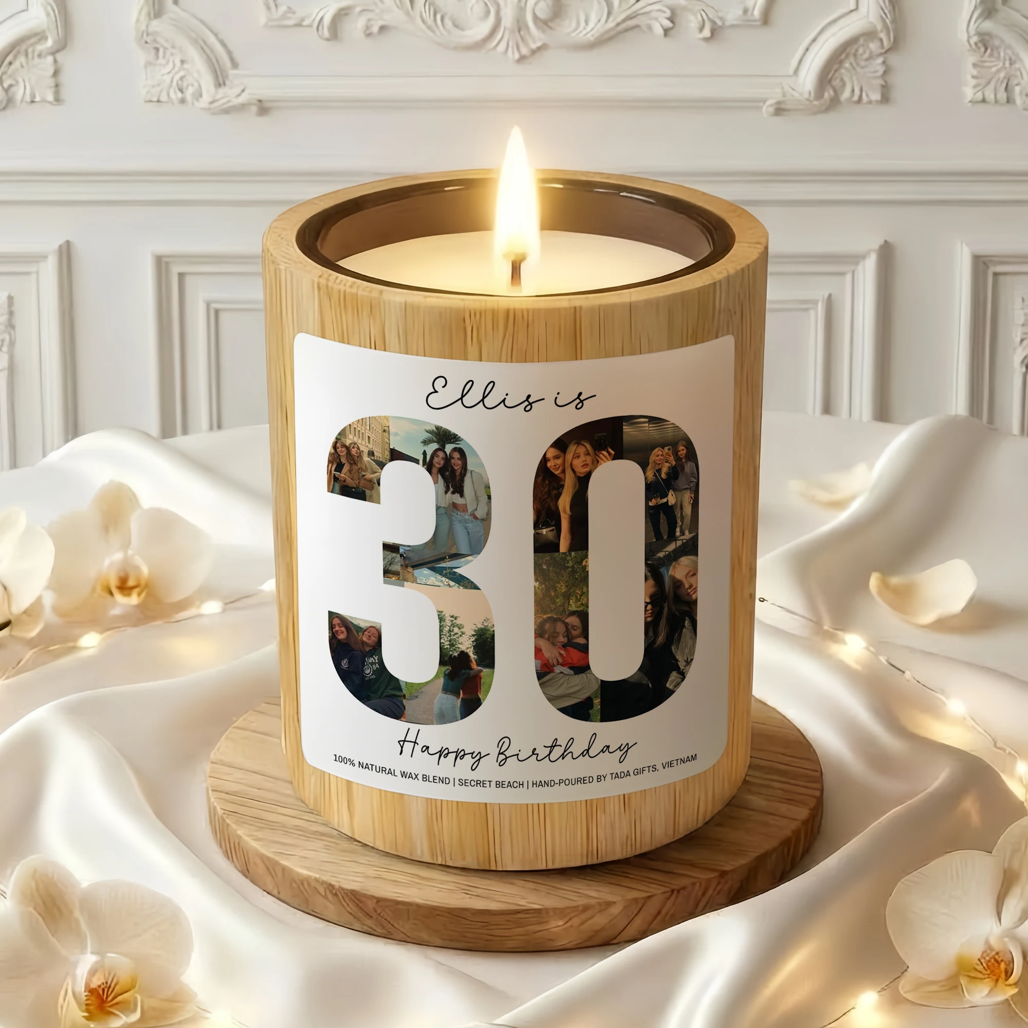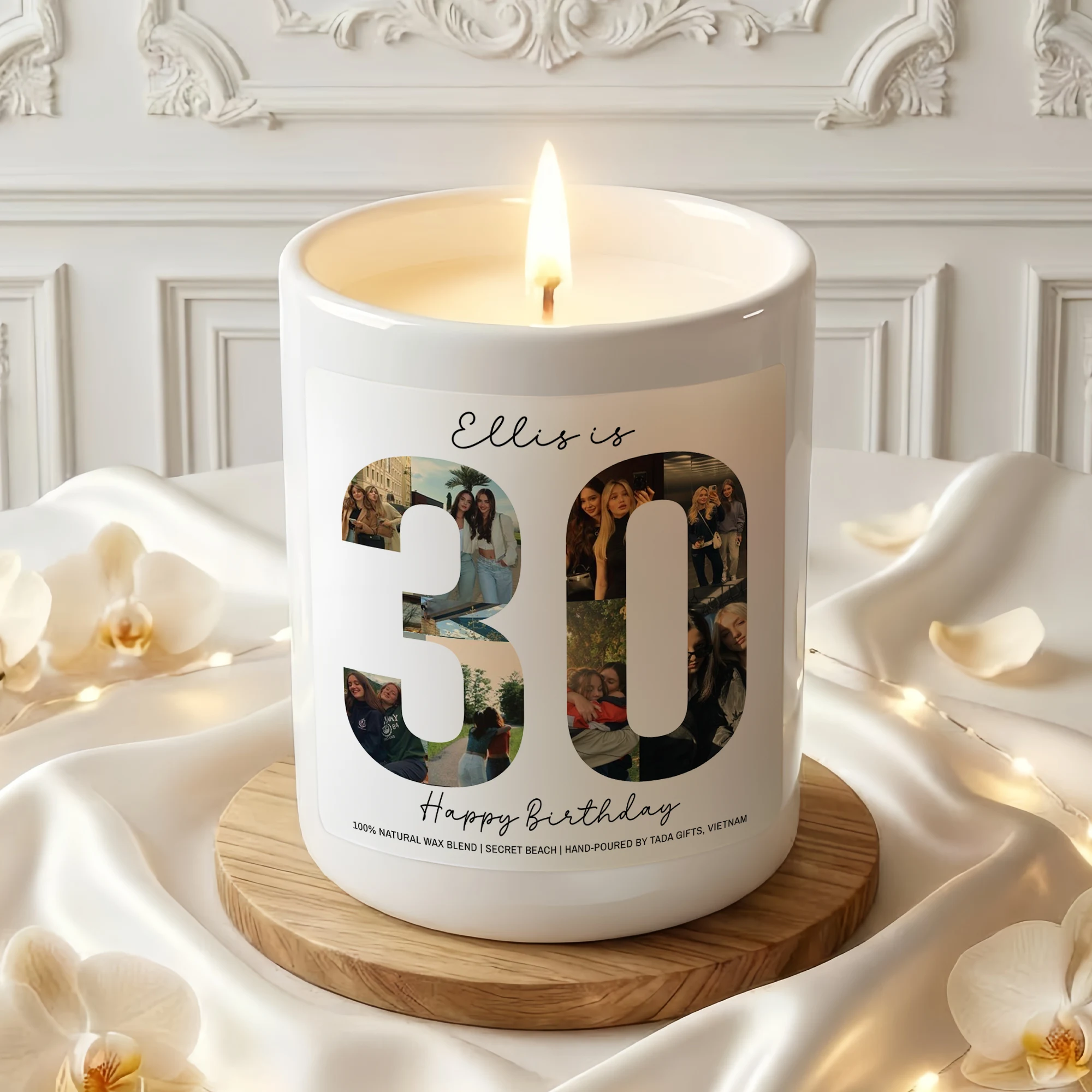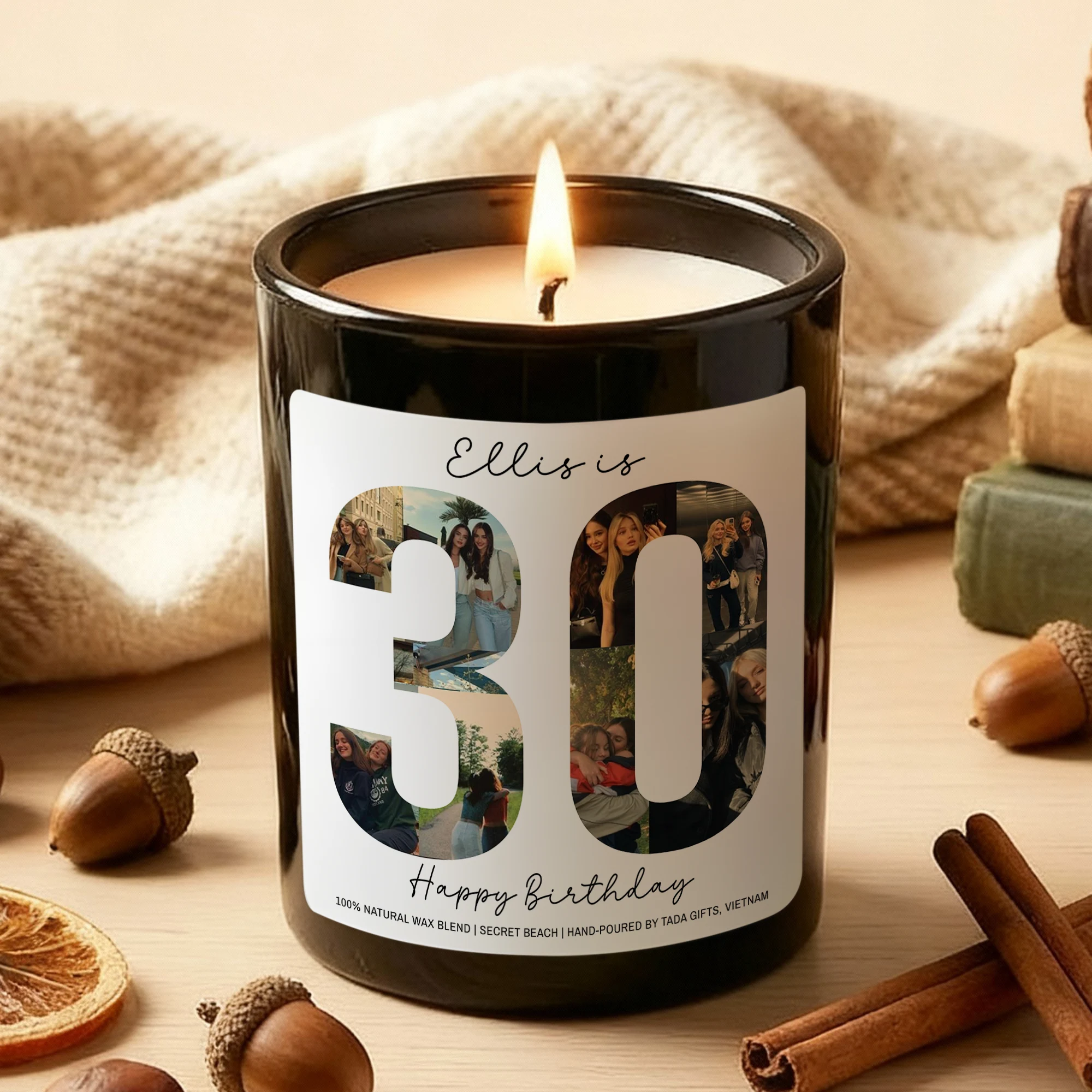Custom Any Age Photo Collage Birthday Candle – Personalized Name & Milestone Scented Soy Candle – Unique Birthday Gift for Her