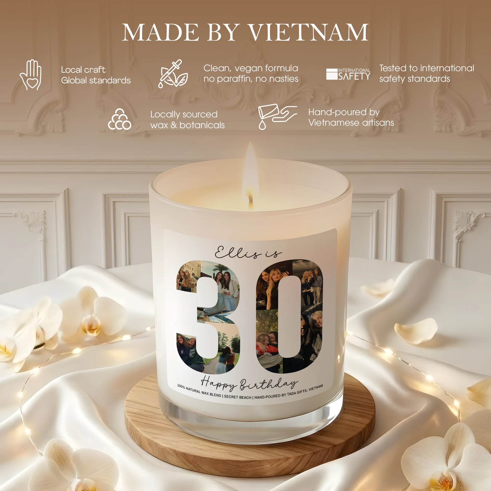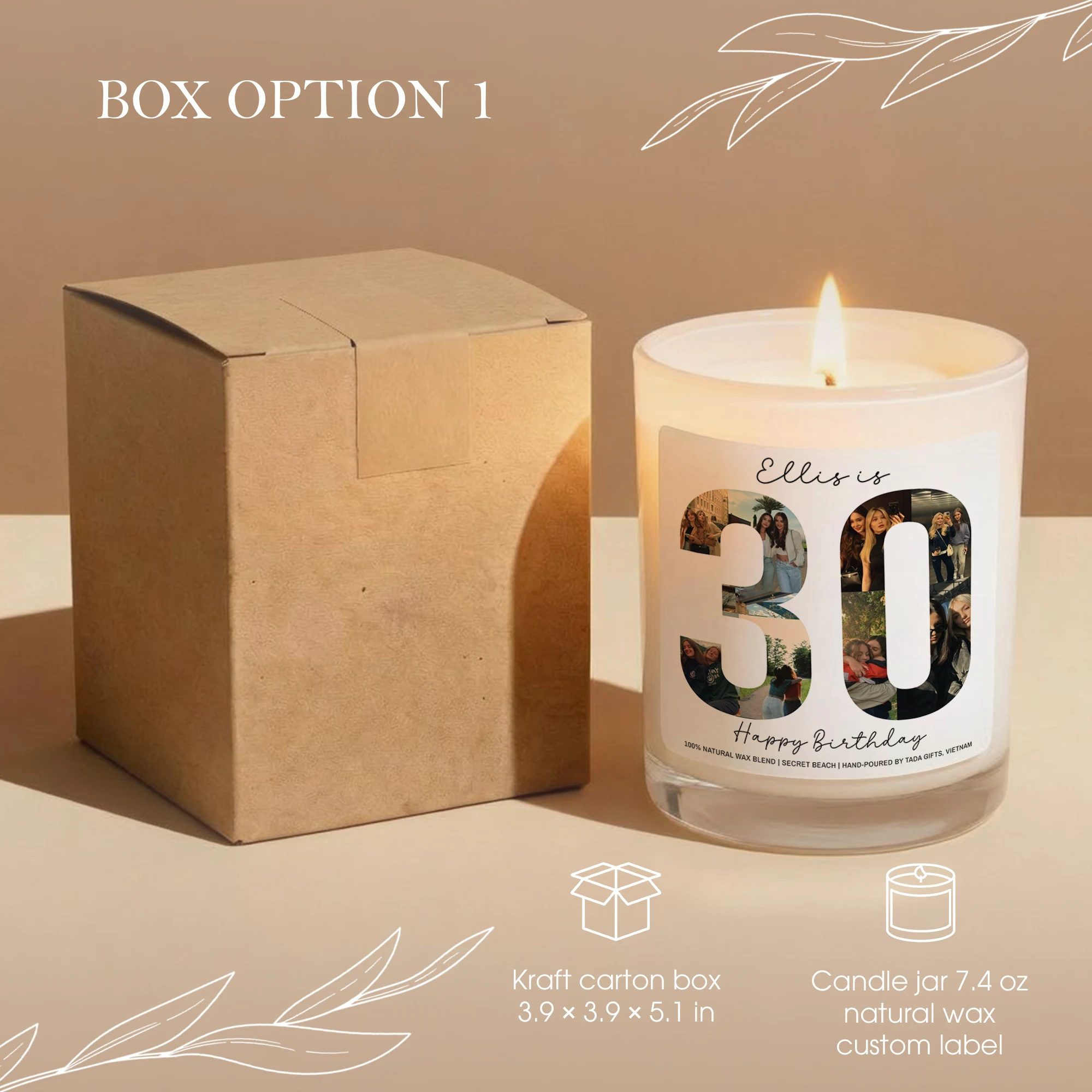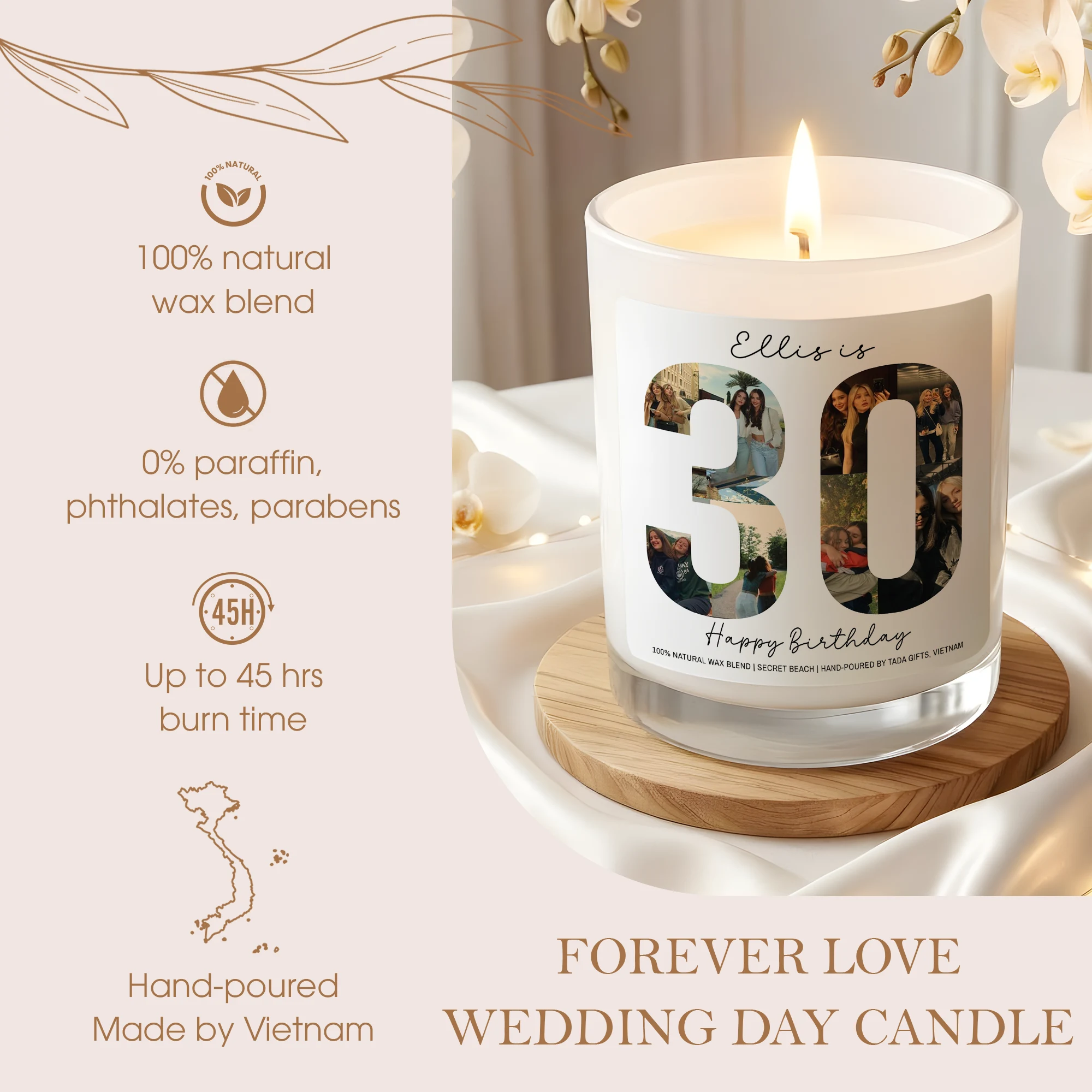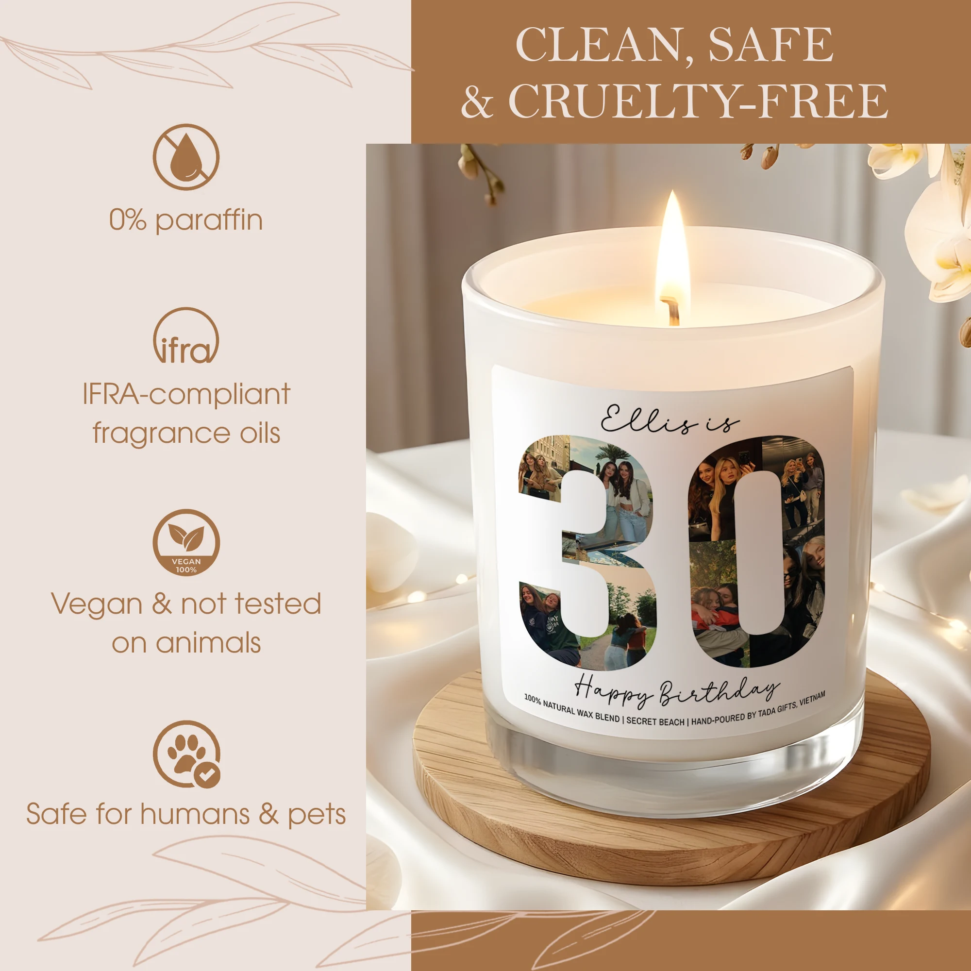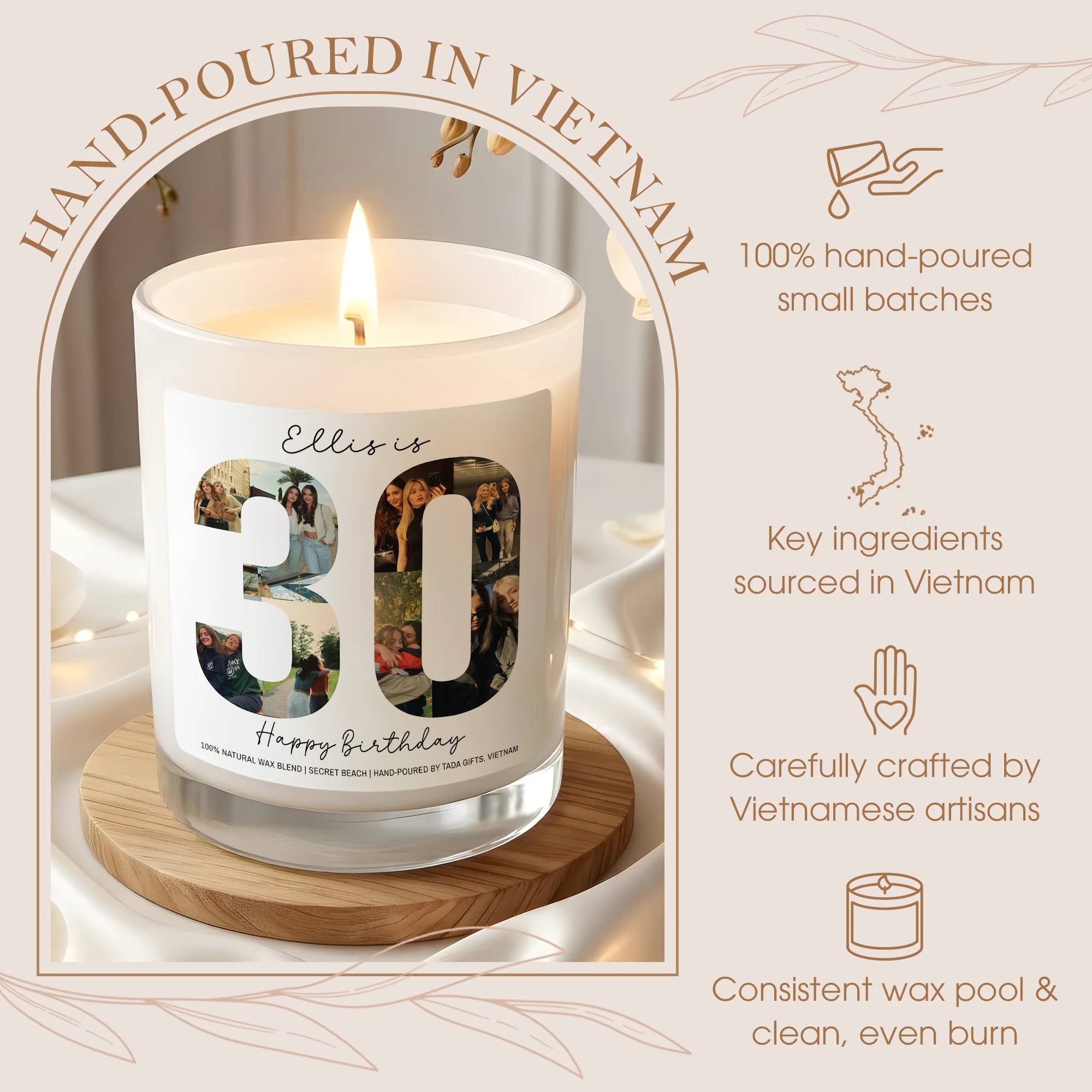 Custom Any Age Photo Collage Birthday Candle – Personalized Name & Milestone Scented Soy Candle – Unique Birthday Gift for Her