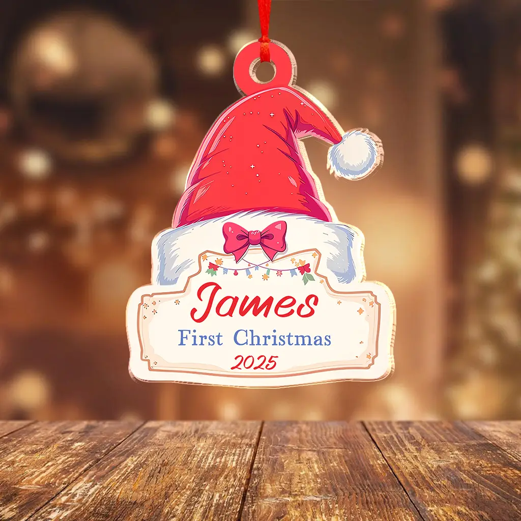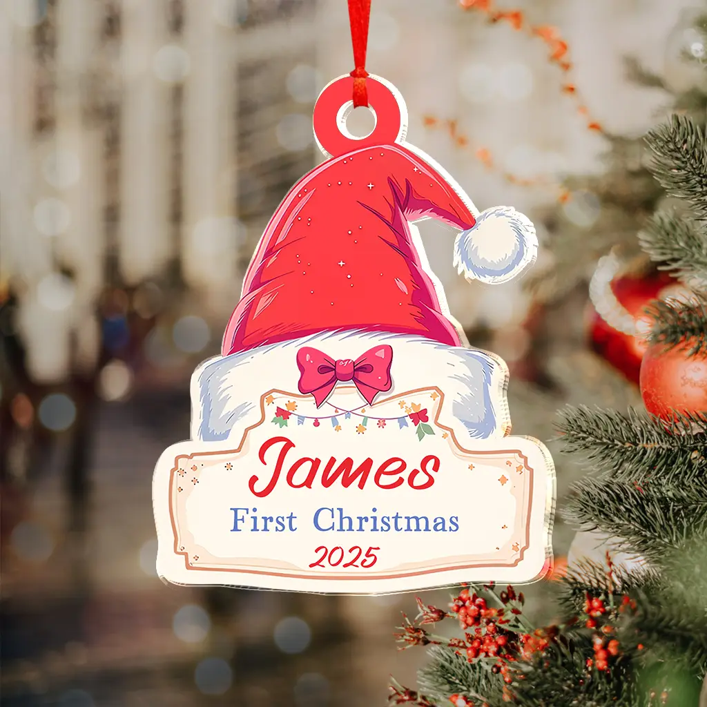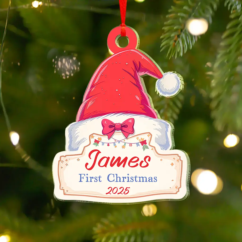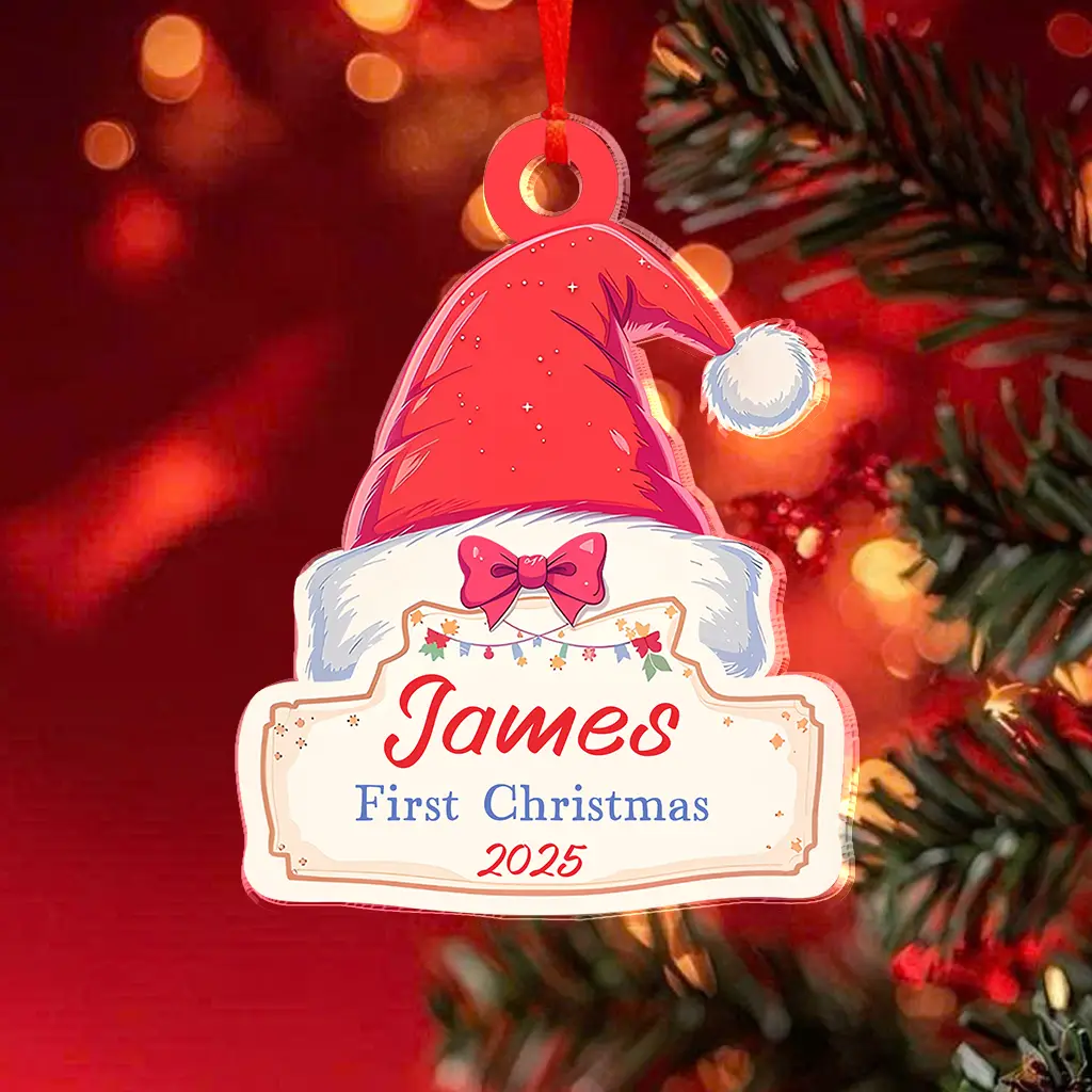Custom Baby Santa Hat Acrylic Ornament | Personalized First Christmas Keepsake | Unique Christmas Decoration
