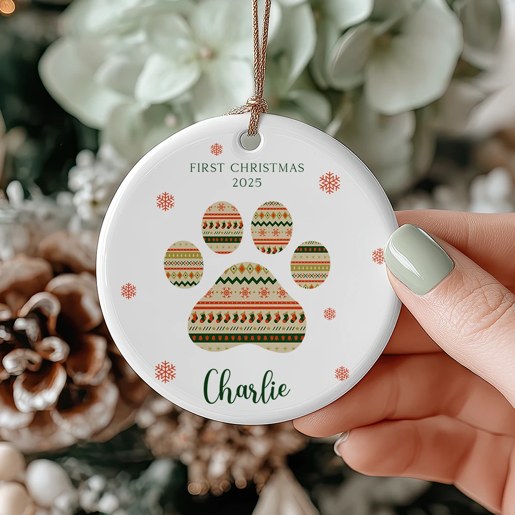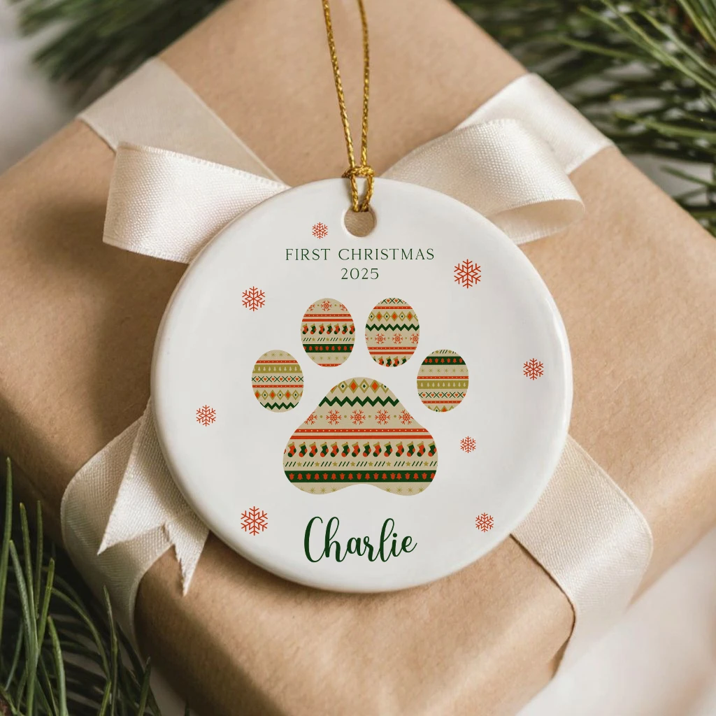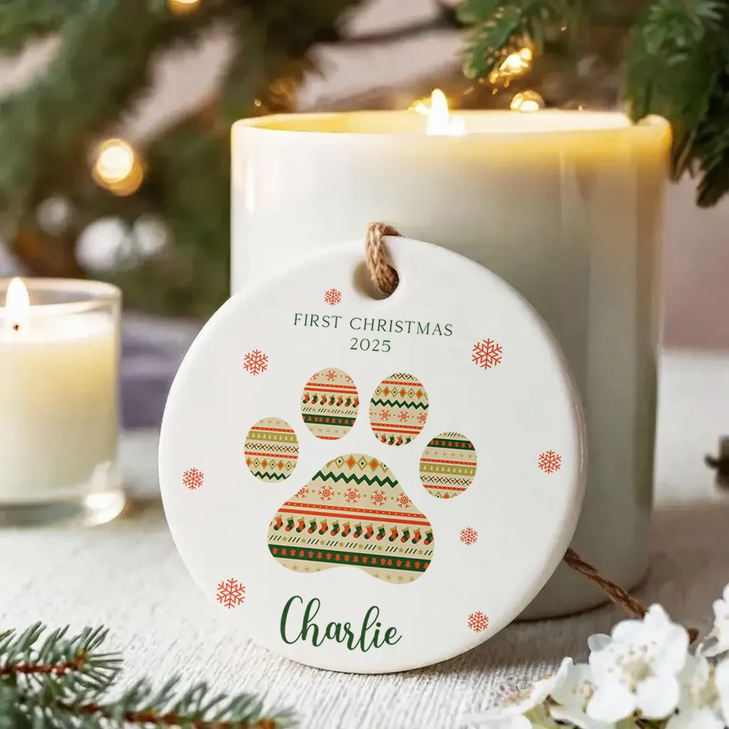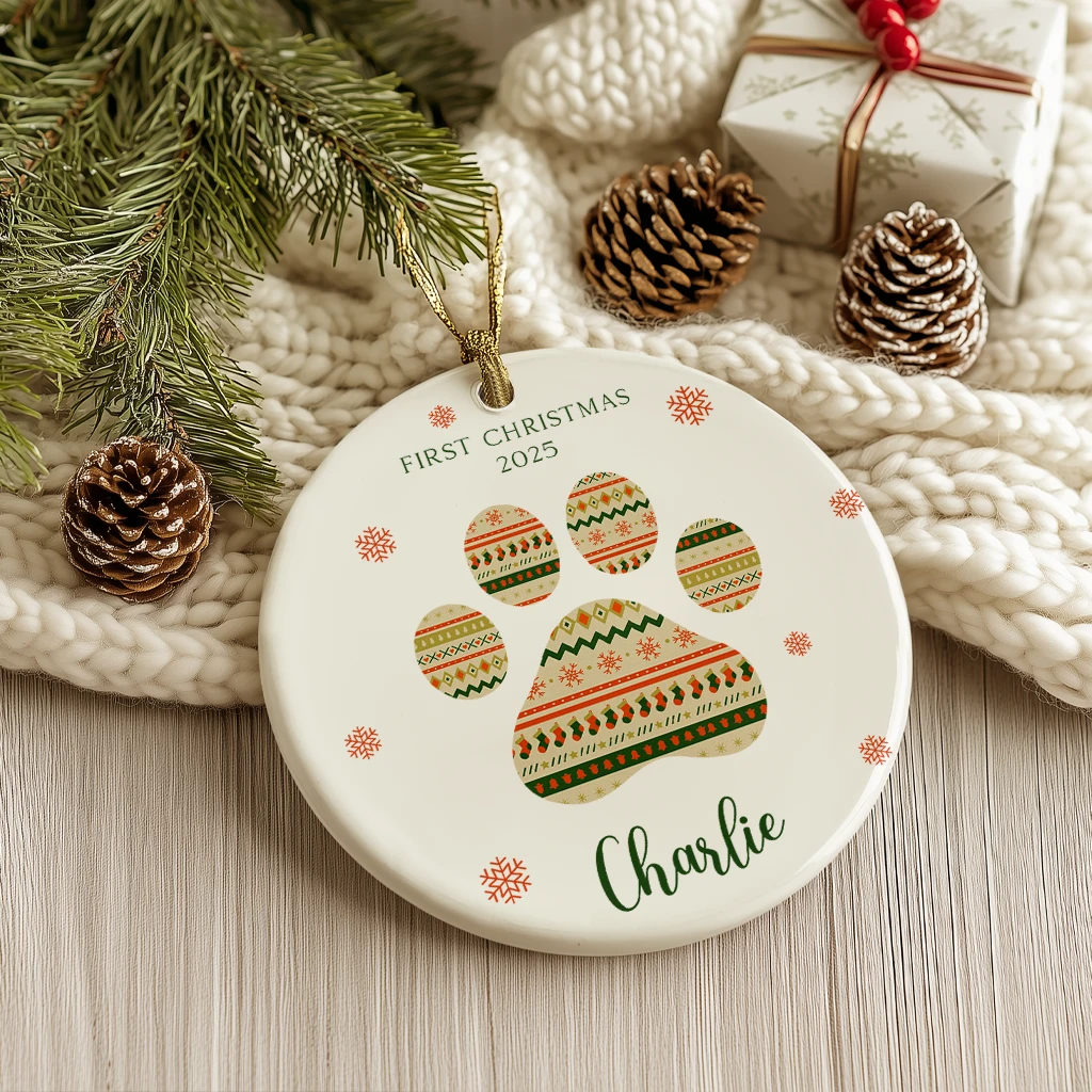 Custom Cat Paw Ornament | Knit Pattern Ceramic Keepsake | Personalized Kitten Name Christmas 2025