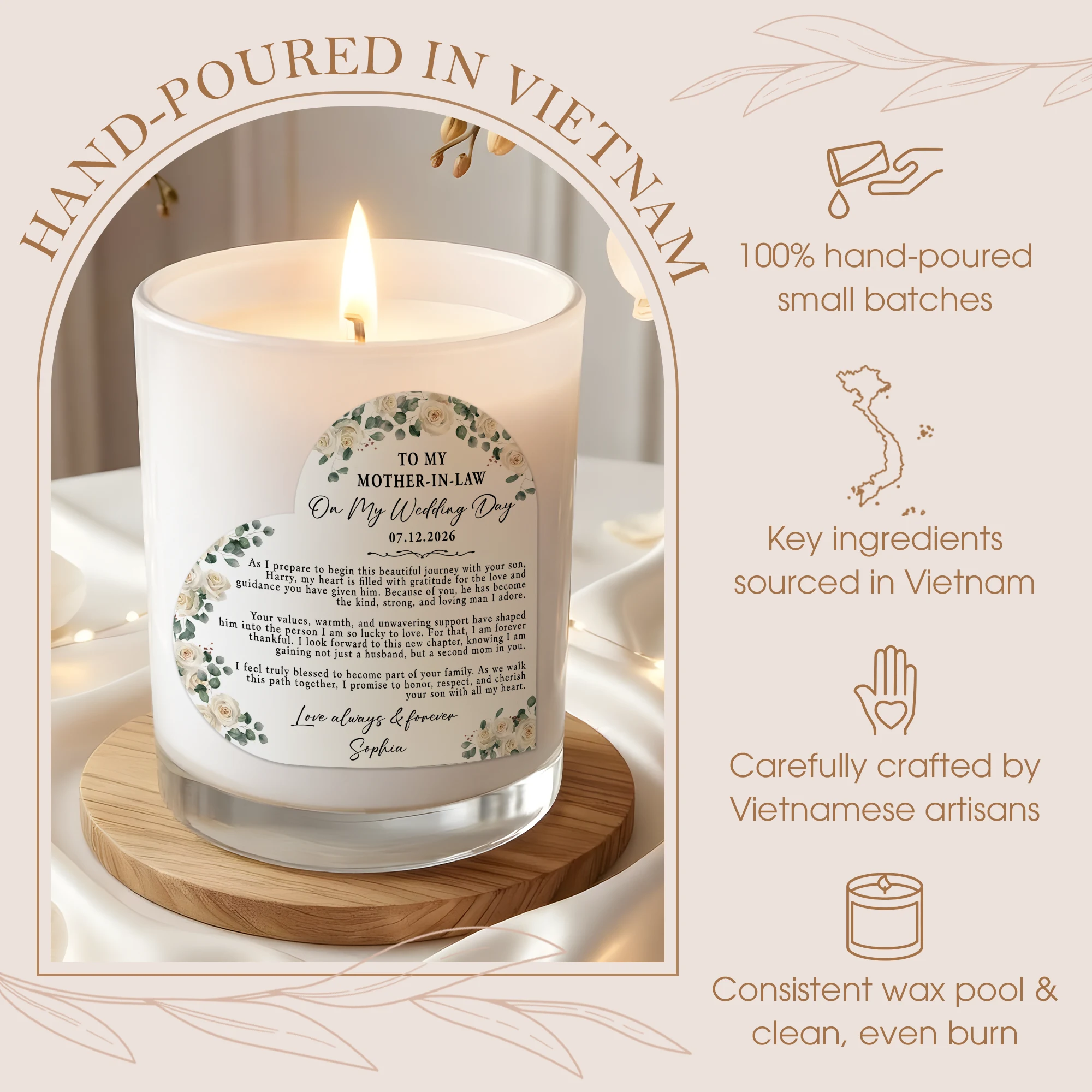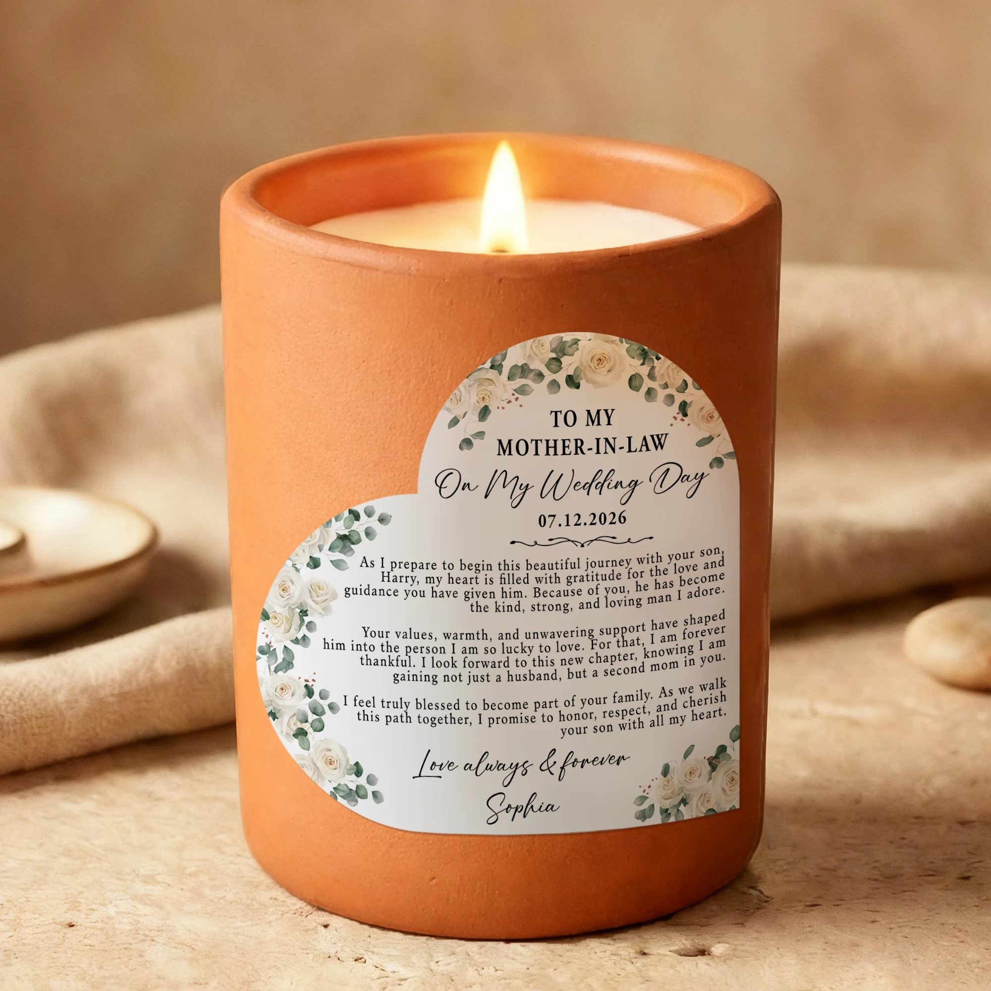 Custom Mother of the Groom Gift from Bride – Personalized Wedding Day Candle for Mother-in-Law – Sentimental Wedding Keepsake – Unique Bride to Mother-in-Law Thank You Gift