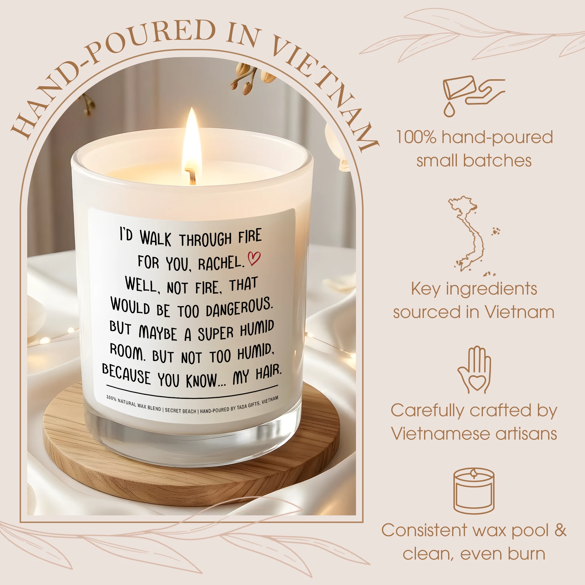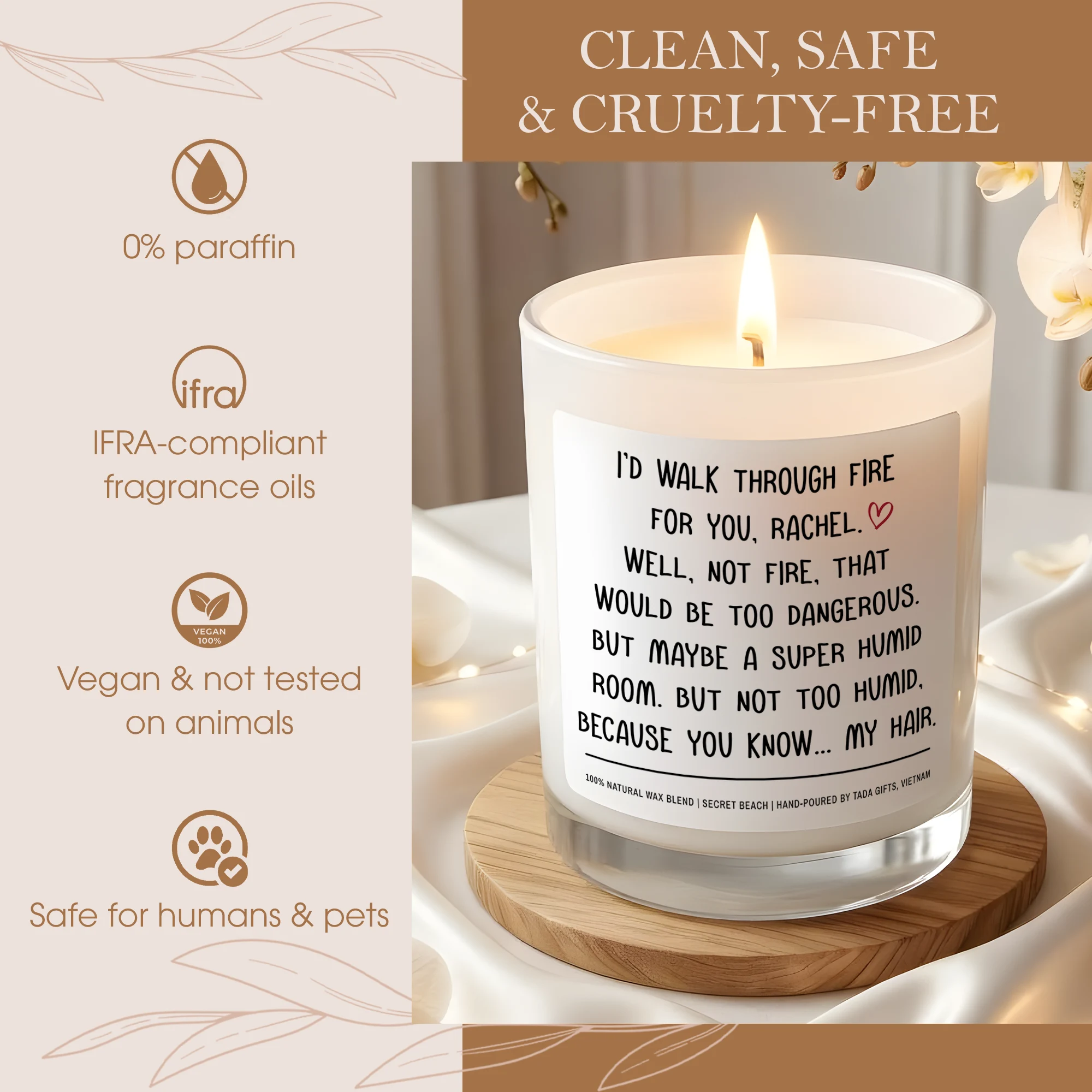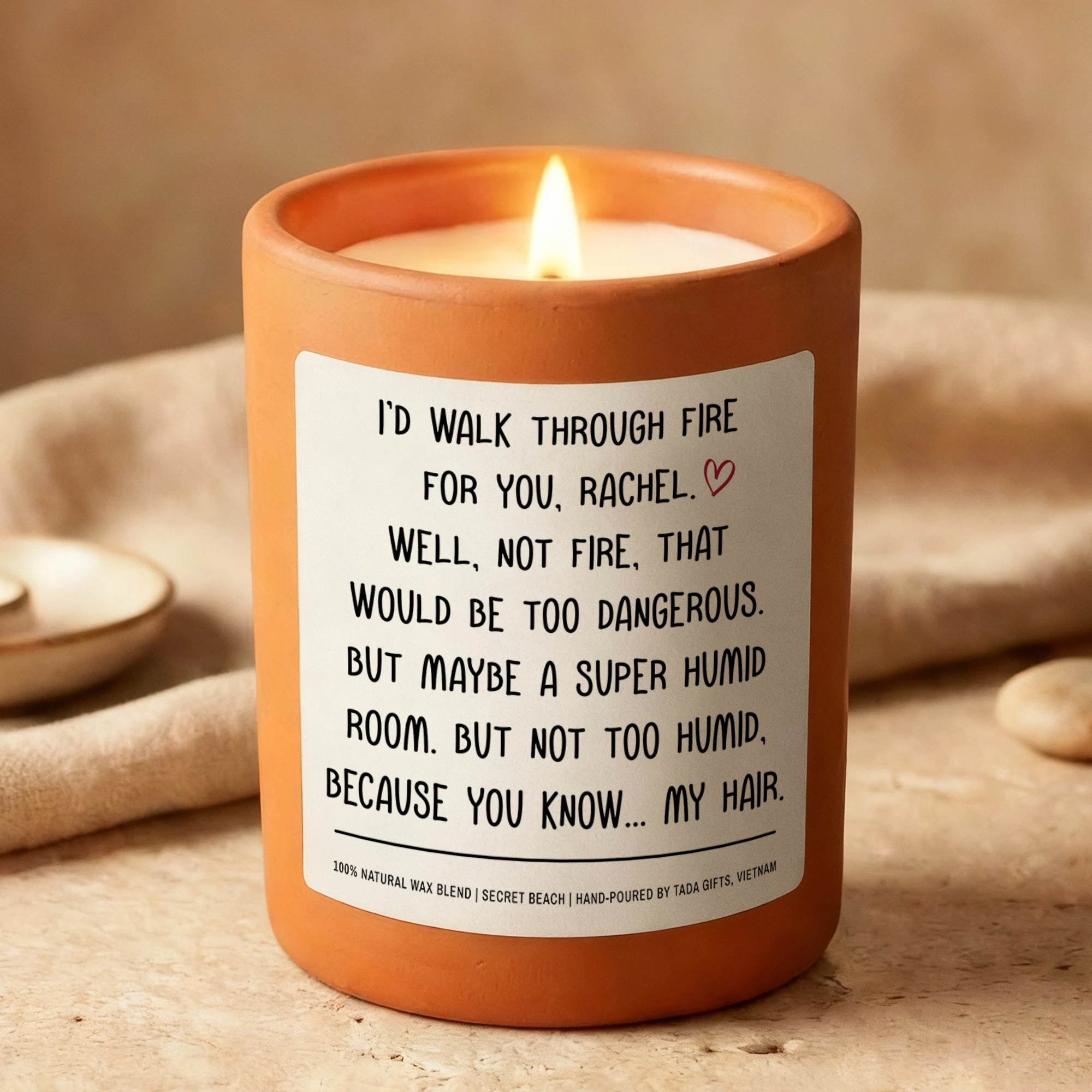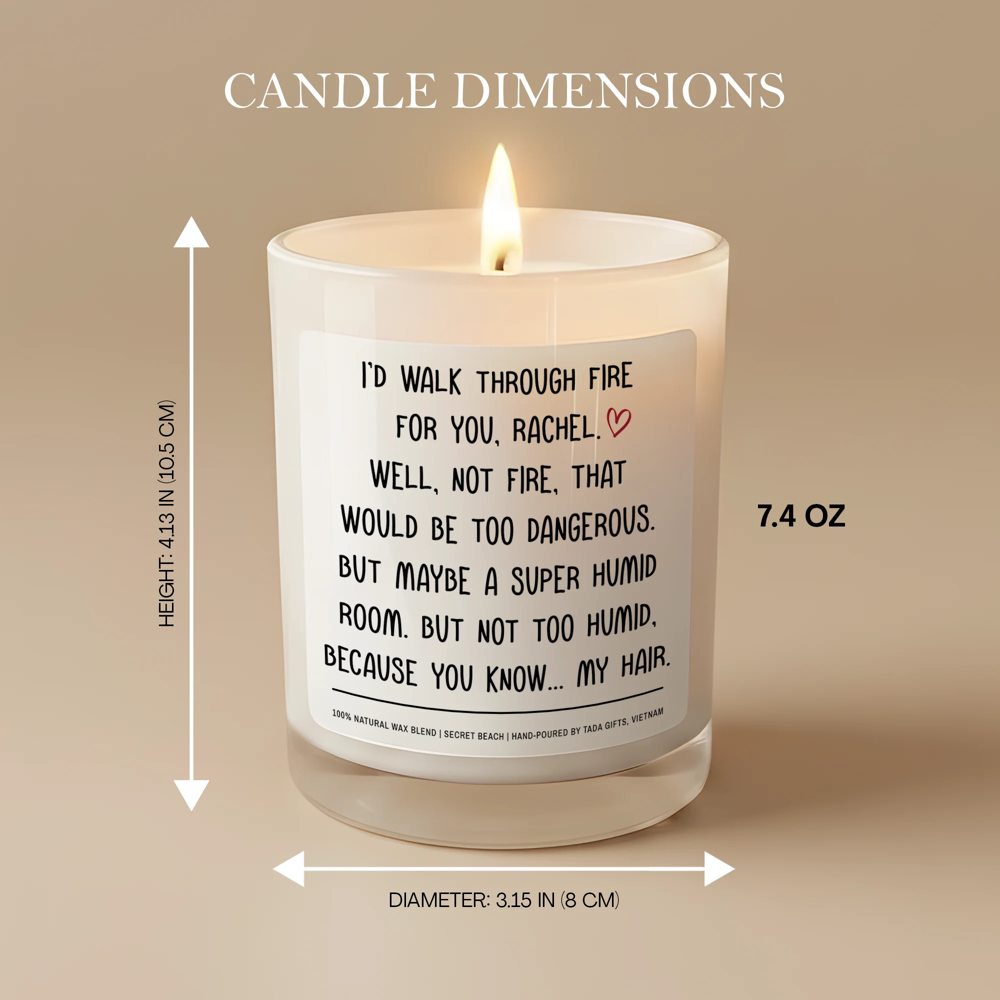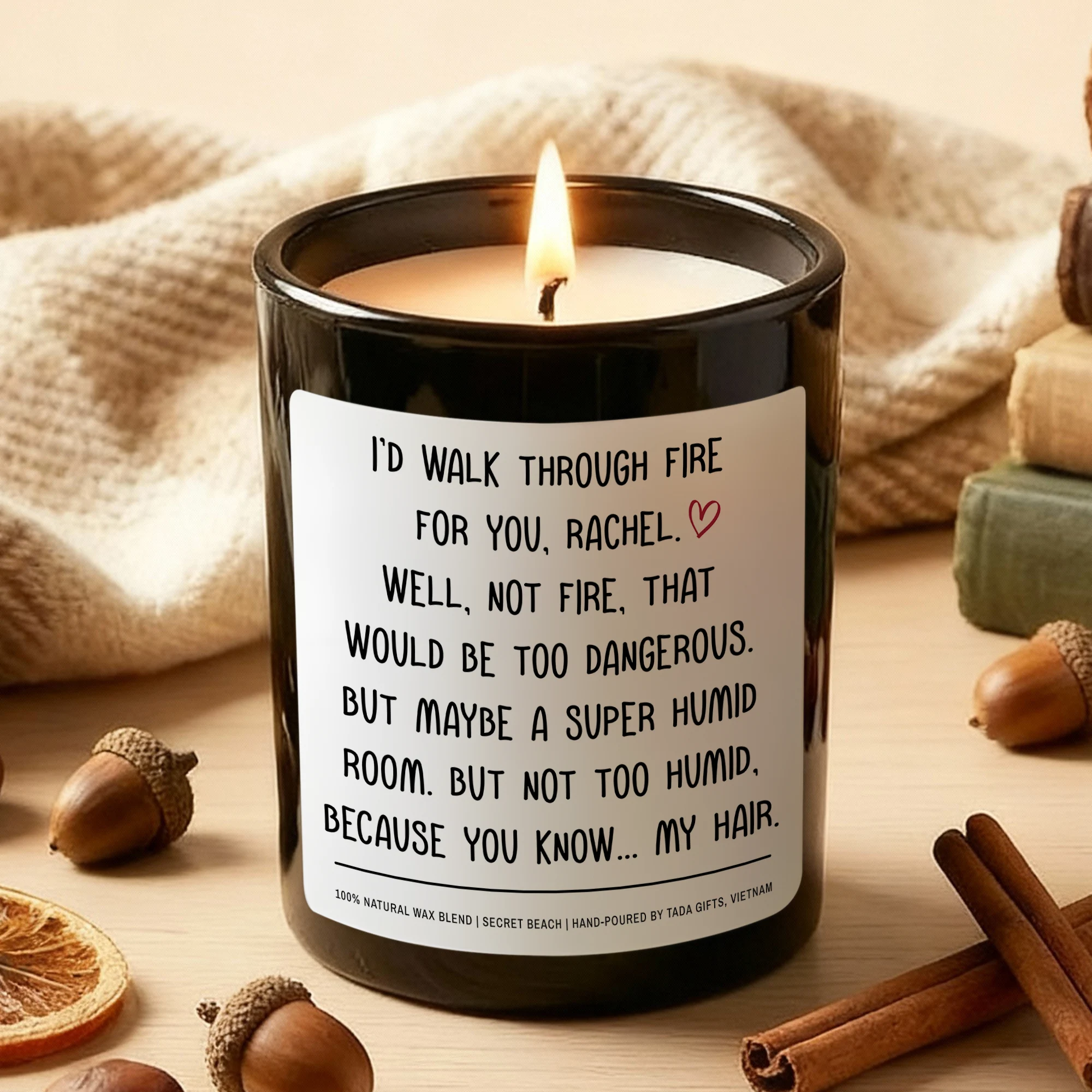 Custom Name Scented Candle – Funny Best Friend Gift – I’d Walk Through Fire For You – Personalized Candle for Her – Bestie Birthday Gift