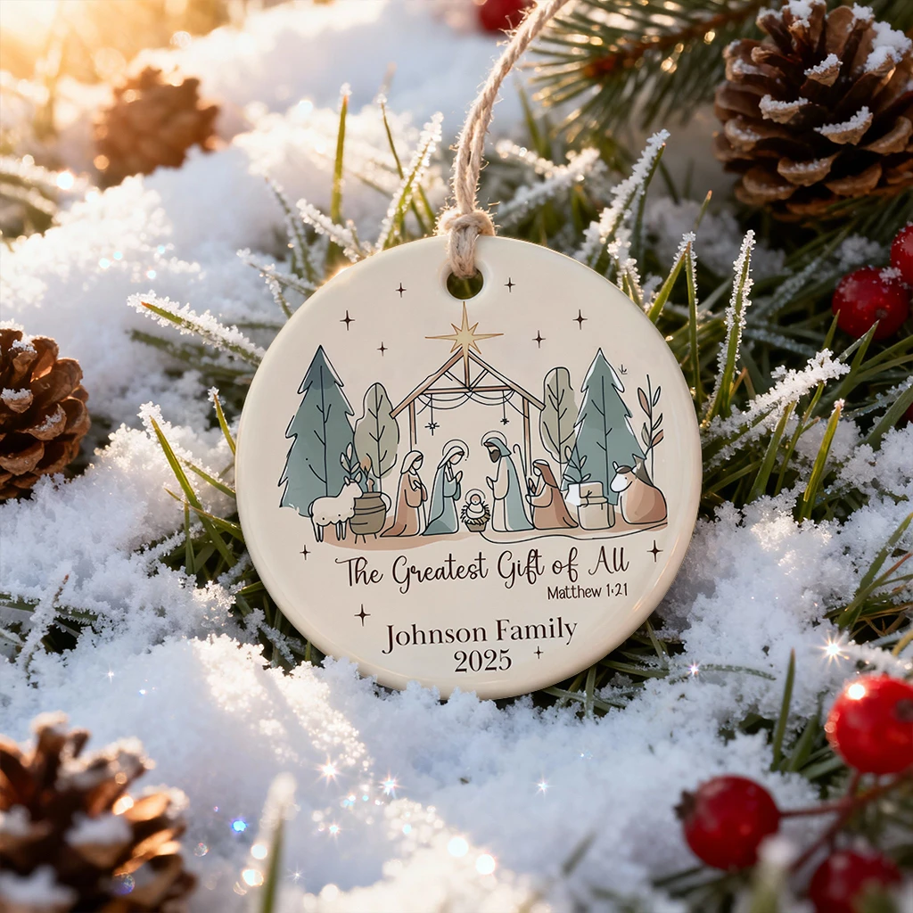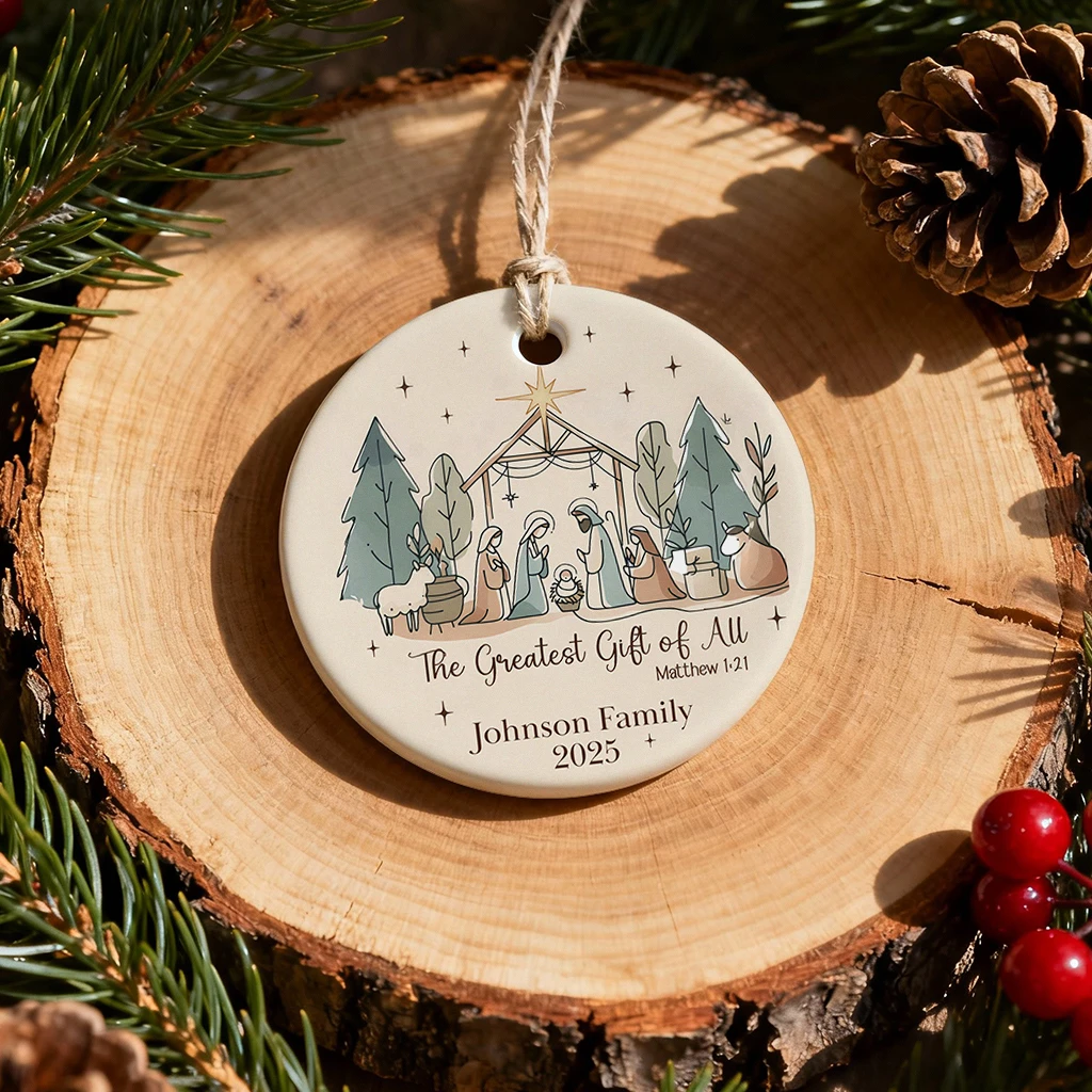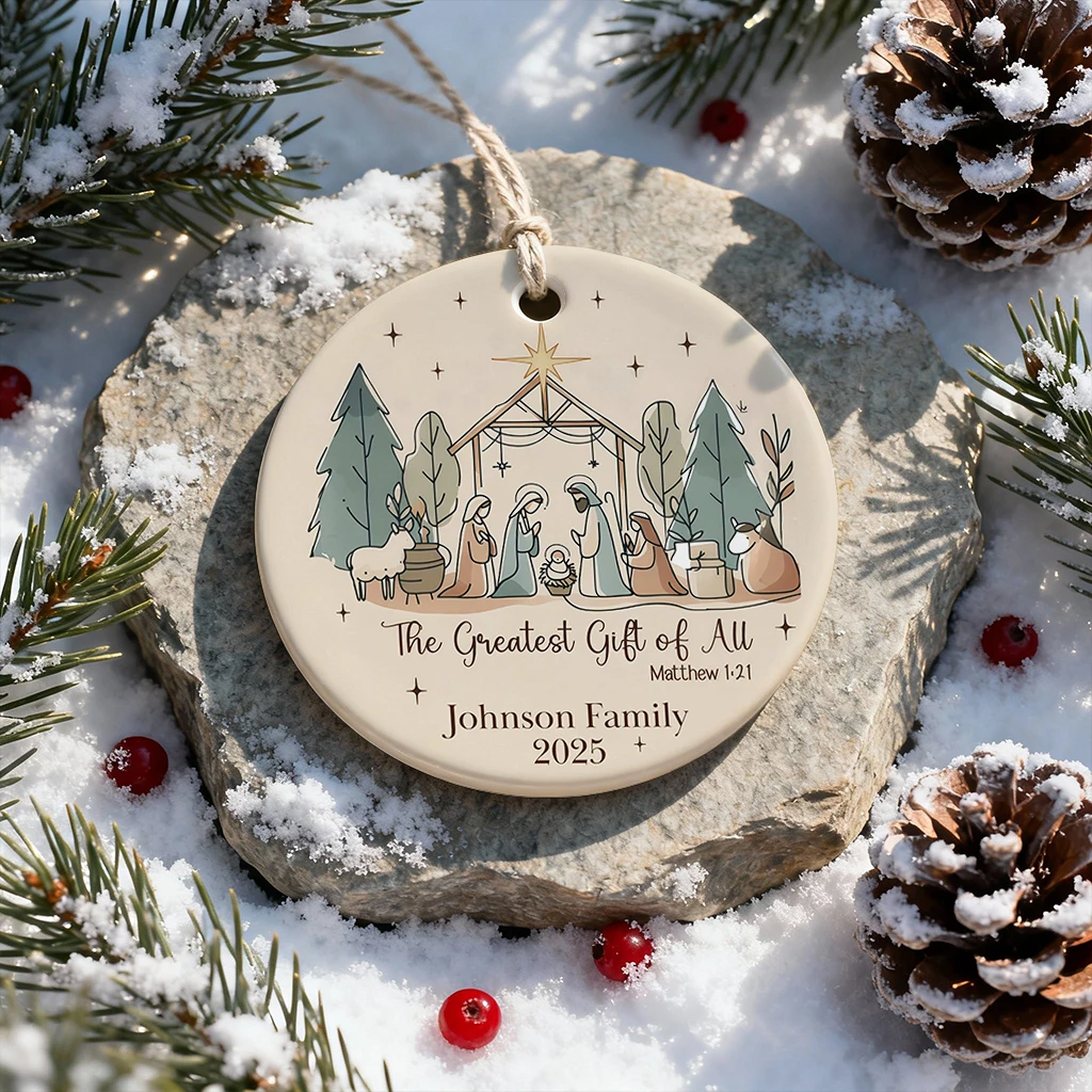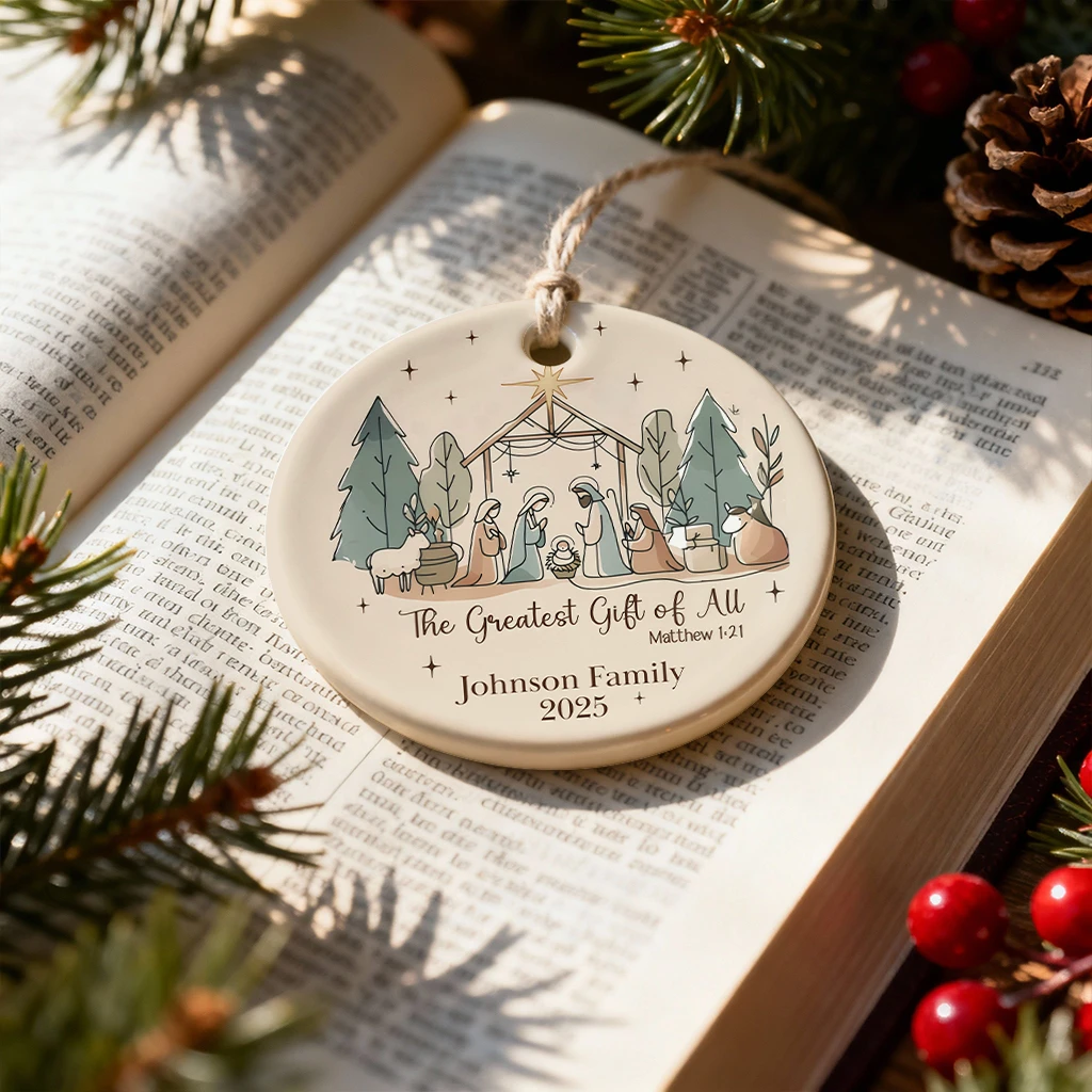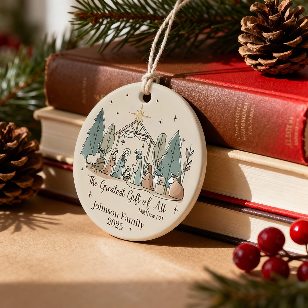 Custom Nativity Ceramic Ornament | Personalized Holy Family Christmas Keepsake 2025 | Perfect Christmas Decoration
