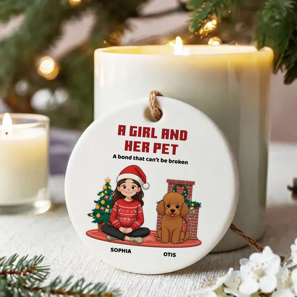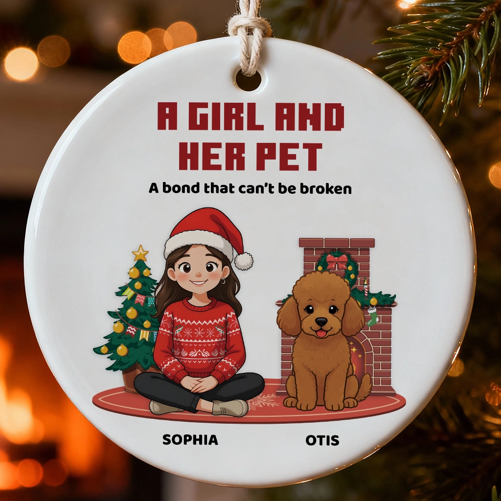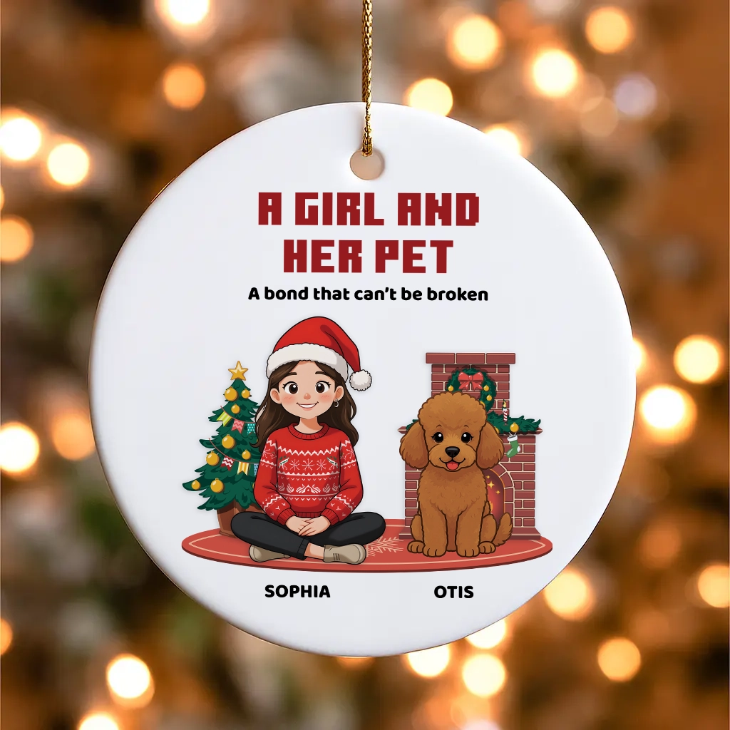 Custom Pet Memorial Ornament, A Girl and Her Pet Christmas Keepsake, Custom Dog Name Ceramic Gift, Dog Lovers Holiday Decor