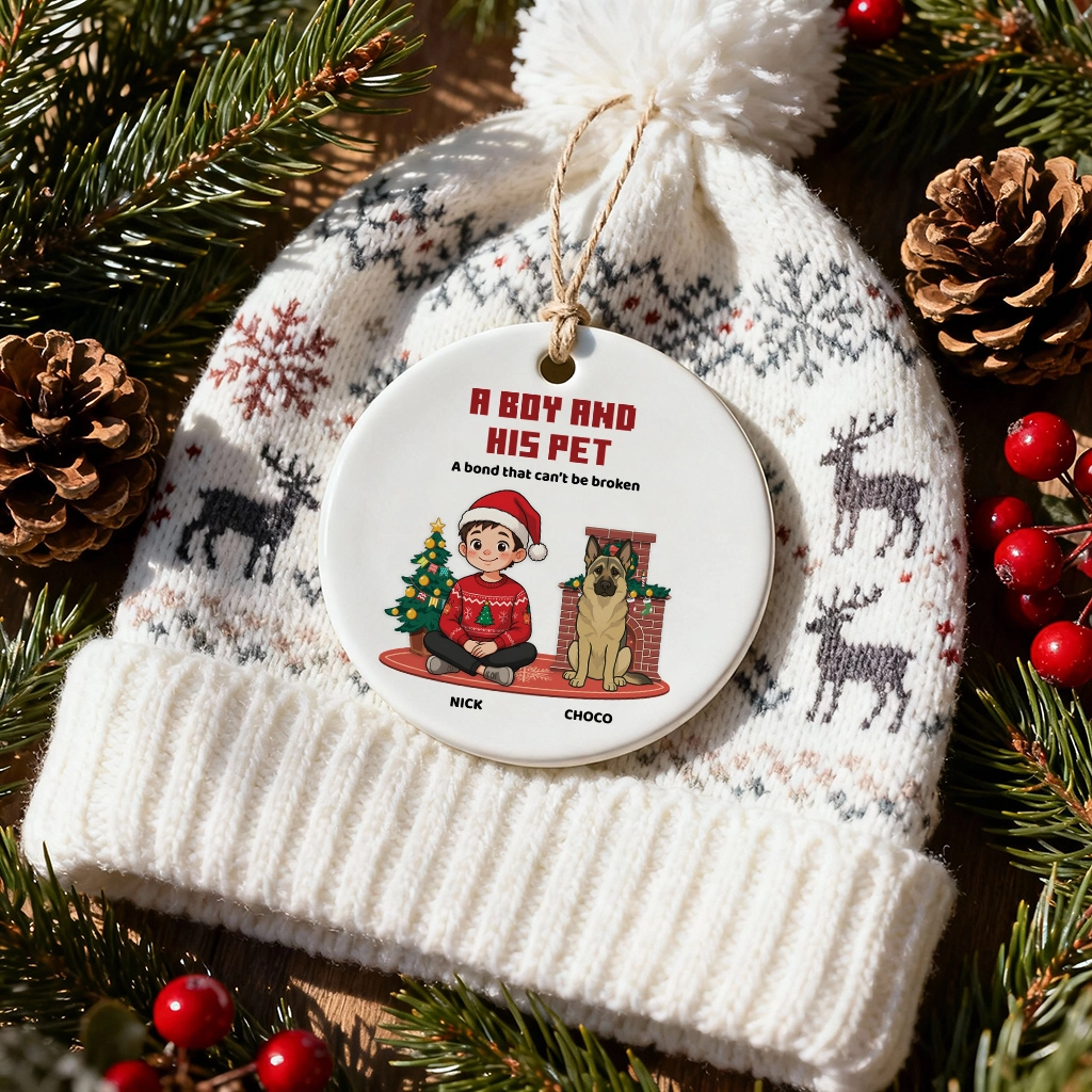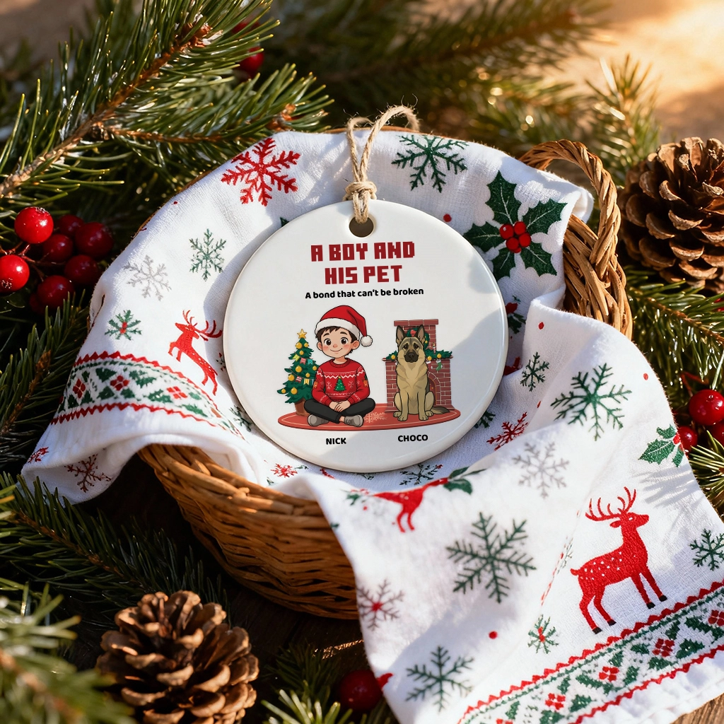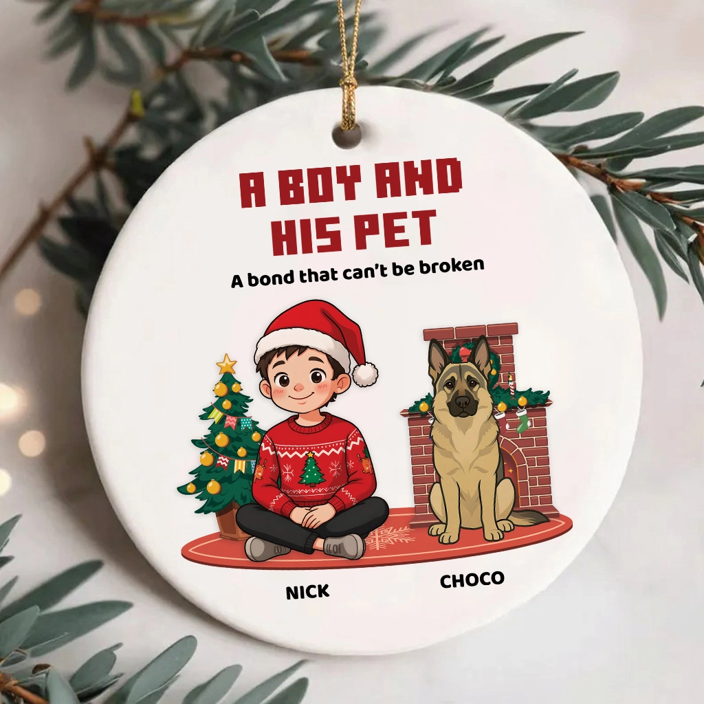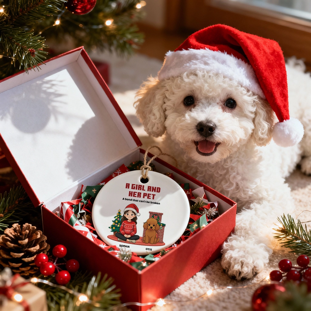 Custom Pet Memorial Ornament, A Girl and Her Pet Christmas Keepsake, Custom Dog Name Ceramic Gift, Dog Lovers Holiday Decor