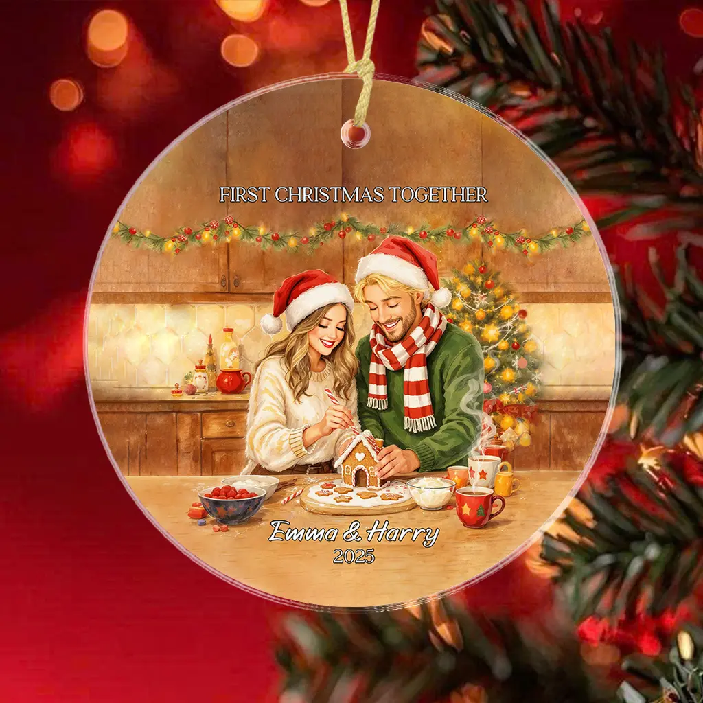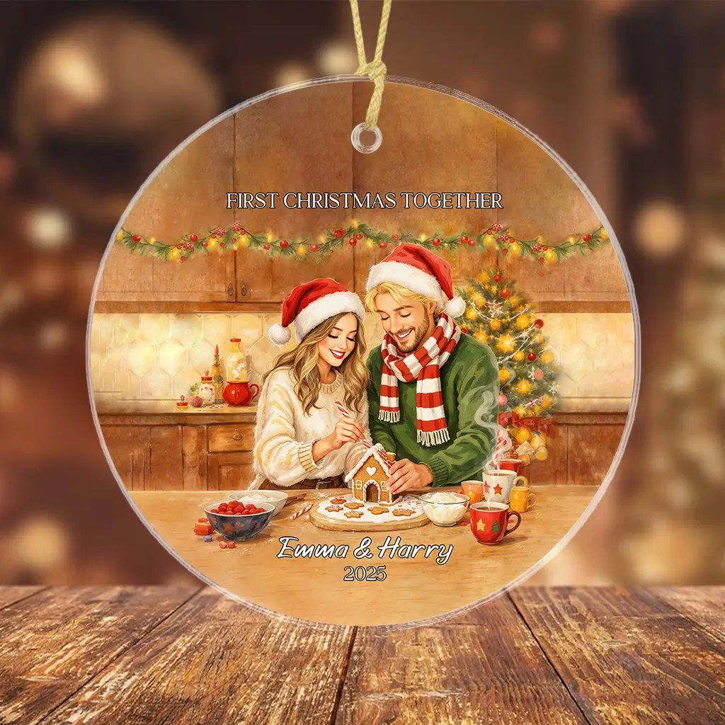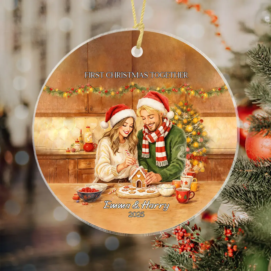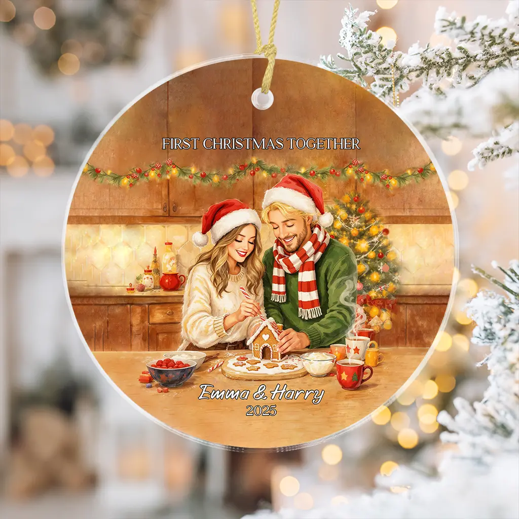 Custom Portrait Soulmate Ornament | Personalized “Hot Cocoa” Winter Comfort Keepsake | Relationship Milestone Gift