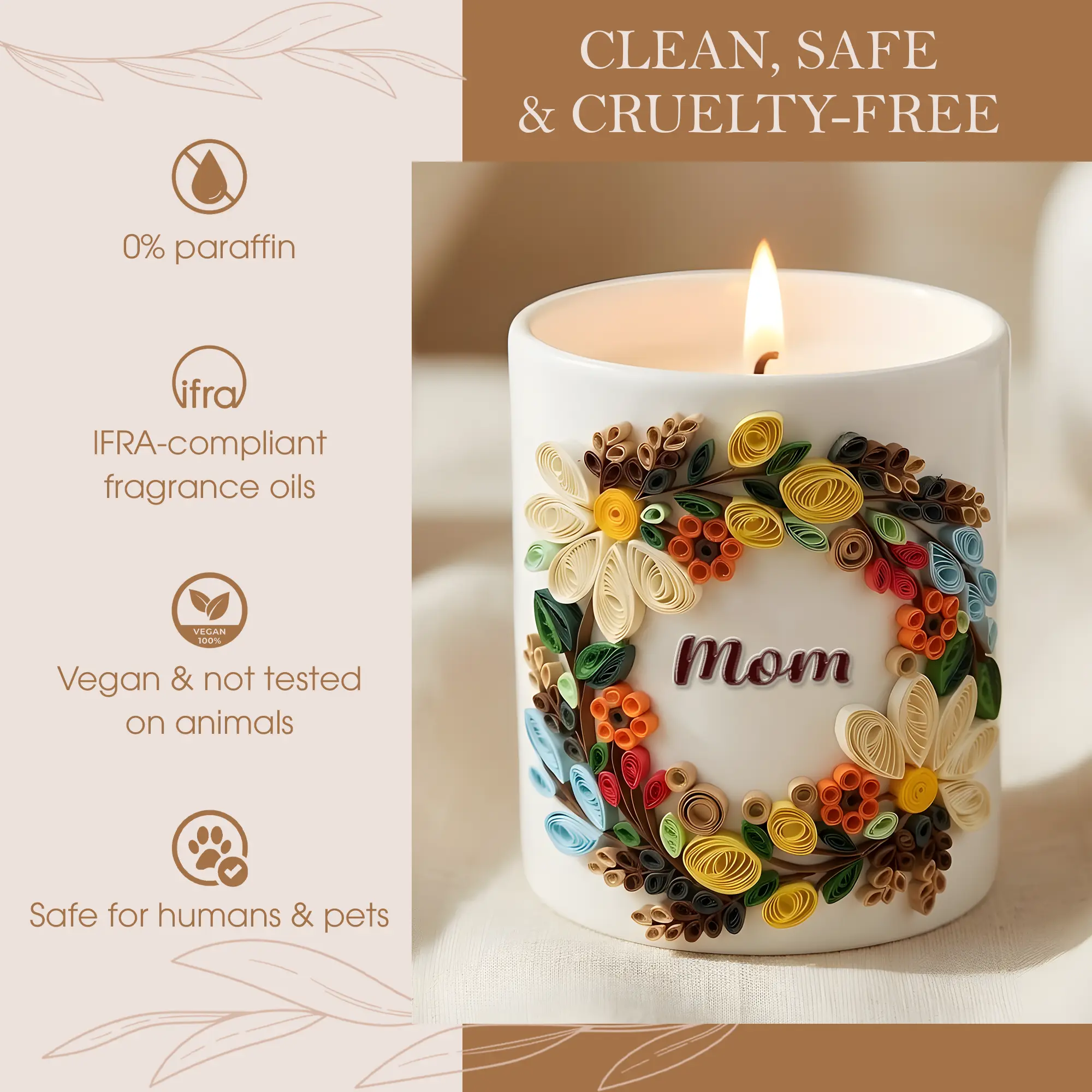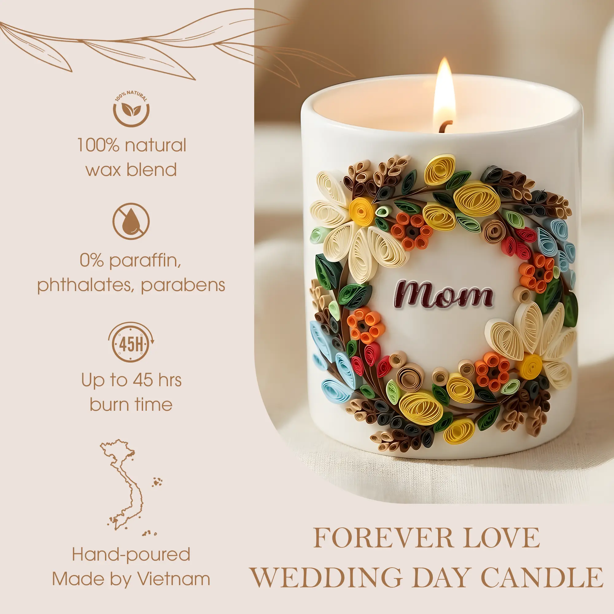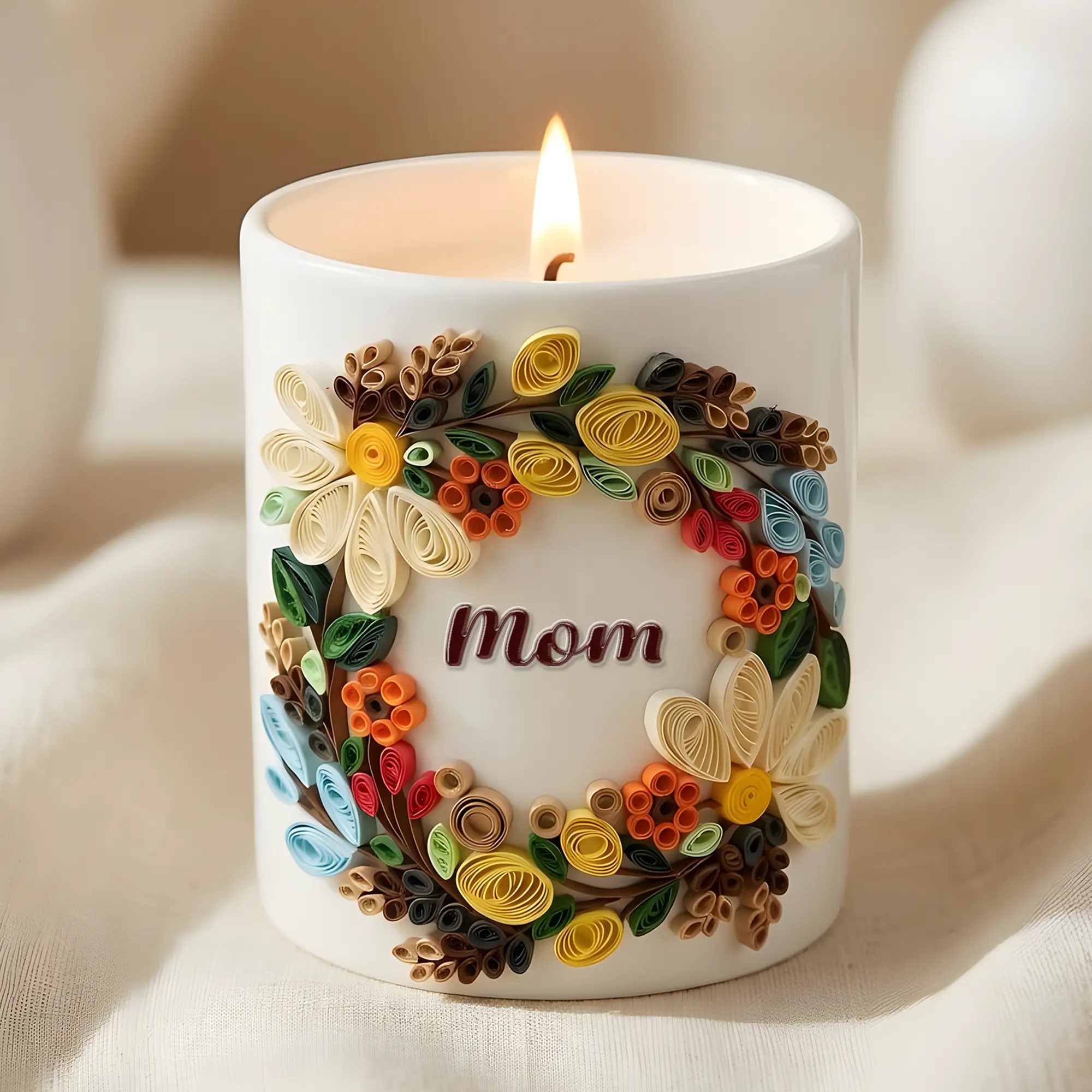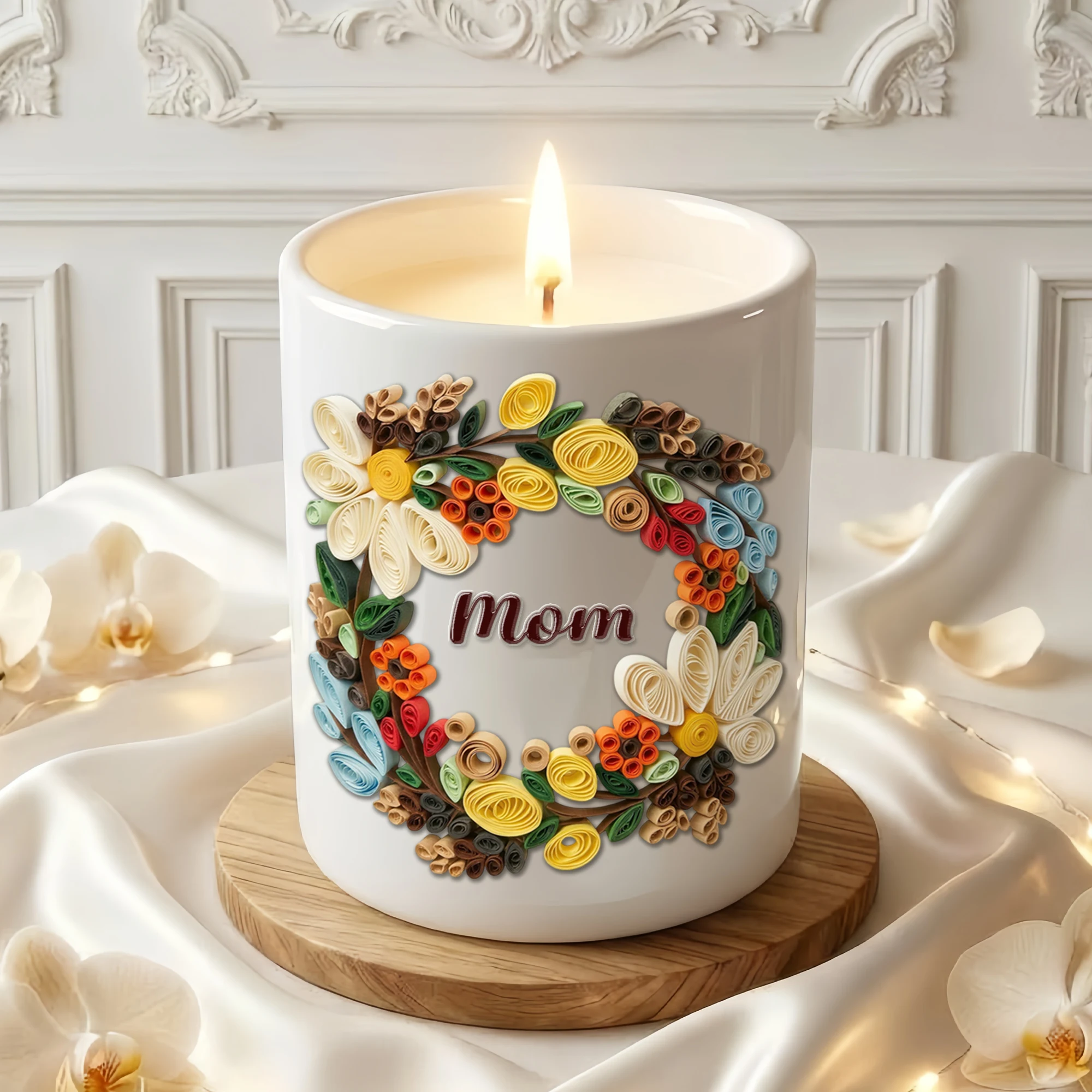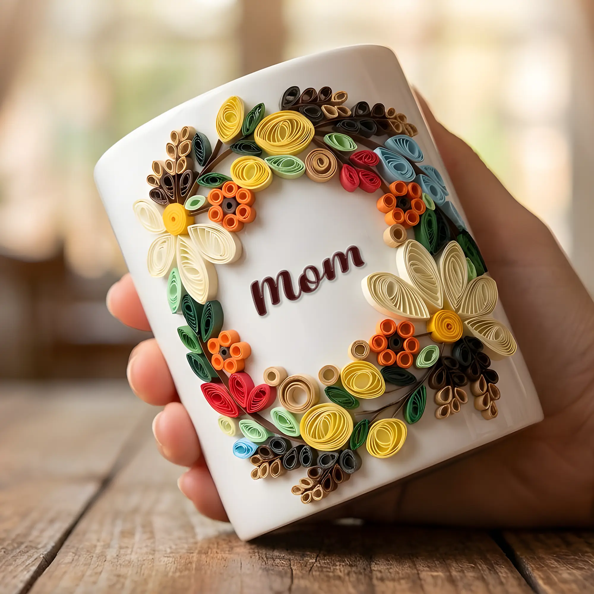 Custom Quilling Art Mug for Mom – Handmade 3D Floral Coffee Cup – Personalized Mother’s Day Gift – Birthday Gift for Mom