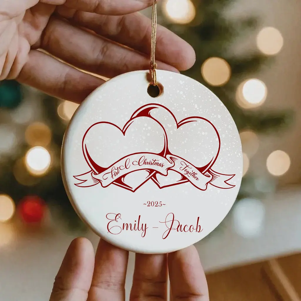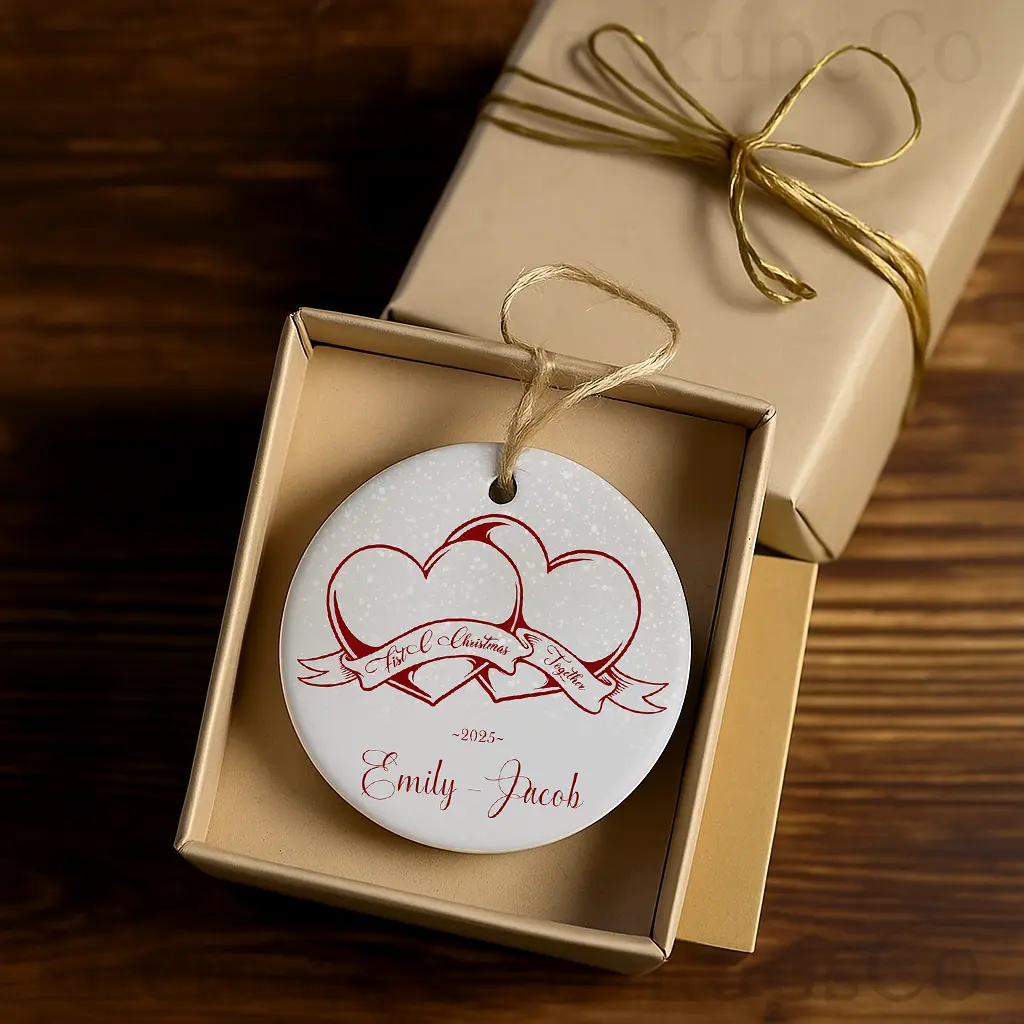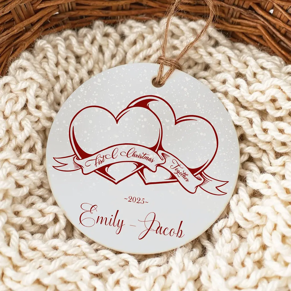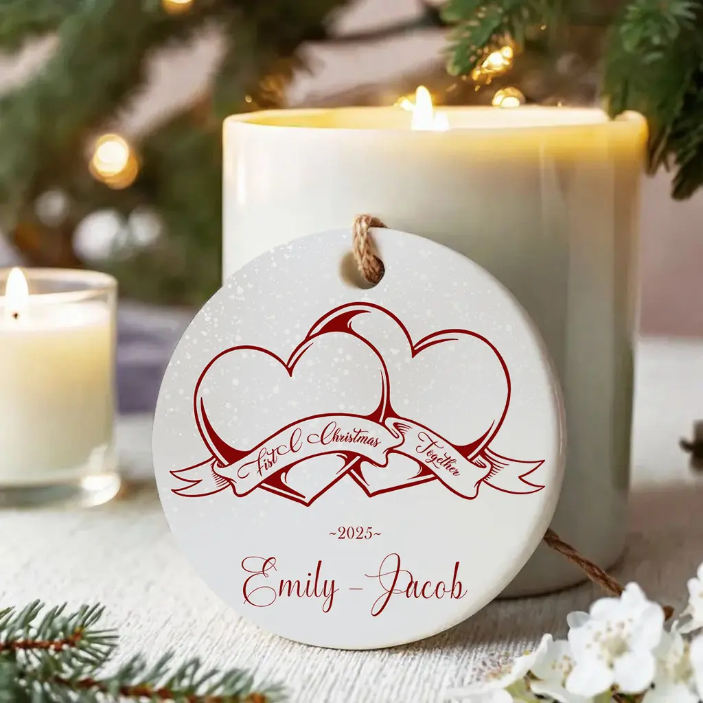 Custom Text Heart Couple Keepsake | Personalized Wedding Anniversary Ornament | Round Ceramic Milestone Gift