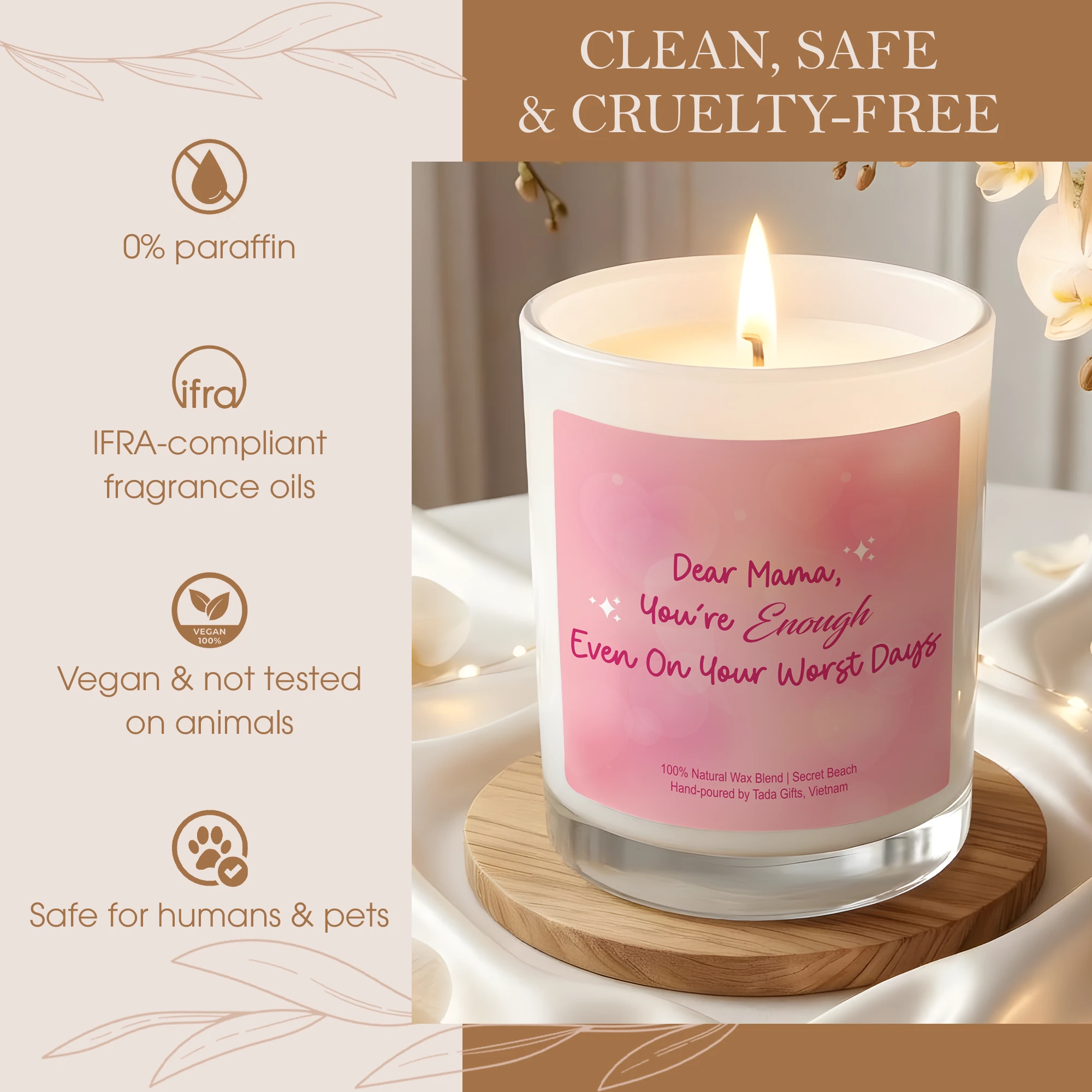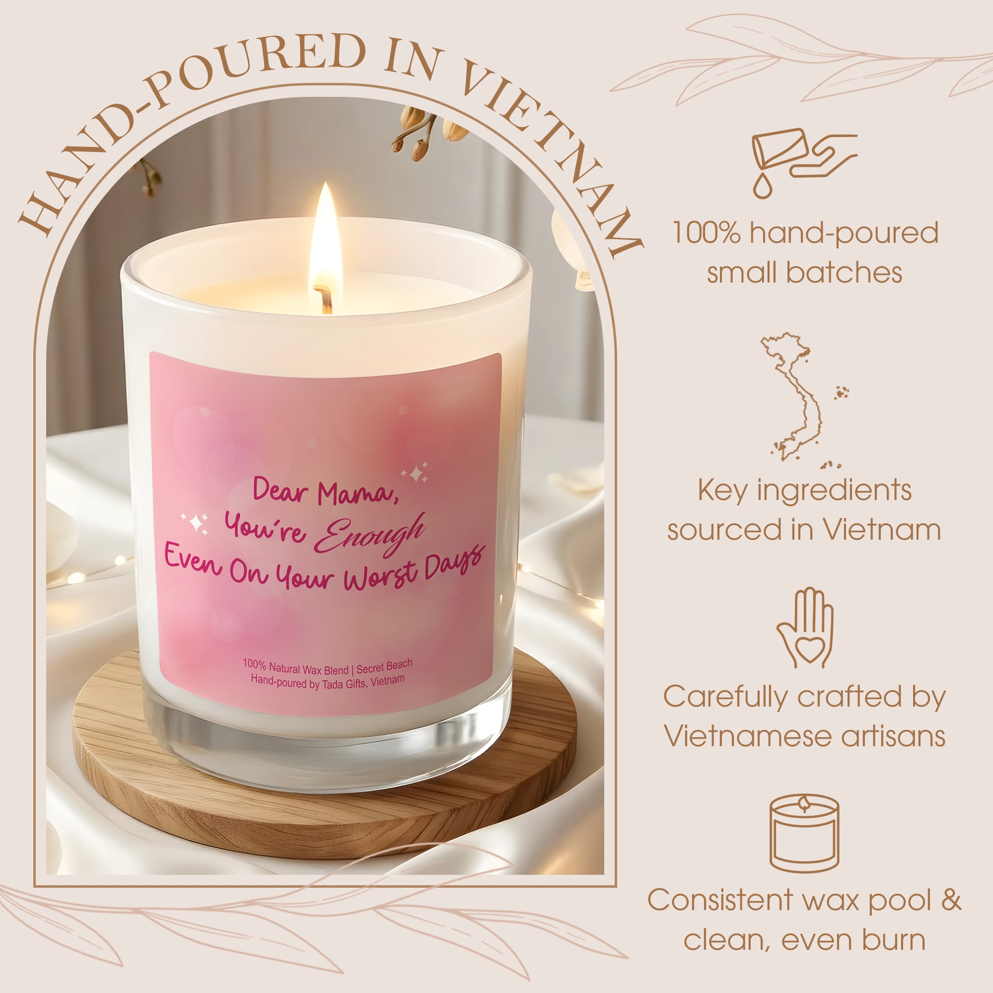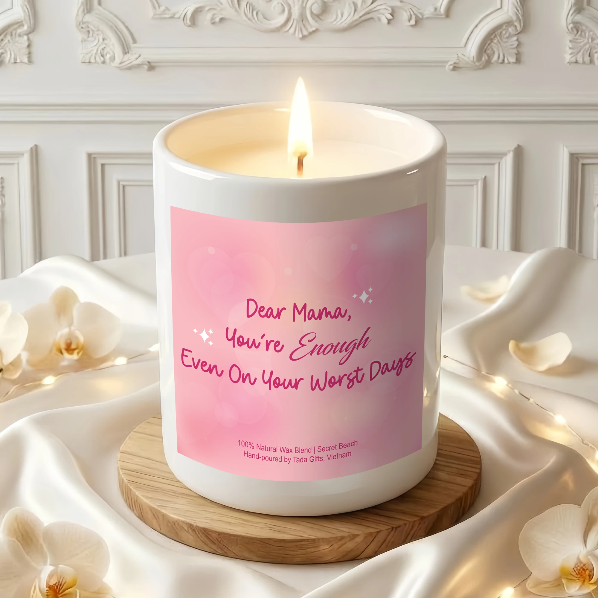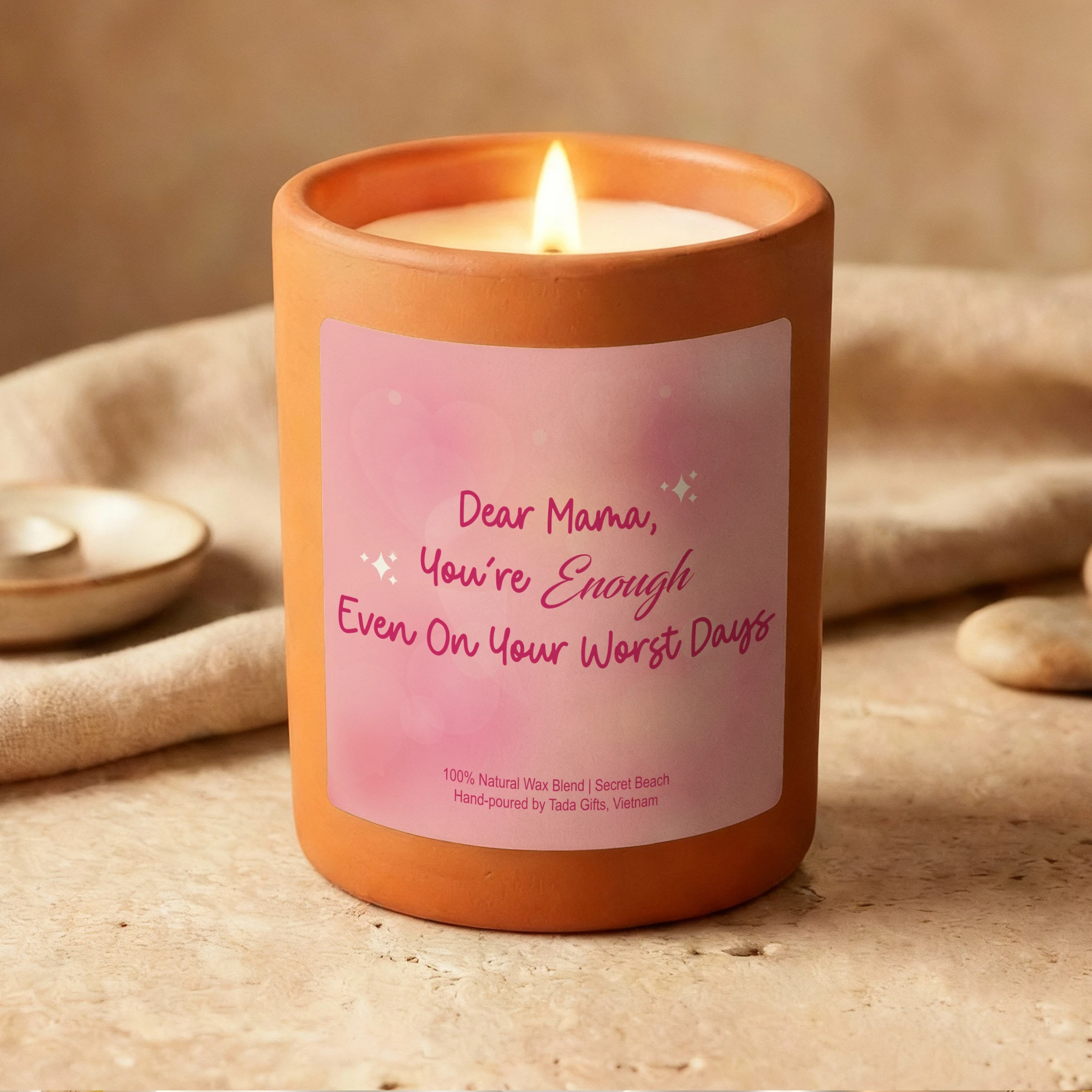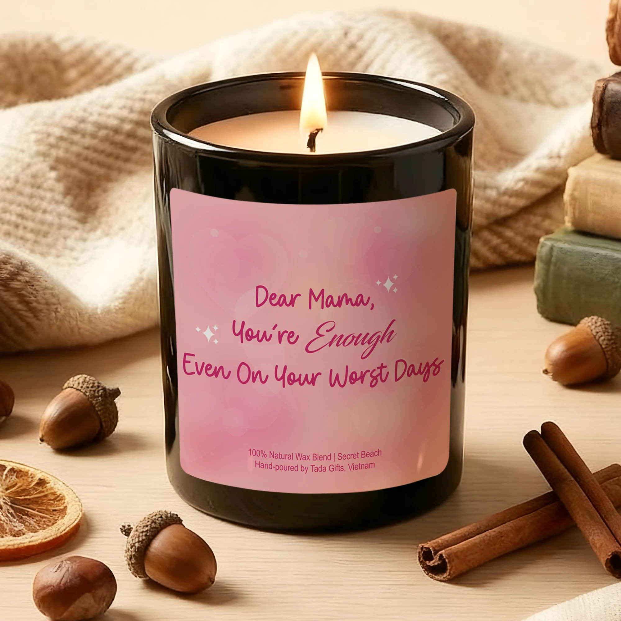 Dear Mama Candle – Mother’s Day Gift – “You’re Enough Even On Your Worst Days” – Postpartum Gift for New Mom – Pink Scented Candle