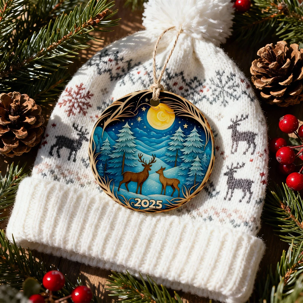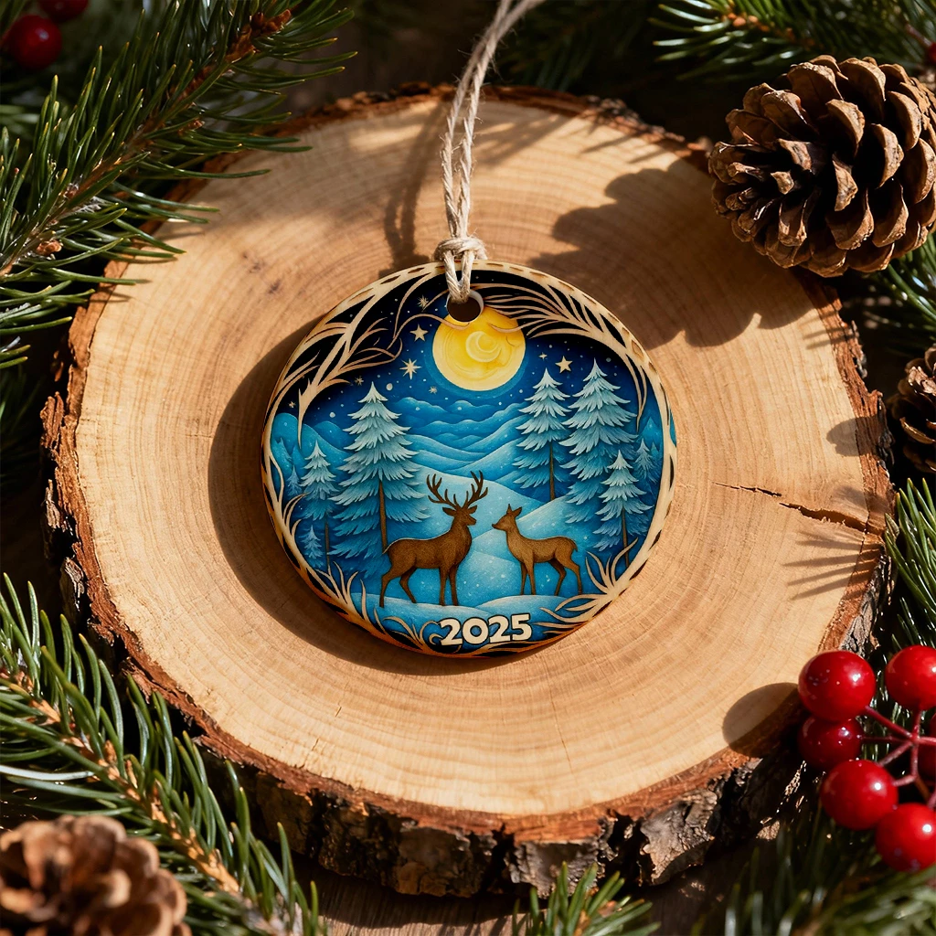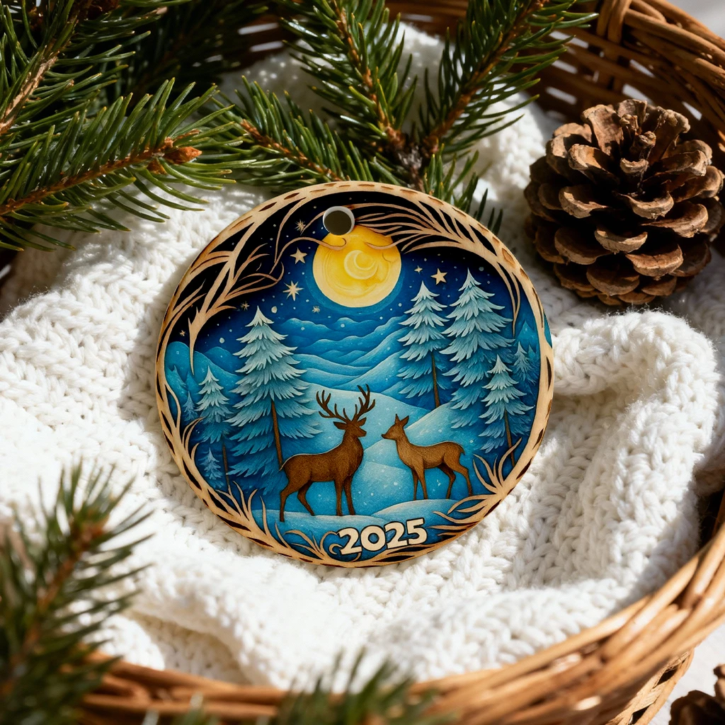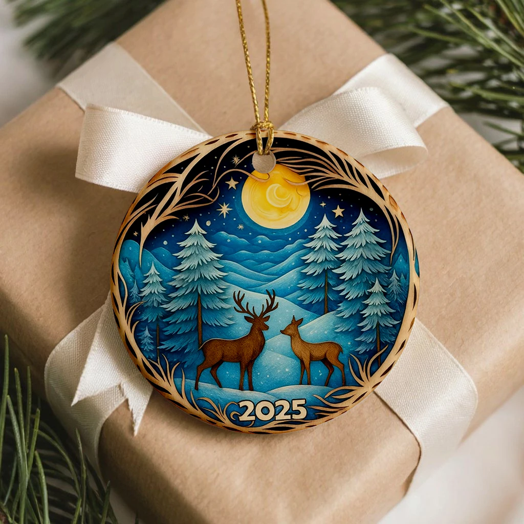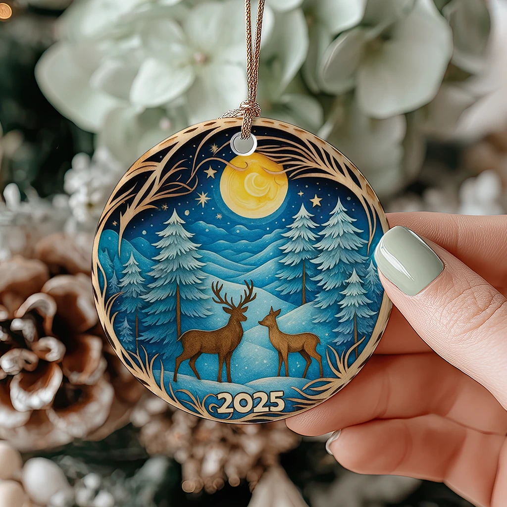 Deer in Winter Forest Ornament 2025, 3D Effect Christmas Decor, Heirloom Keepsake for Tree