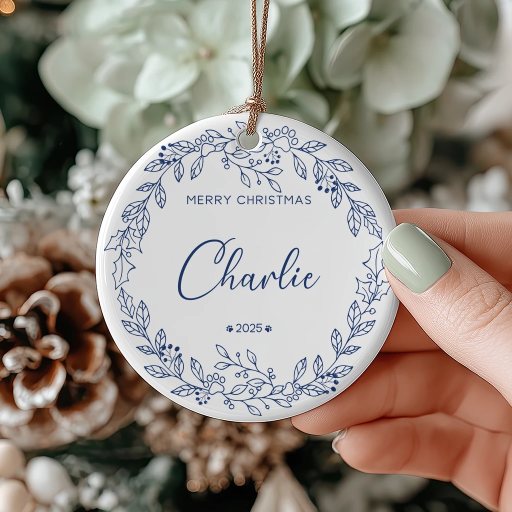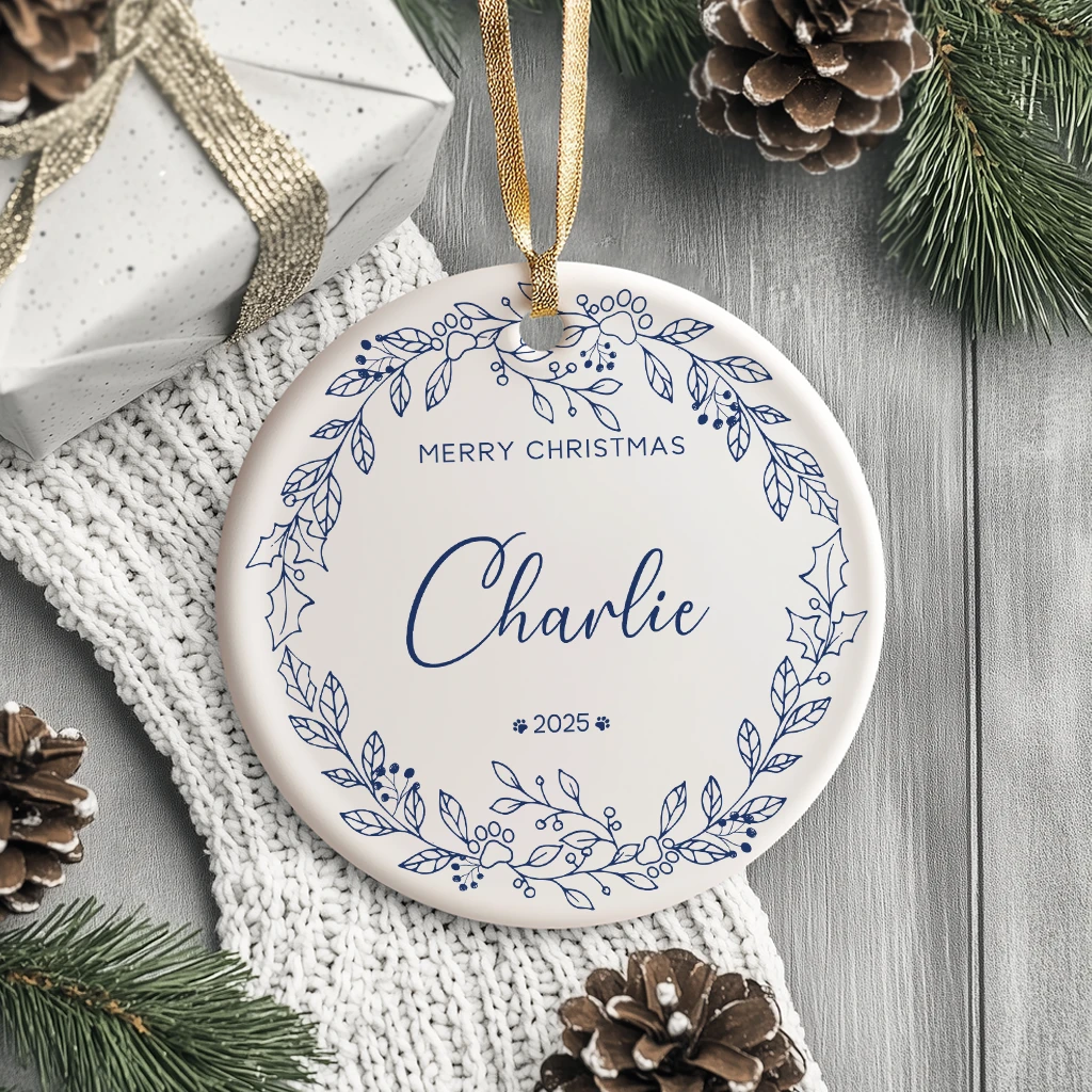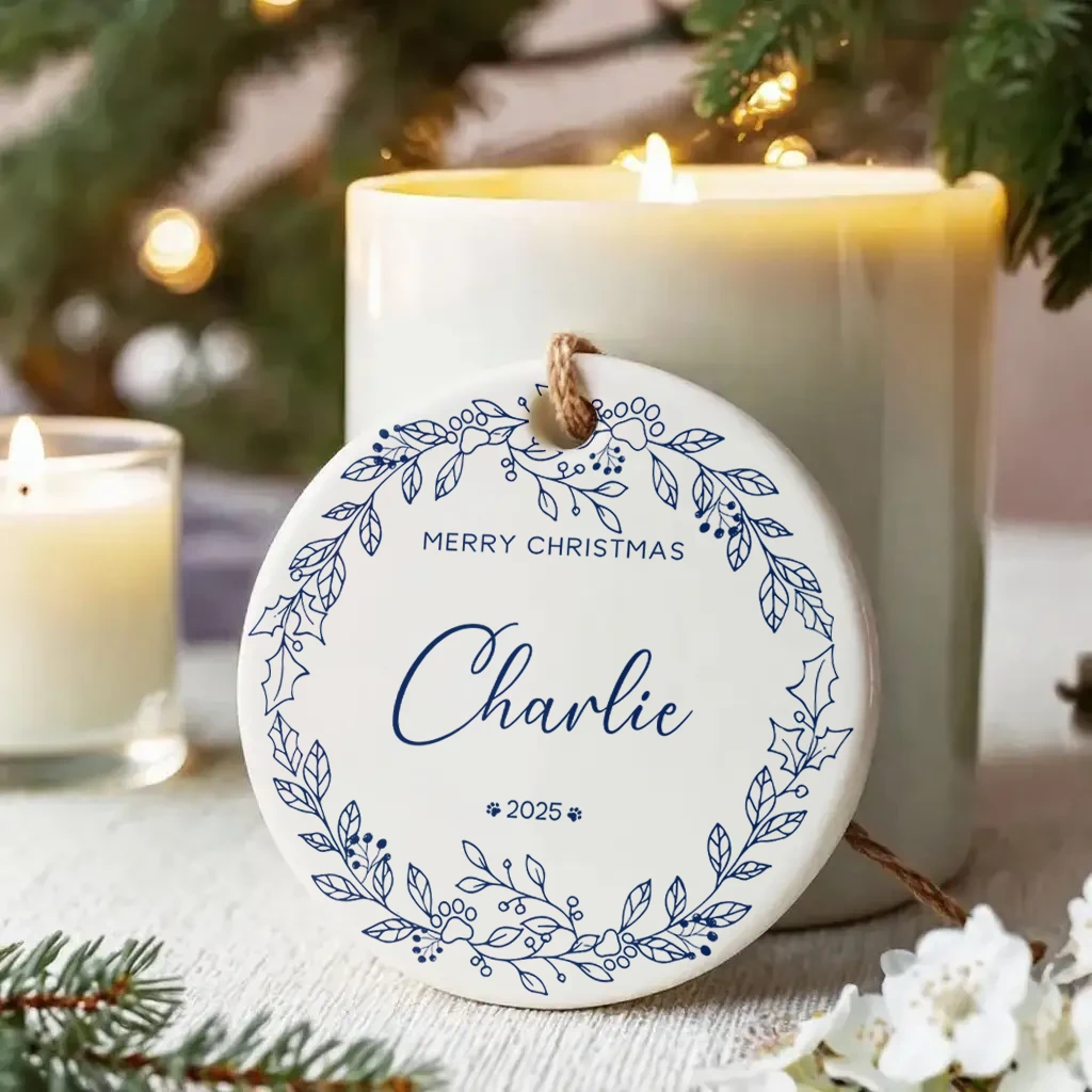 Elegant Merry Christmas Ceramic Ornament | Classic Holiday Gift 2025 | Unique Decoration for Dog Lovers