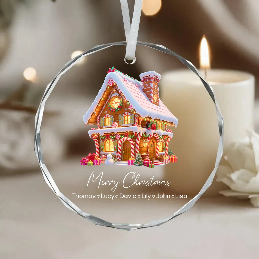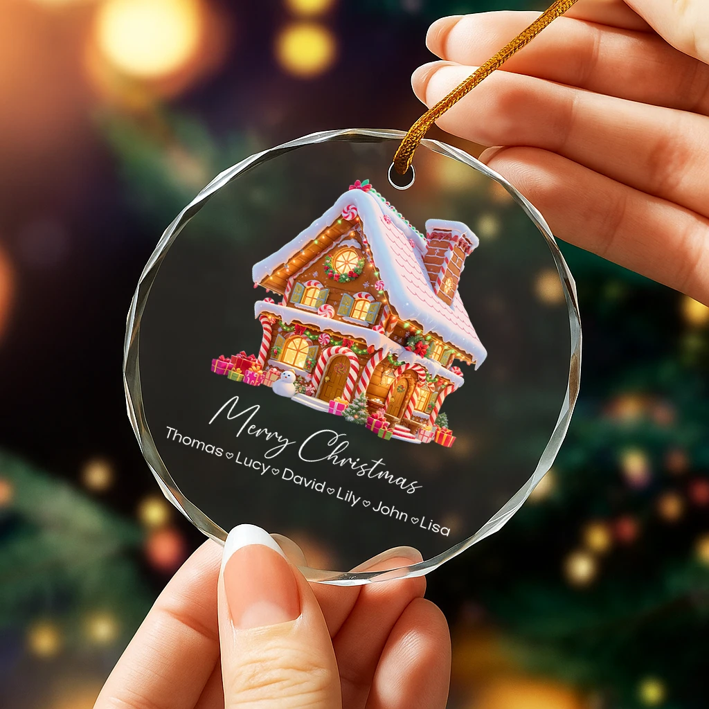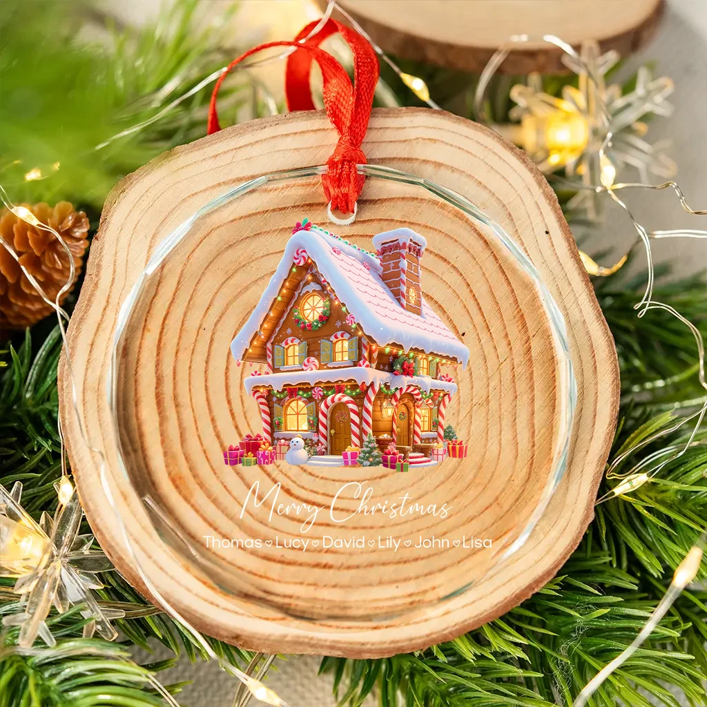 Family Name Keepsake Ornament – Detailed Gingerbread Cottage Decor – Custom List of Names
