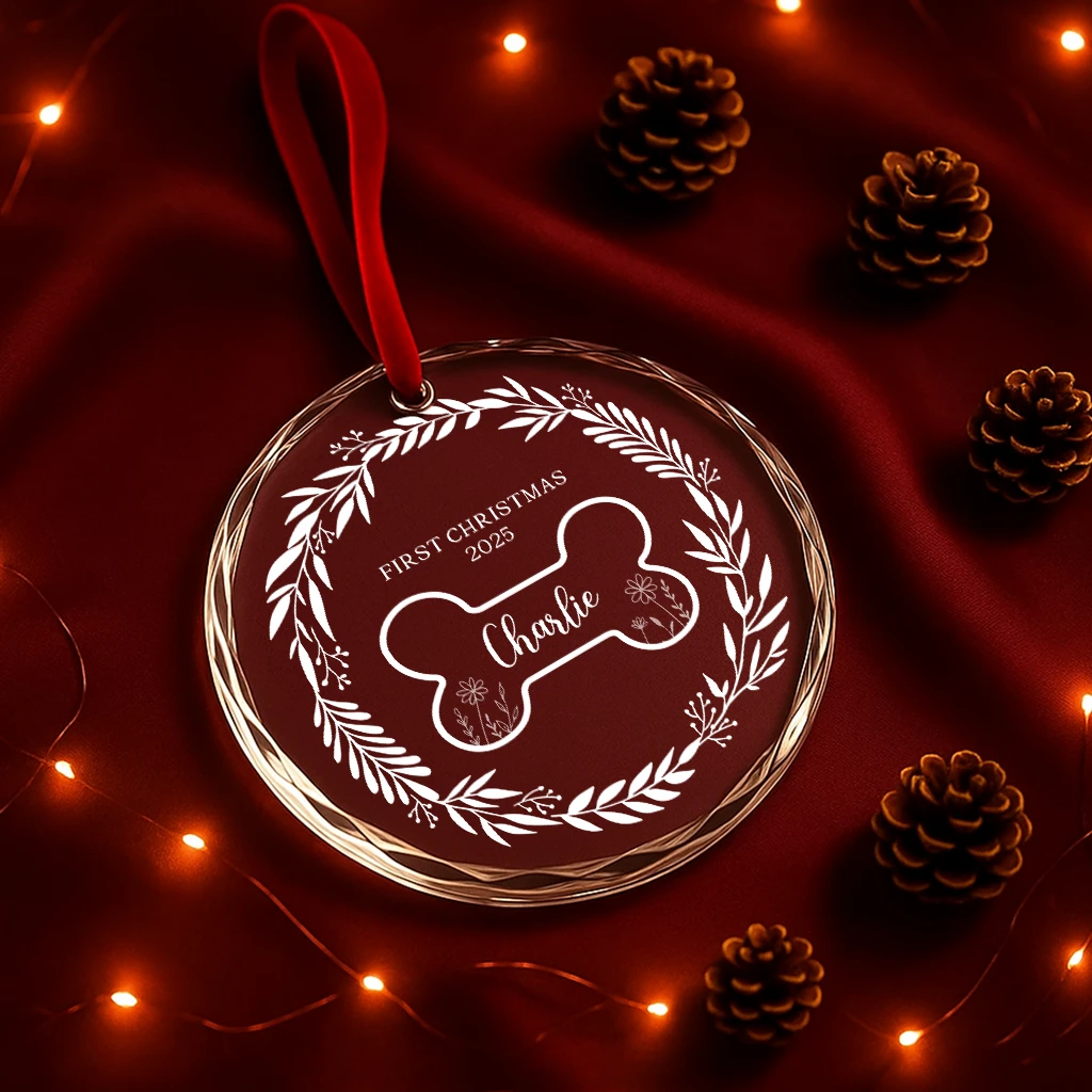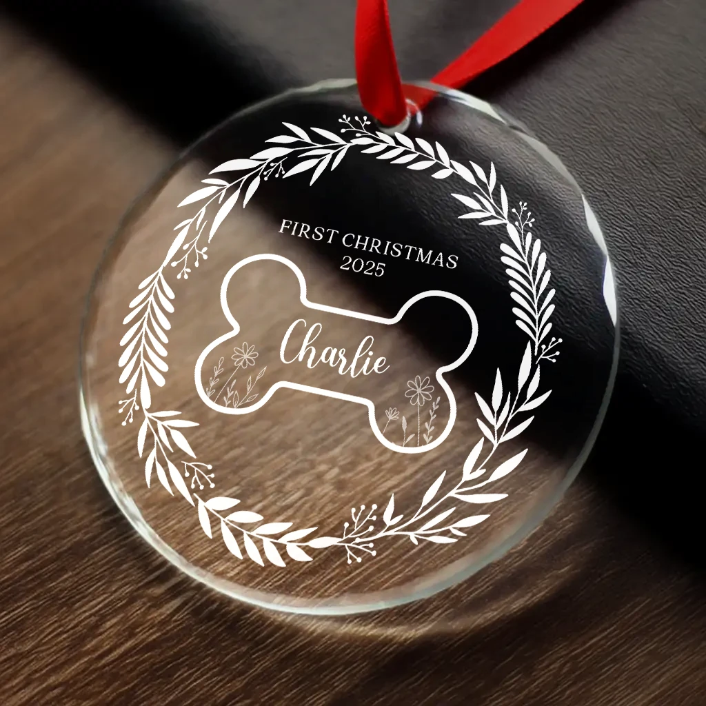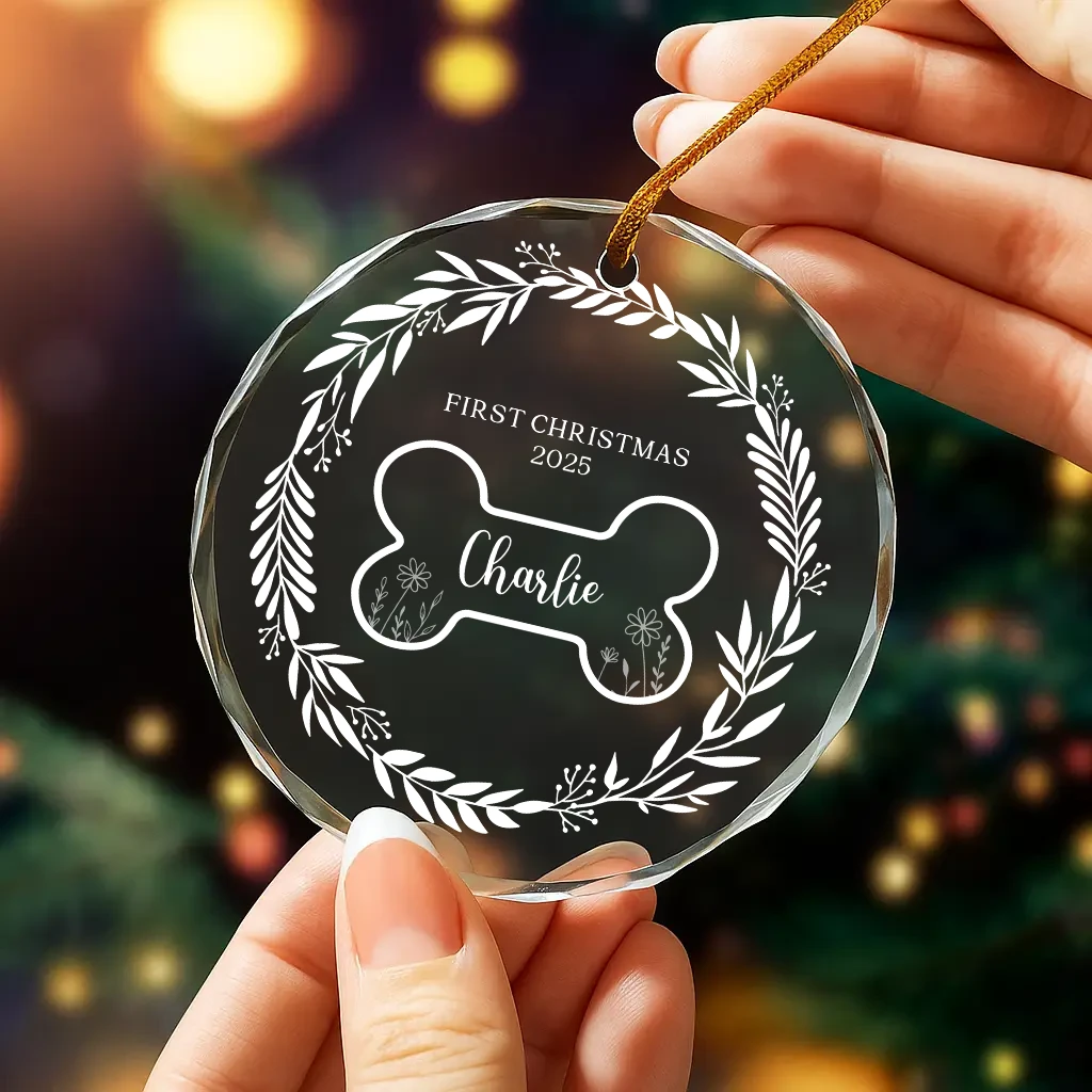 First Christmas Dog Bone Glass Ornament | Personalized Pet Name | Minimalist Bone Design