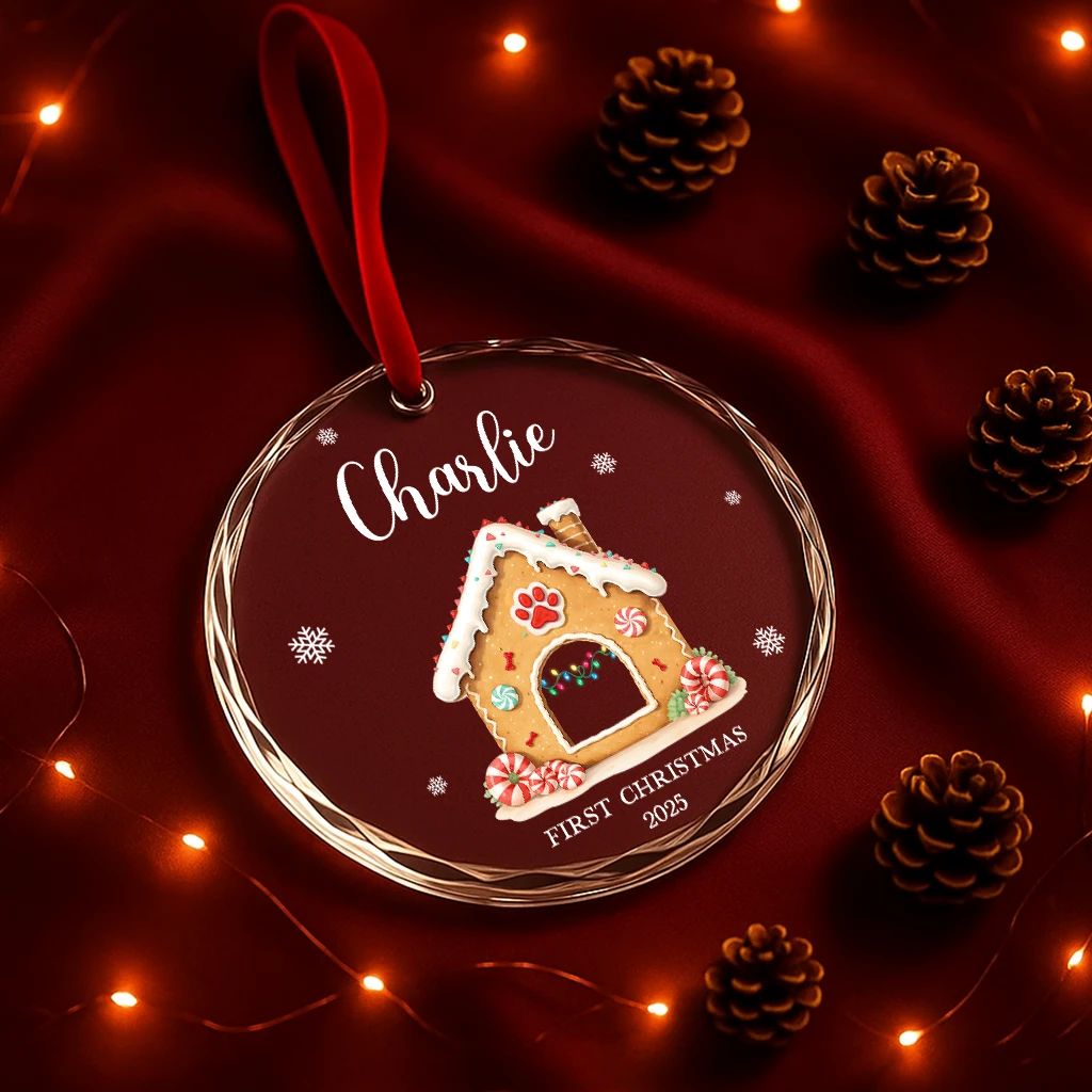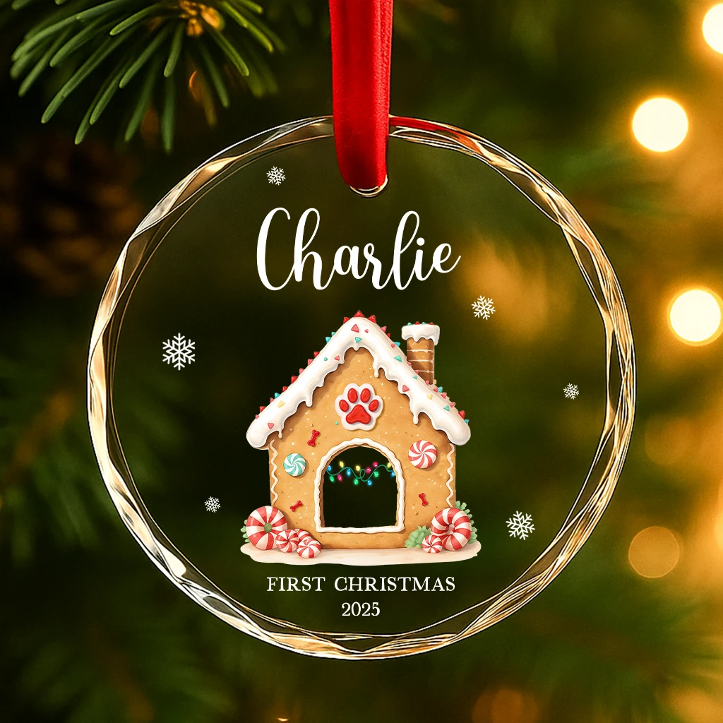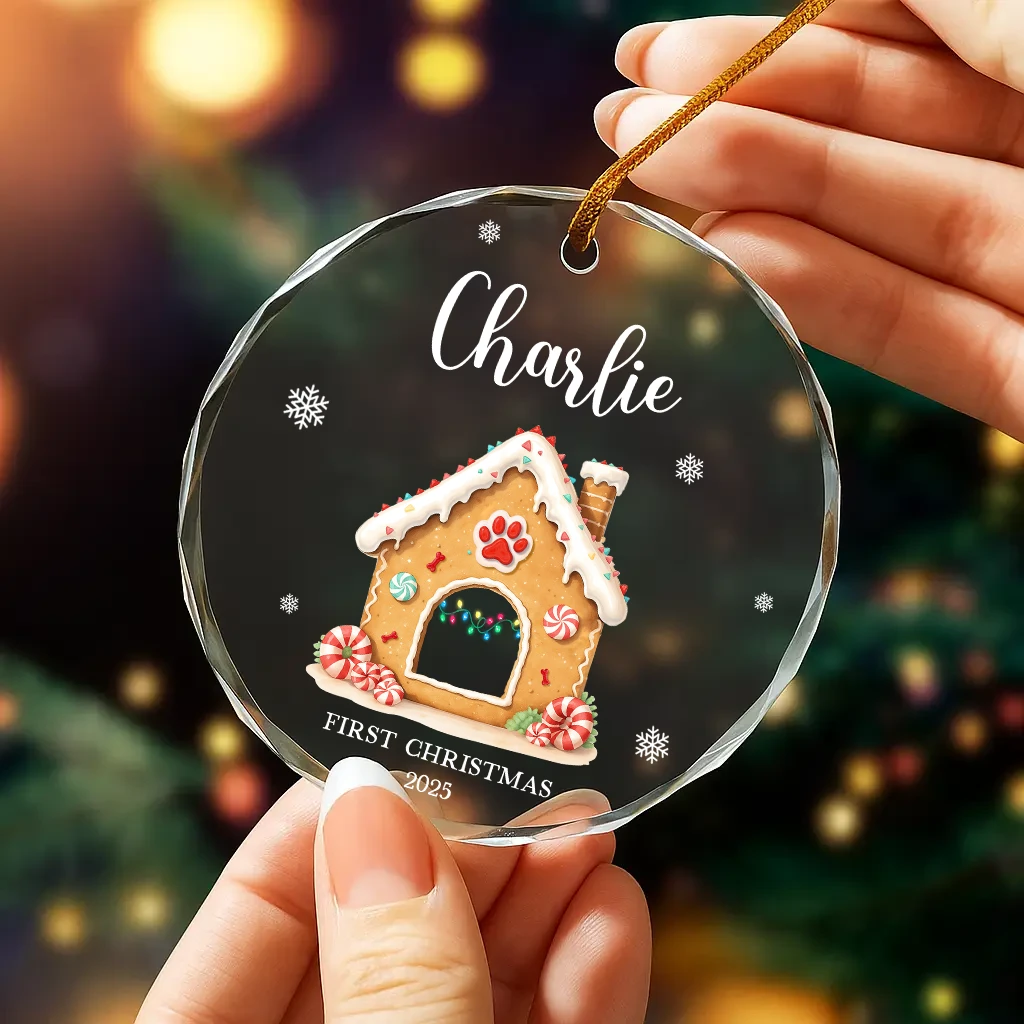 Custom First Christmas Dog House Glass Ornament | Personalized Name & Breed Keepsake | Perfect Ornament for Pet Lovers