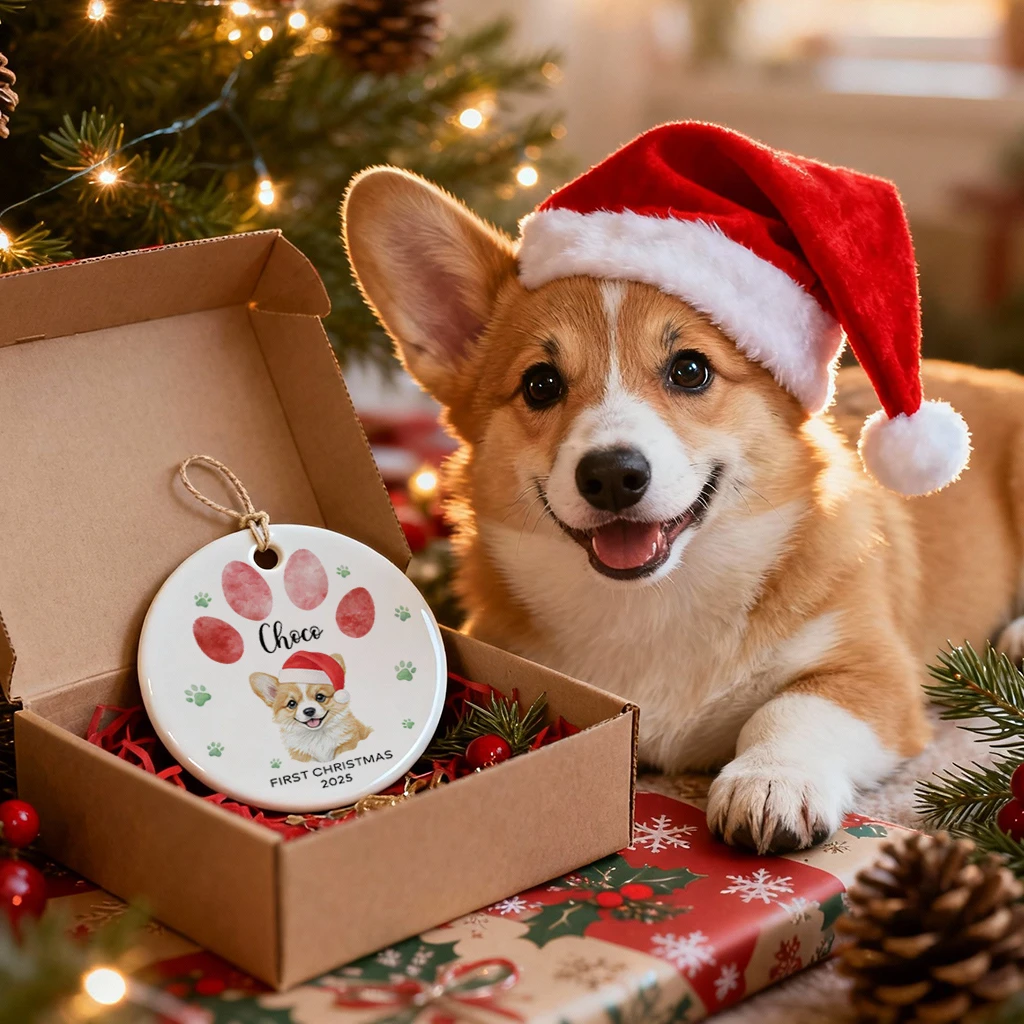 First Christmas Dog Paw Watercolor Ornament | Custom Photo 1st Christmas Ceramic Gift