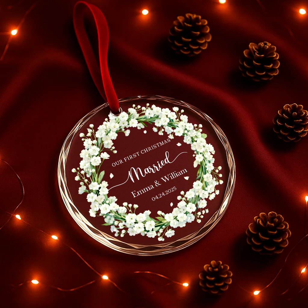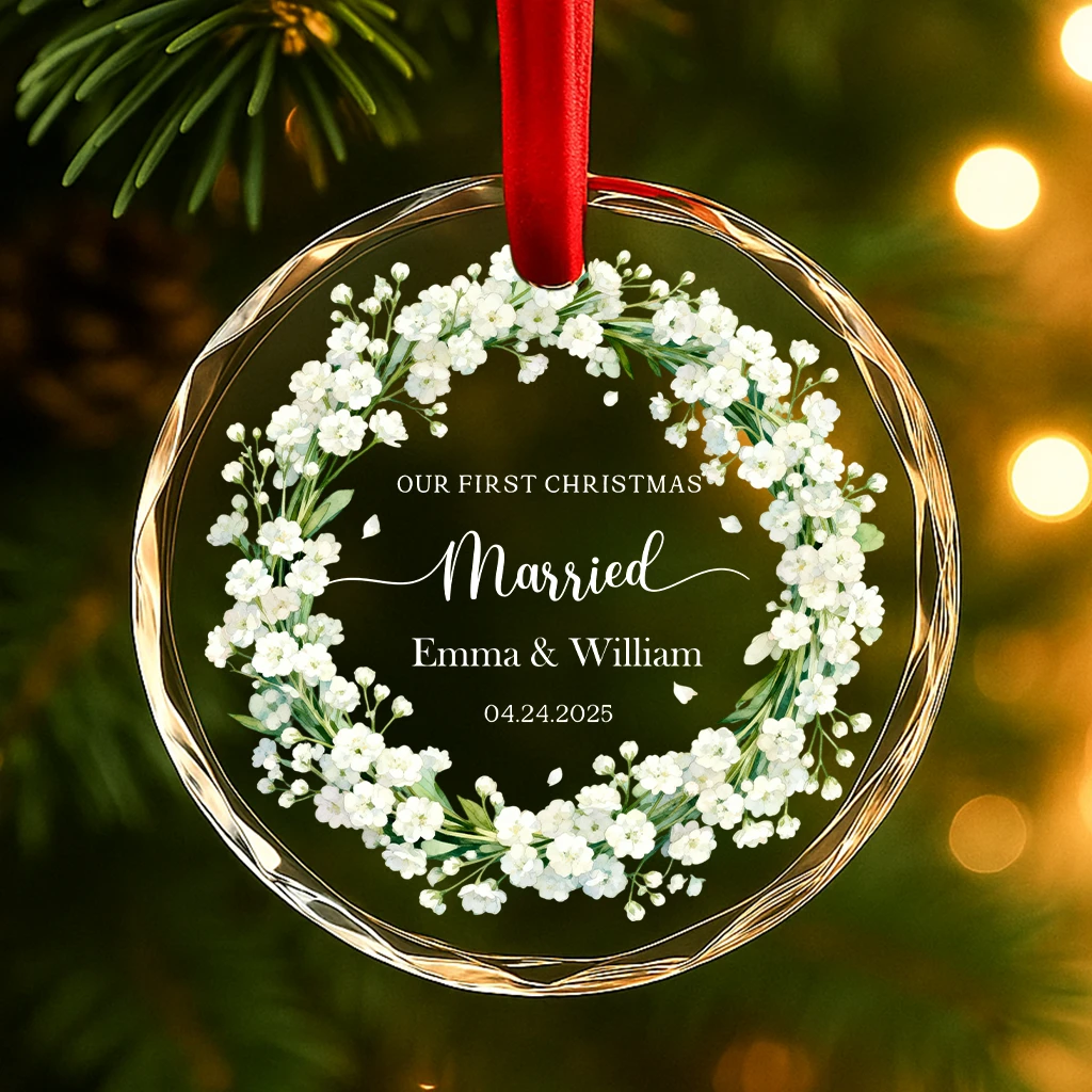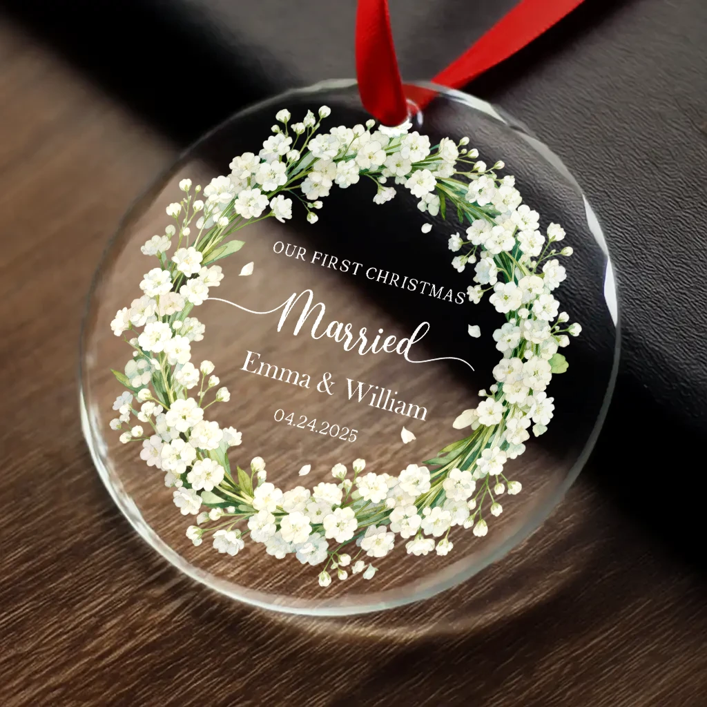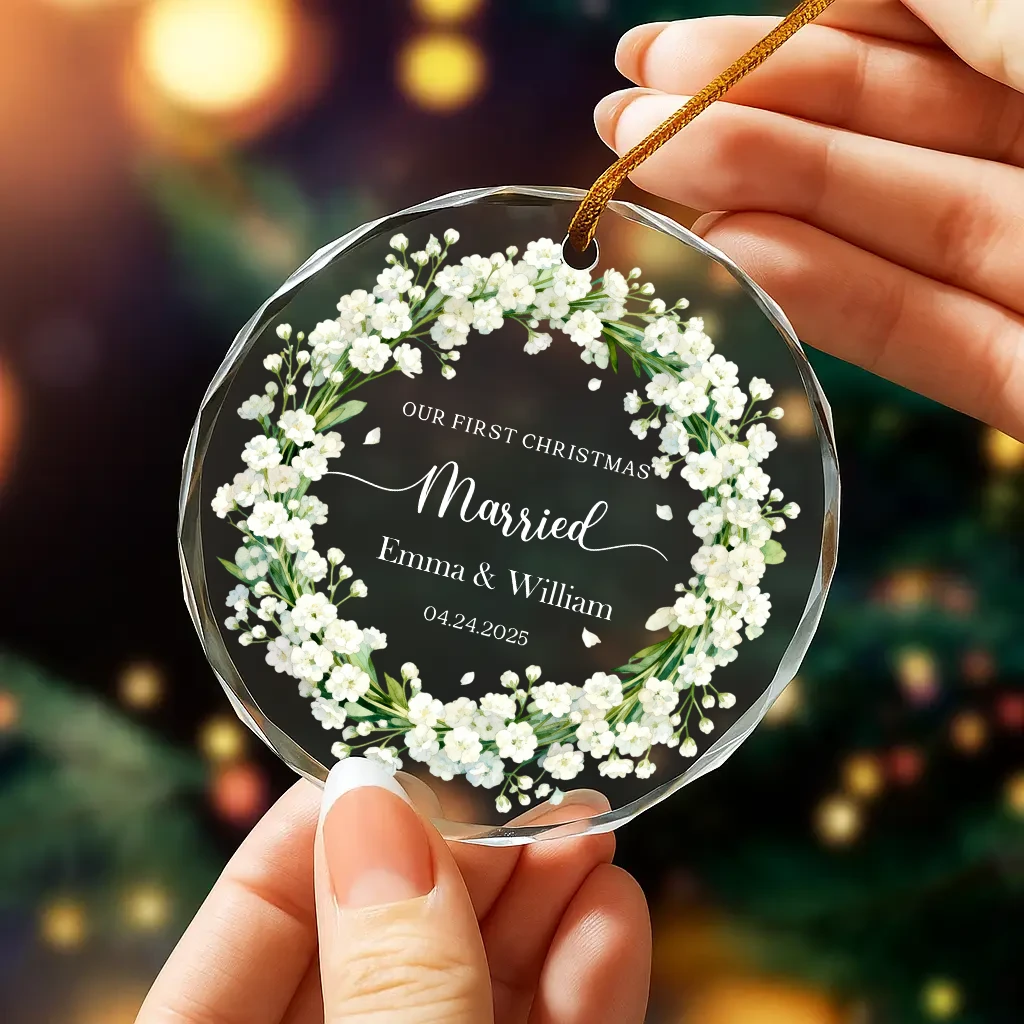 First Christmas Married Evergreen Glass Ornament | Personalized Newlywed Keepsake 2025 | Custom Names & Wedding Date