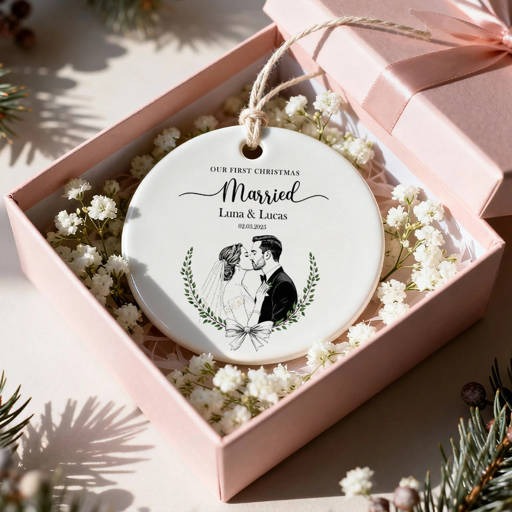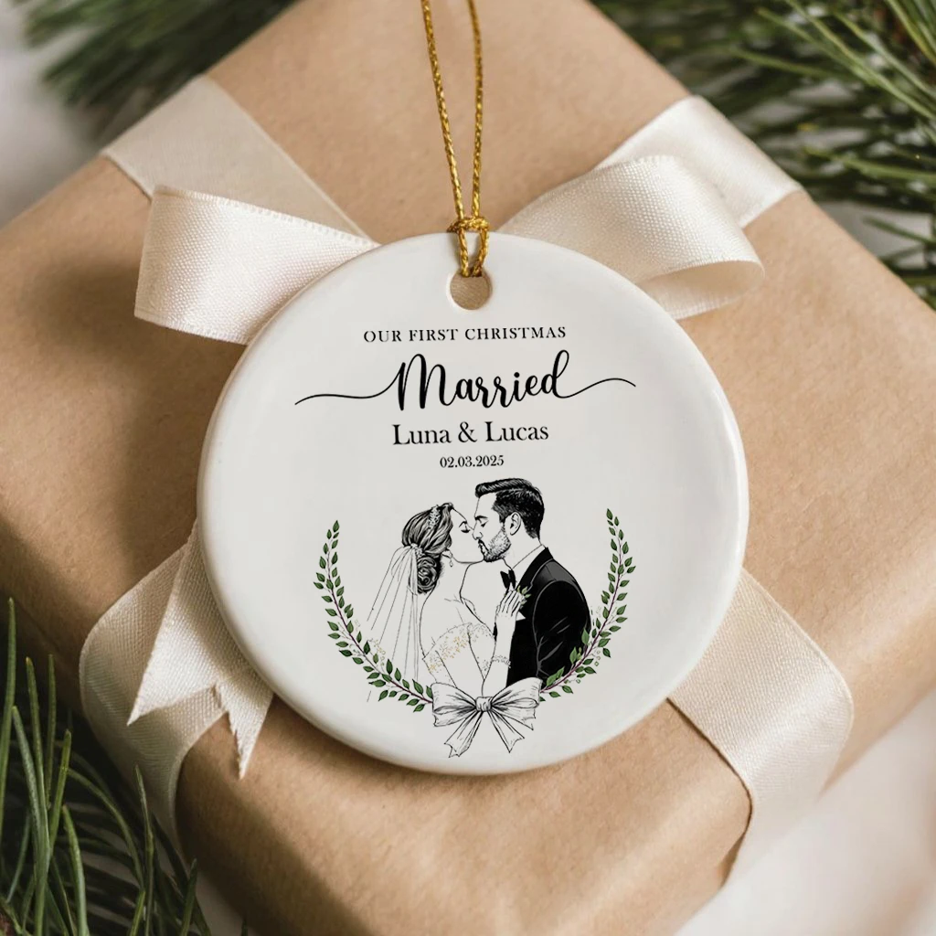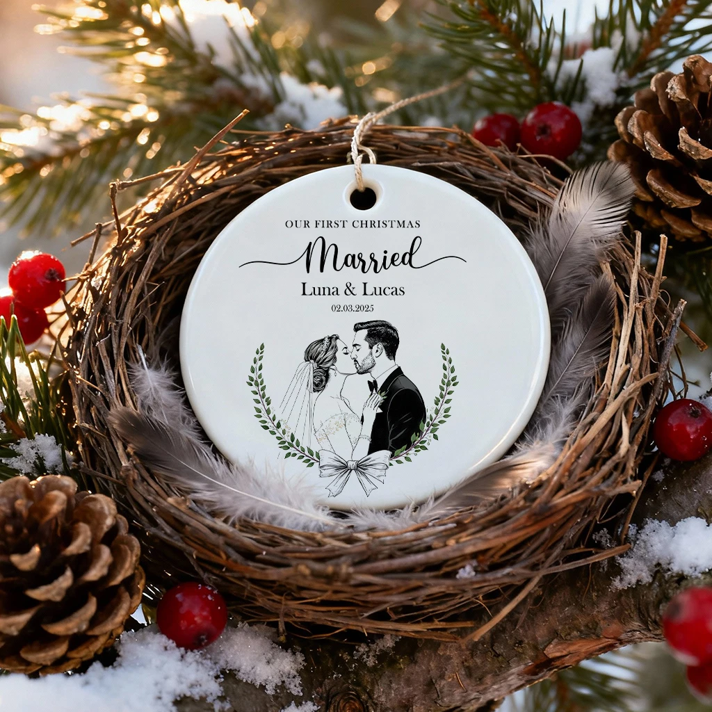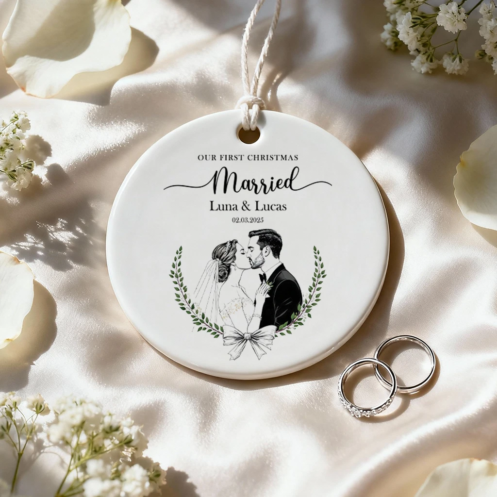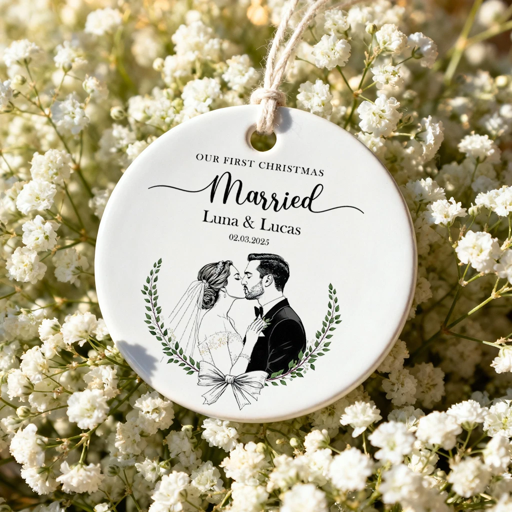 Custom First Christmas Married Mistletoe Ornament | Personalized Couple Gift | Romantic Watercolor Keepsake