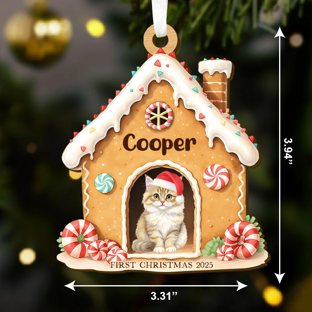 Custom First Christmas Pet Wooden Ornament| Cozy Pet House Watercolor Keepsake | Unique Gift for Pet Lovers