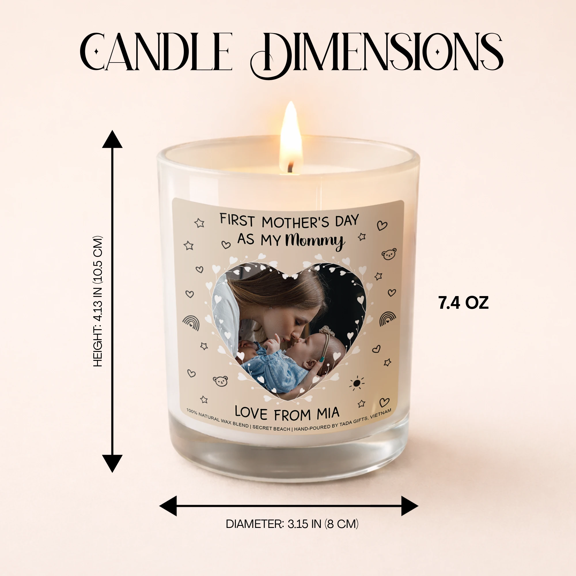 First Mother’s Day Gift From Baby, Personalized Photo Candle, New Mom Gift, Custom Mom Candle, First Mother Day Present, Gift From Daughter