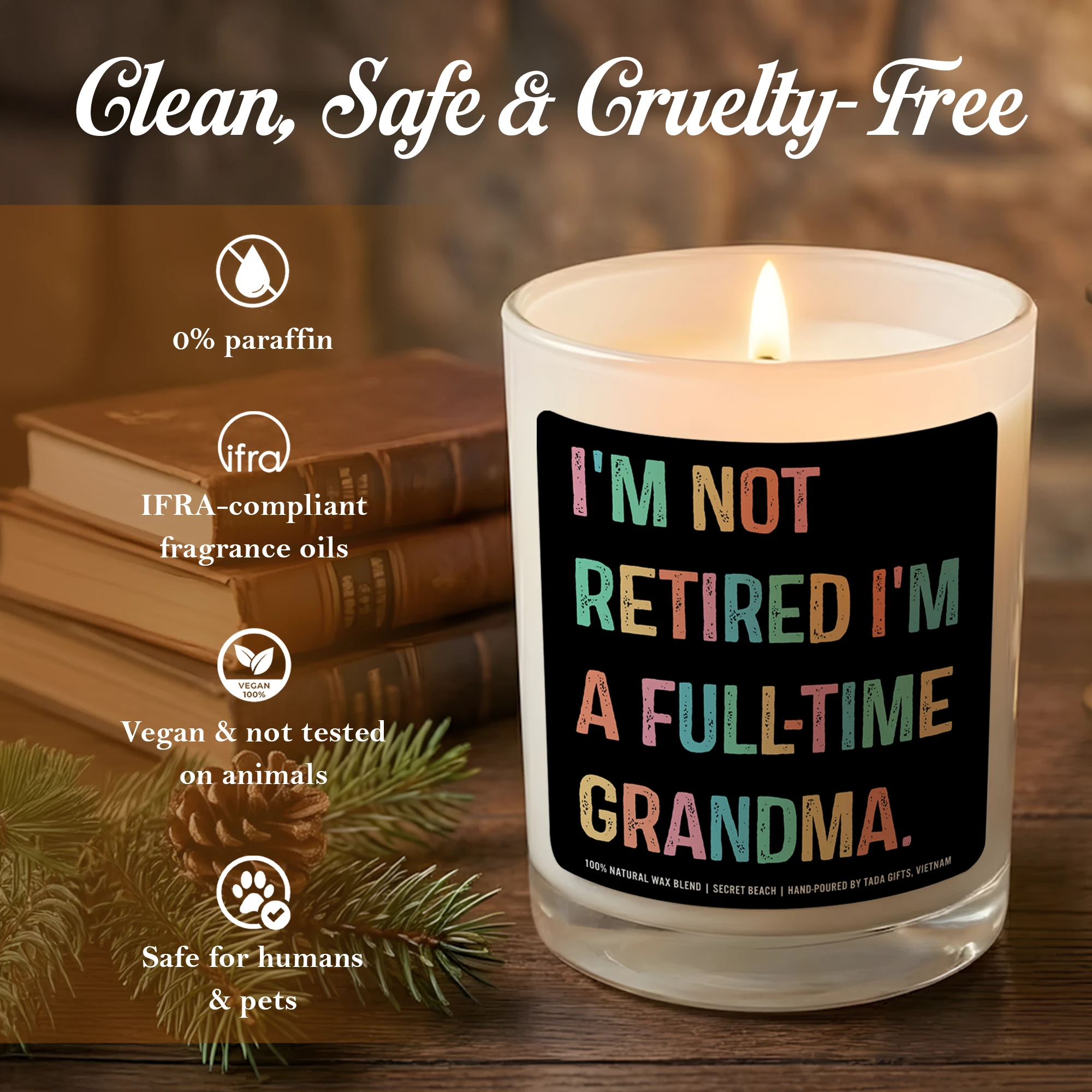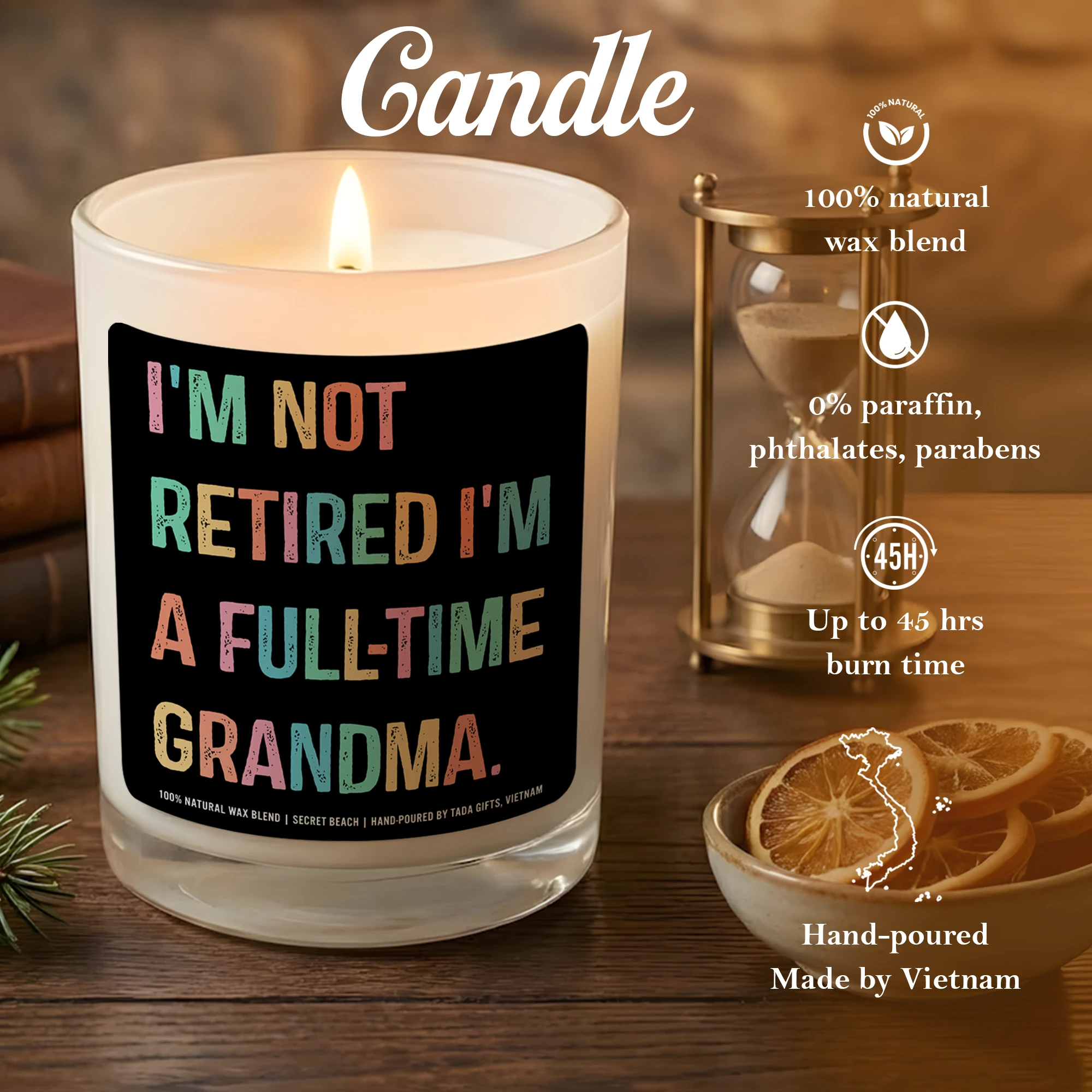 Full-Time Grandma Candle, Funny Retirement Gift for Grandma, Soy Wax Candle