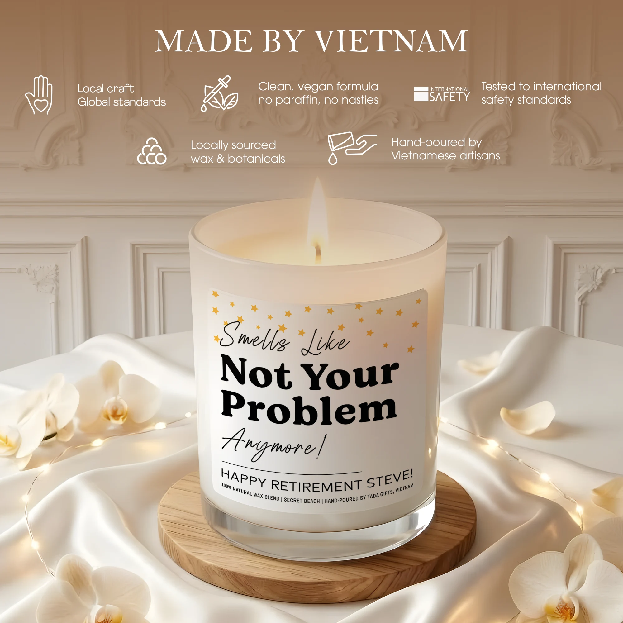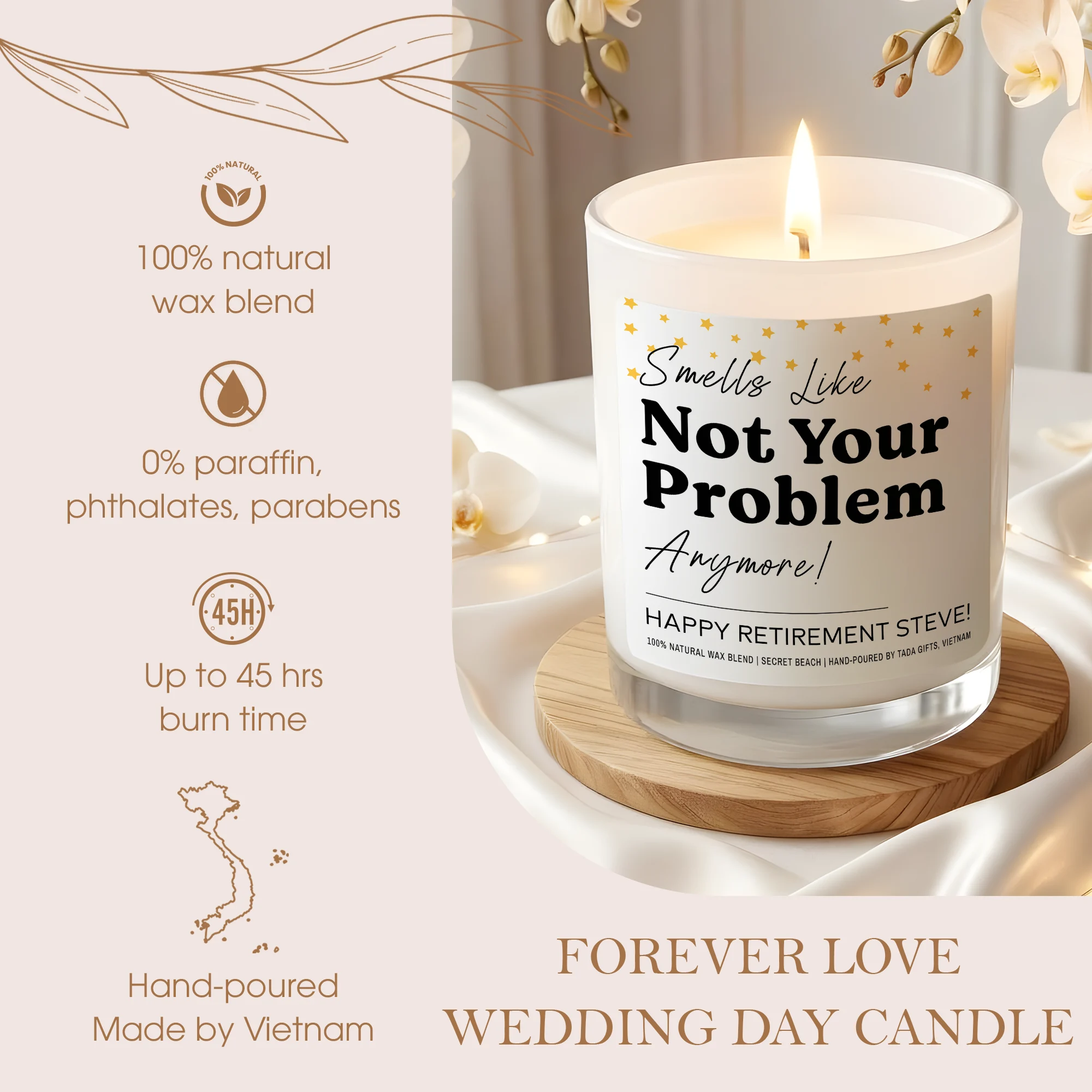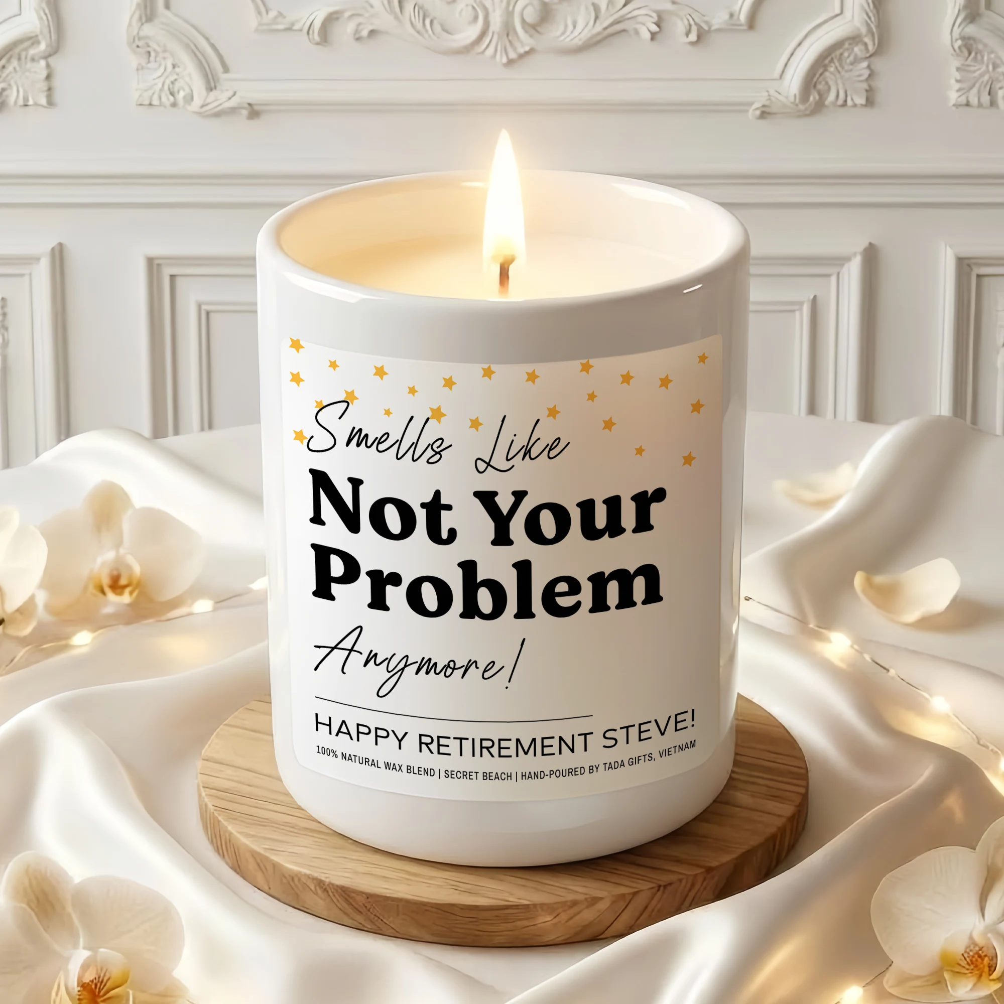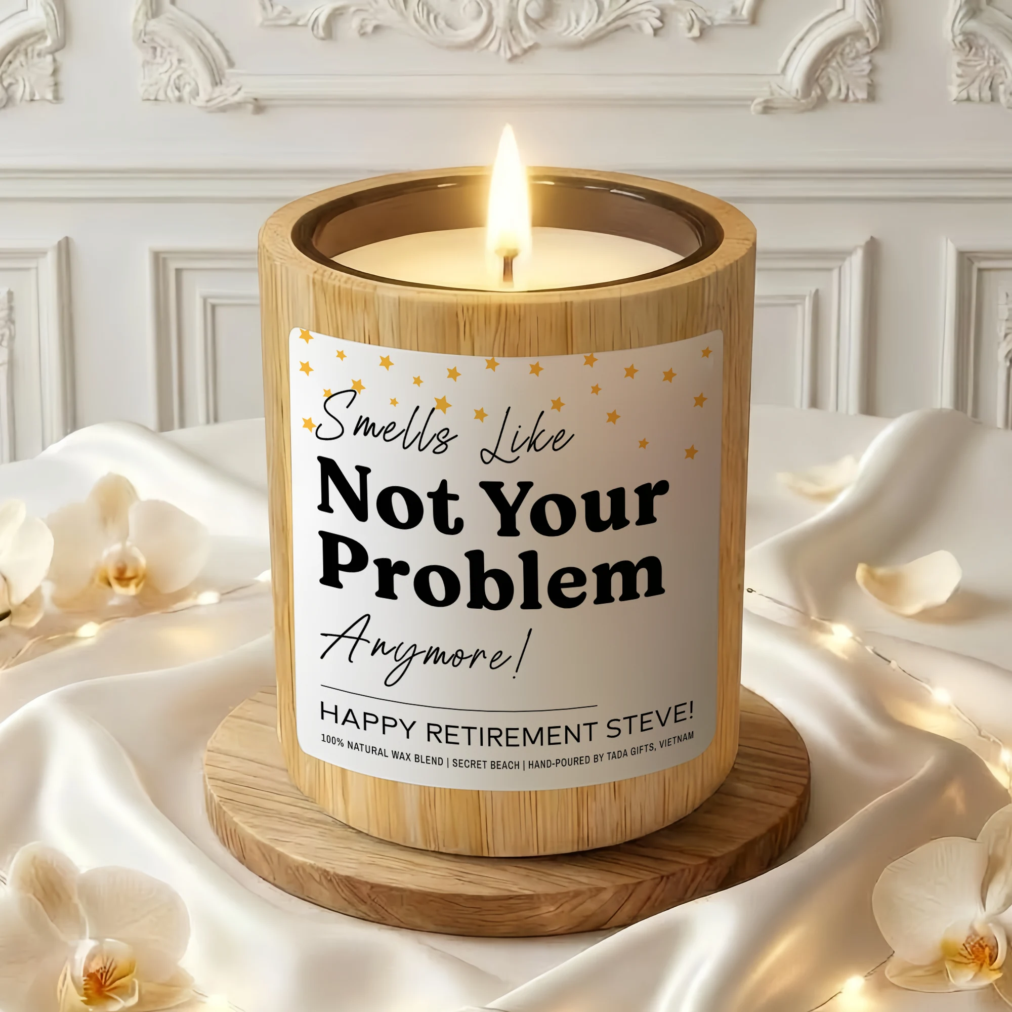 Funny Retirement Gift Candle – Smells Like Not Your Problem Anymore – Personalized Coworker Leaving Gift – Happy Retirement Steve Custom Name – New Adventure Present – Sarcastic Farewell Candle – Soy Wax