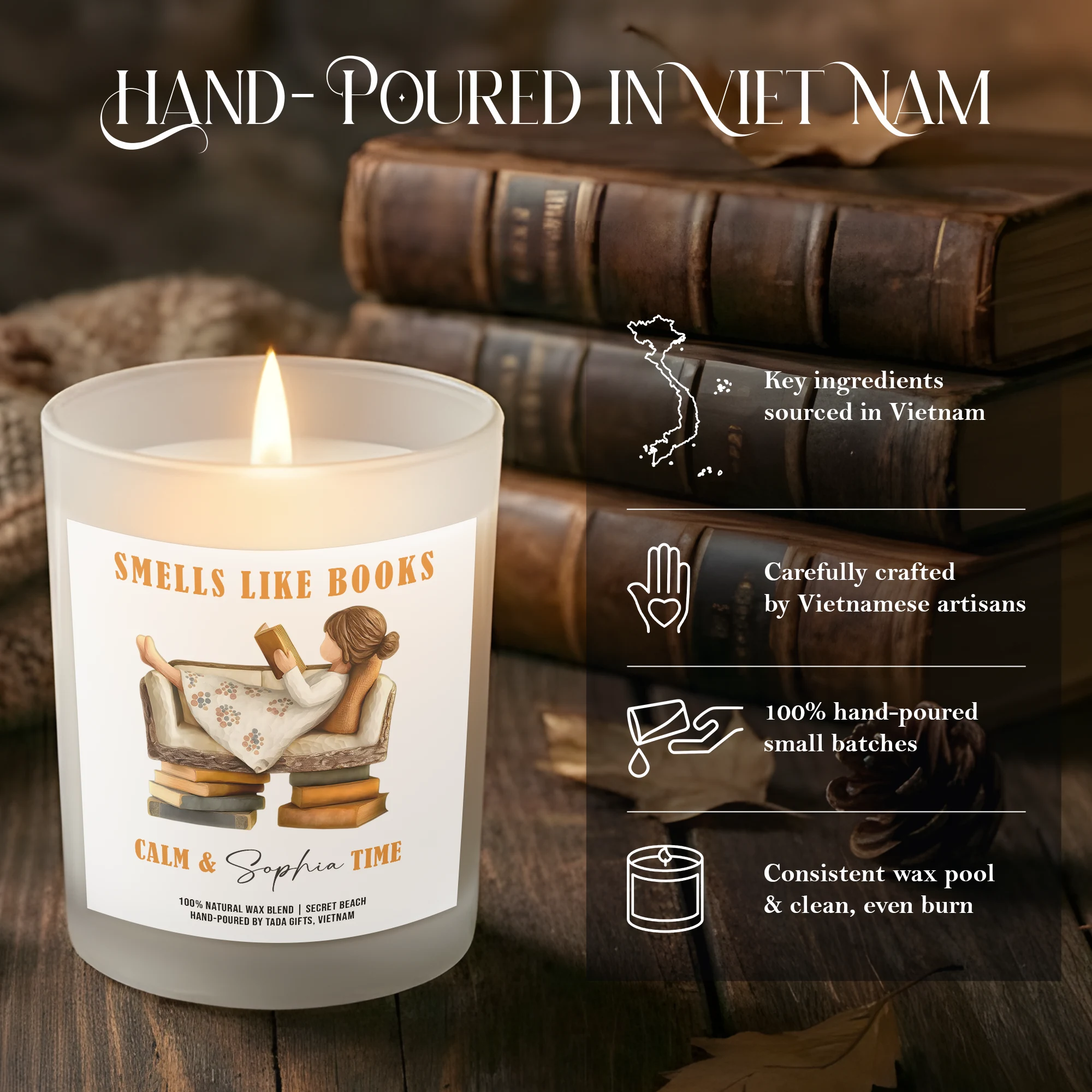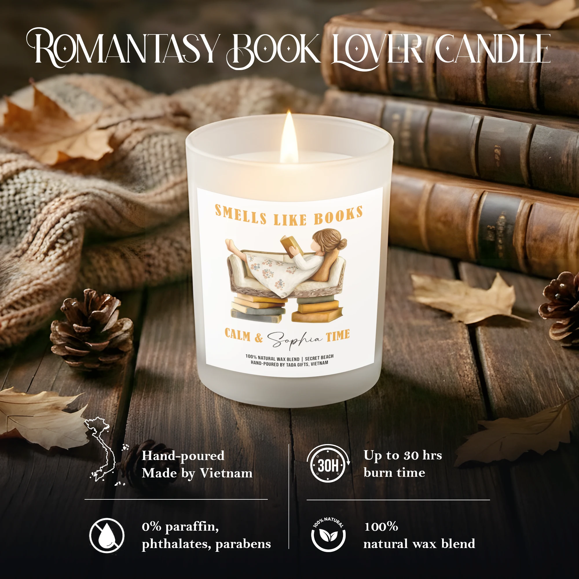 Gifts for Bookworms, Bookish Candle, Bookish Gifts, Gifts for Book Readers, Reader Gifts, Smells Like Books – Calm Time Candle