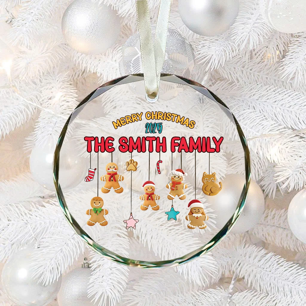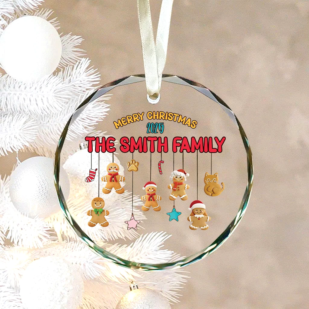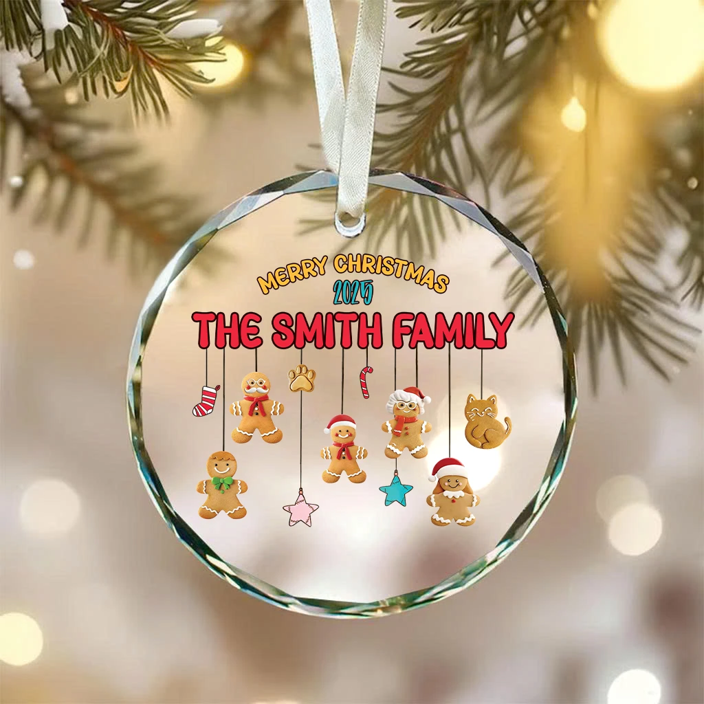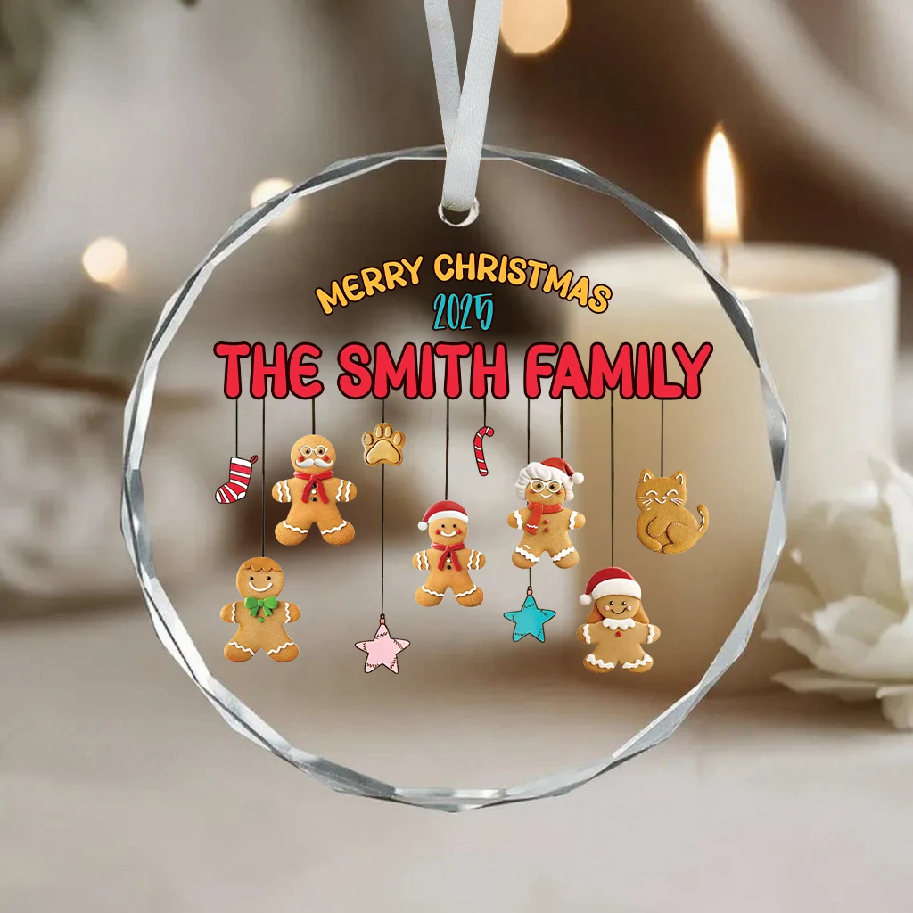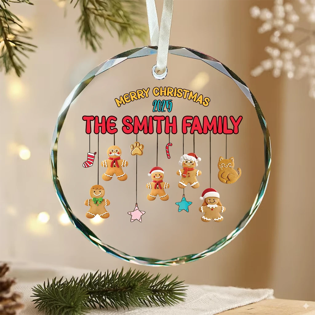 Gingerbread Cookie Family Ornament – Custom Engraved Glass/Acrylic Christmas Decor