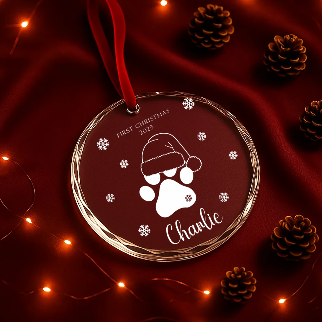Adorable Glass Cat Paw Ornament | Personalized Pet Keepsake 2025 | Cute Christmas Gift