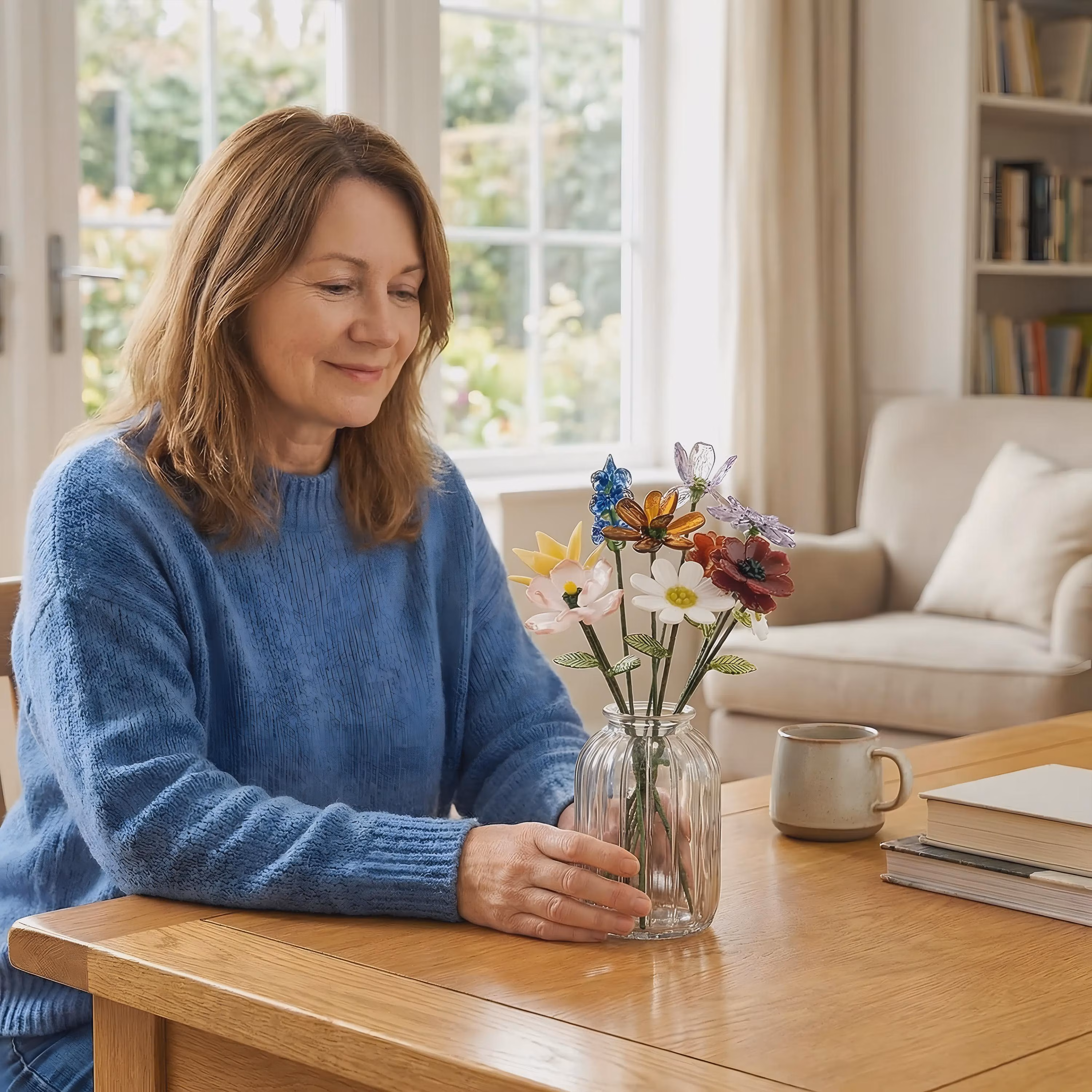 Glass Flower Bouquet, Stained Glass Flowers, Glass Flower Decot, Gift for Mom, Mom Birthday Gift, Gift for Mother