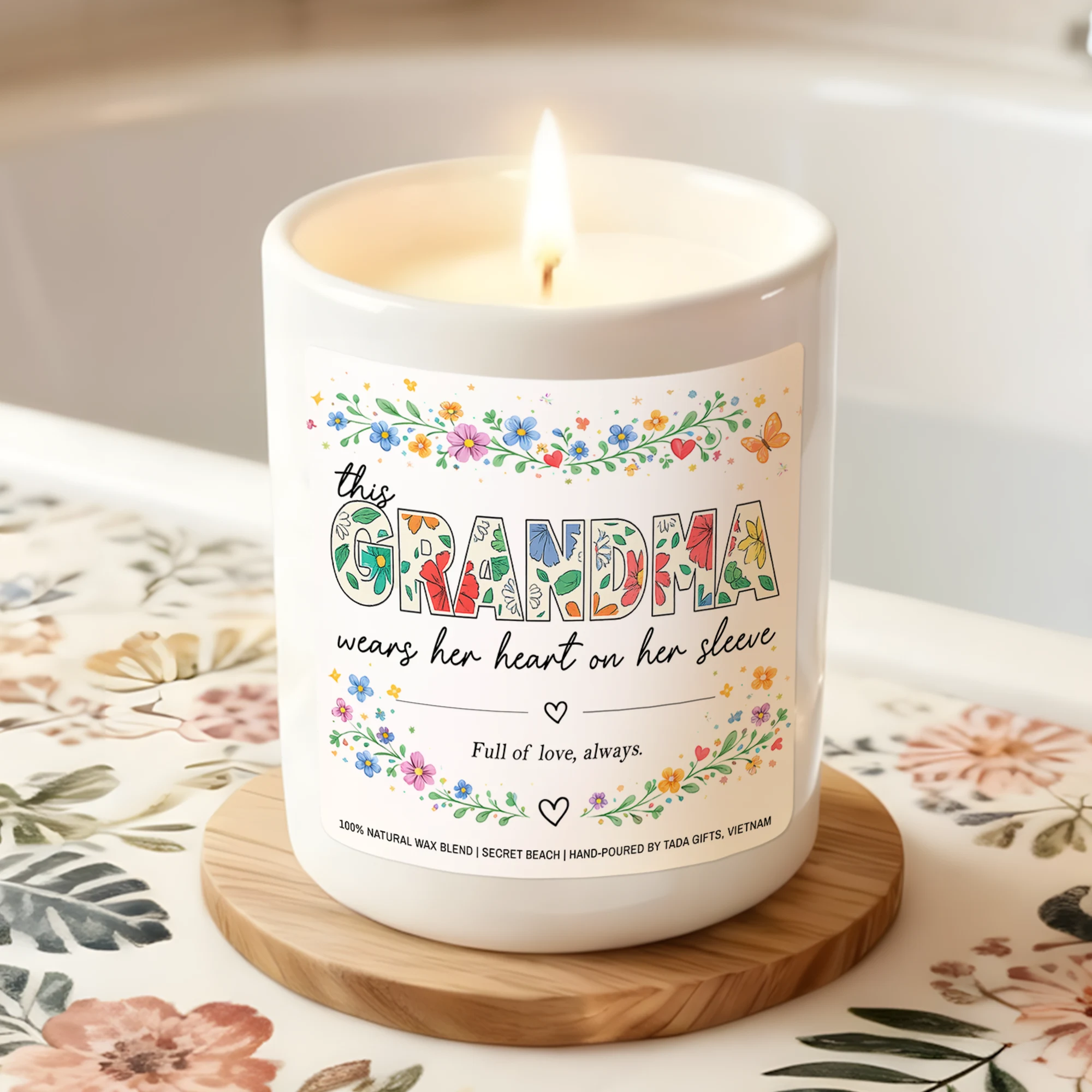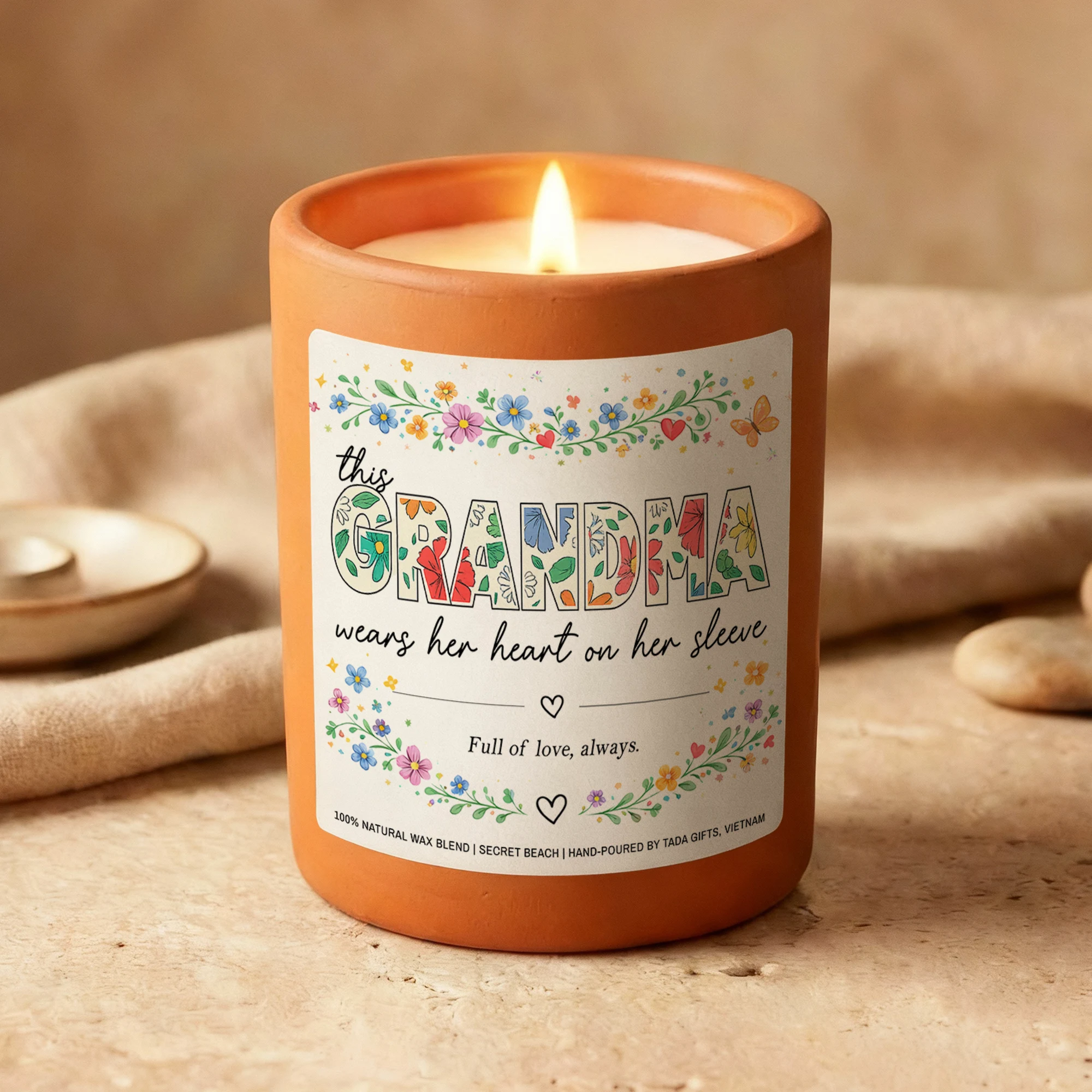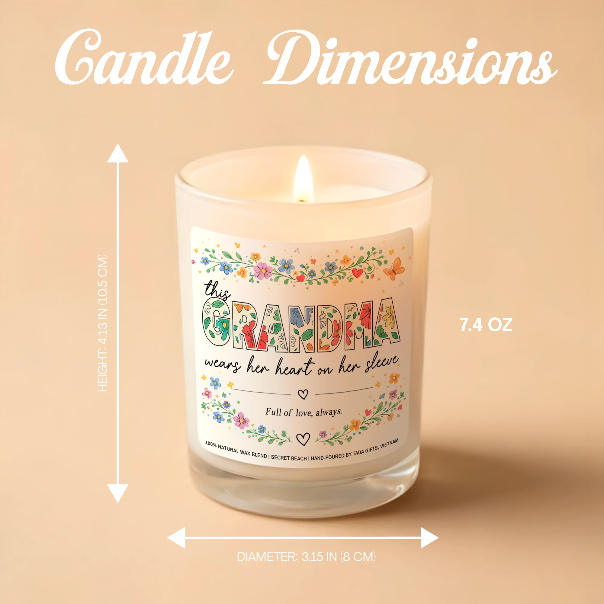 Grandma Candle, “This Grandma Wears Her Heart on Her Sleeve”, Mother’s Day Gift, Grandma Gifts