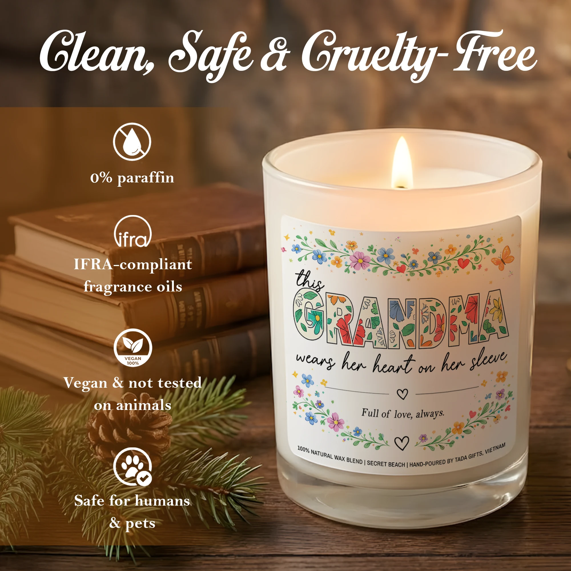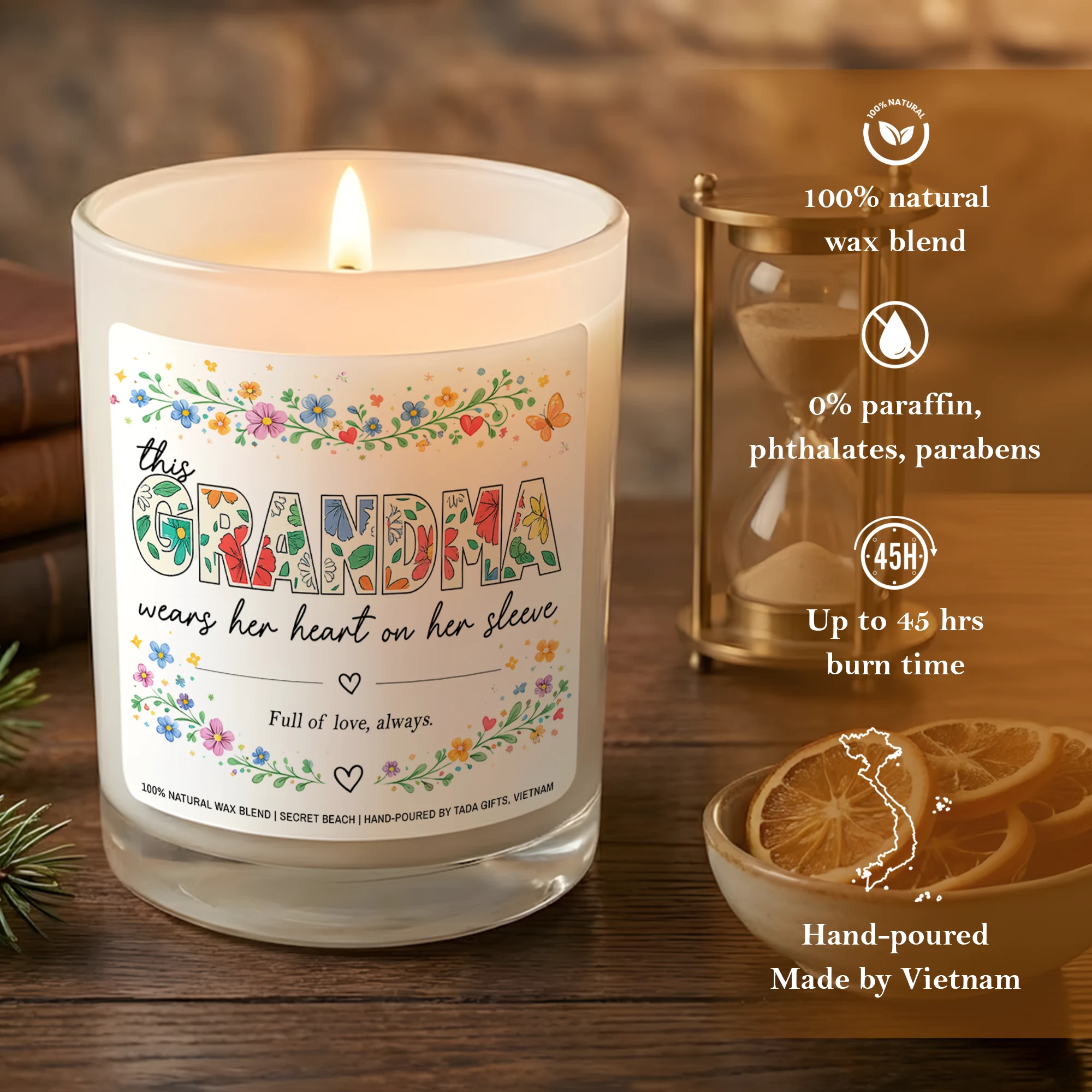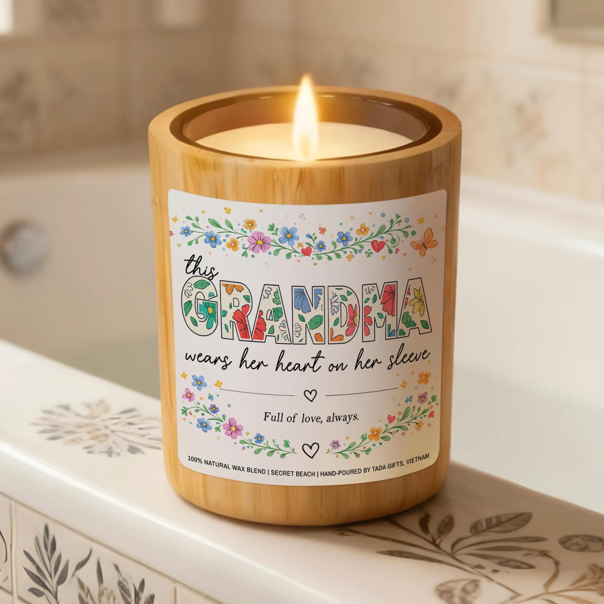 Grandma Candle, “This Grandma Wears Her Heart on Her Sleeve”, Mother’s Day Gift, Grandma Gifts
